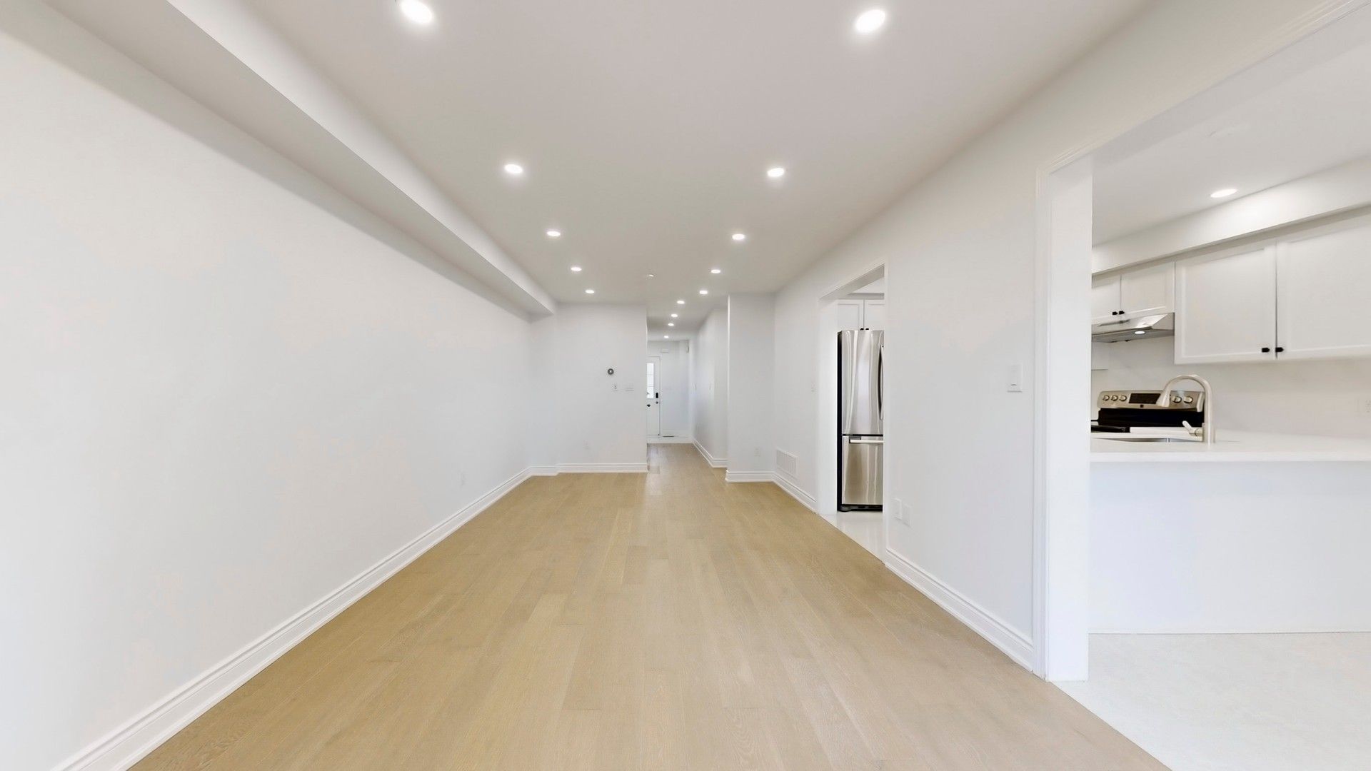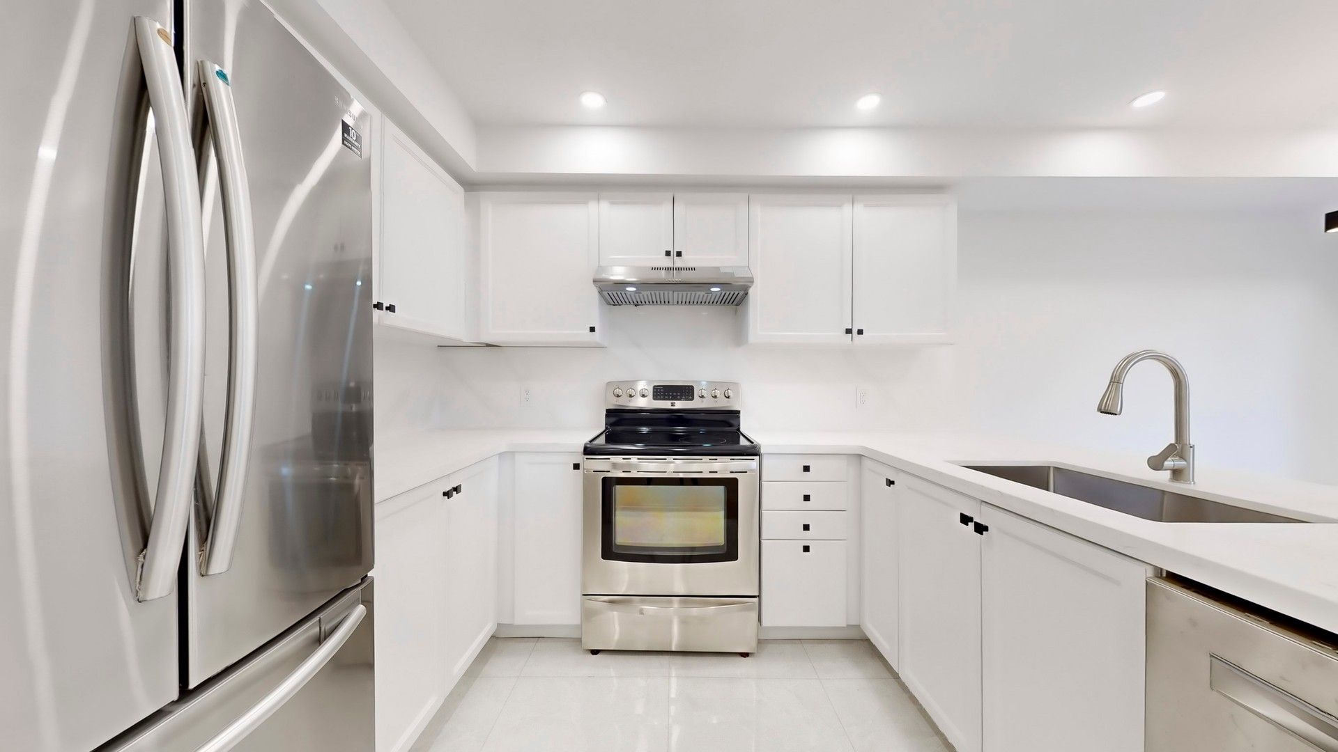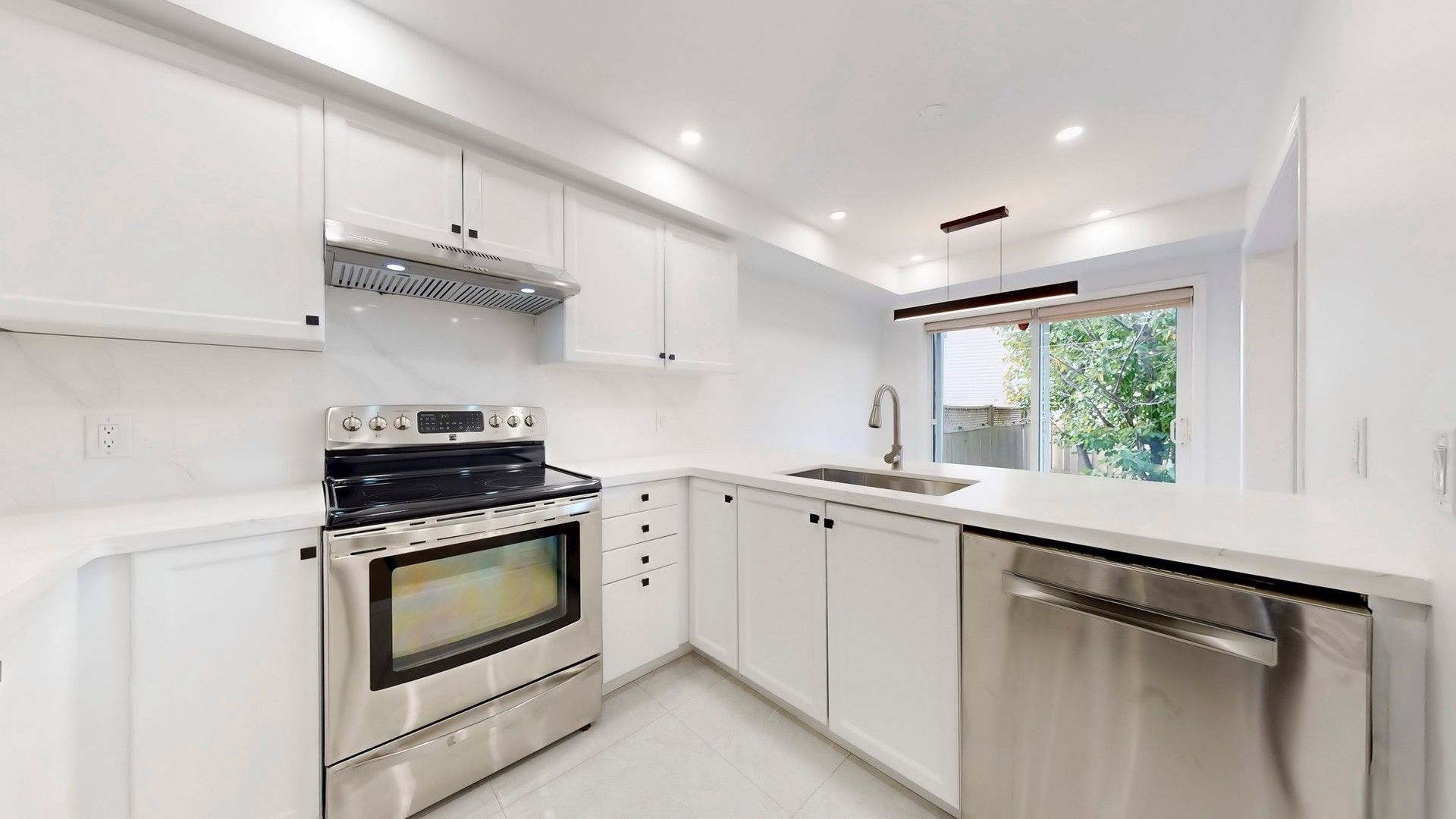 Welcome to this spacious and bright home located in a friendly, family-oriented neighbourhood. This beautifully renovated townhouse features an extra-long driveway, offering ample parking space and great curb appeal. Step inside to a modern kitchen with stainless steel appliances, porcelain tiles in the kitchen, breakfast area, and foyer. The living room boasts brand-new hardwood flooring, while the bedrooms feature quality laminate flooring for easy maintenance. Convenient second-floor laundry and garage access from inside the home add everyday practicality. Enjoy the benefits of a water softener system, a fully fenced backyard, and many other upgrades throughout. Perfect for first-time home buyers or investors, this property is move-in ready and offers excellent value in a sought-after location!