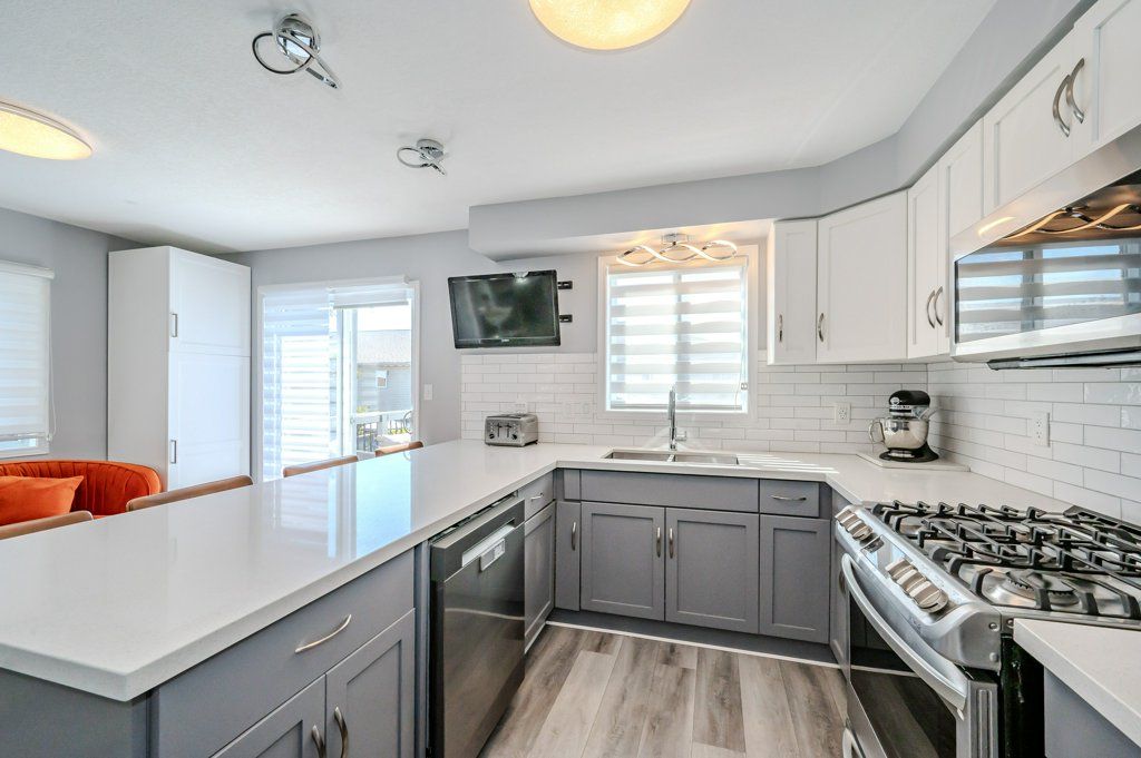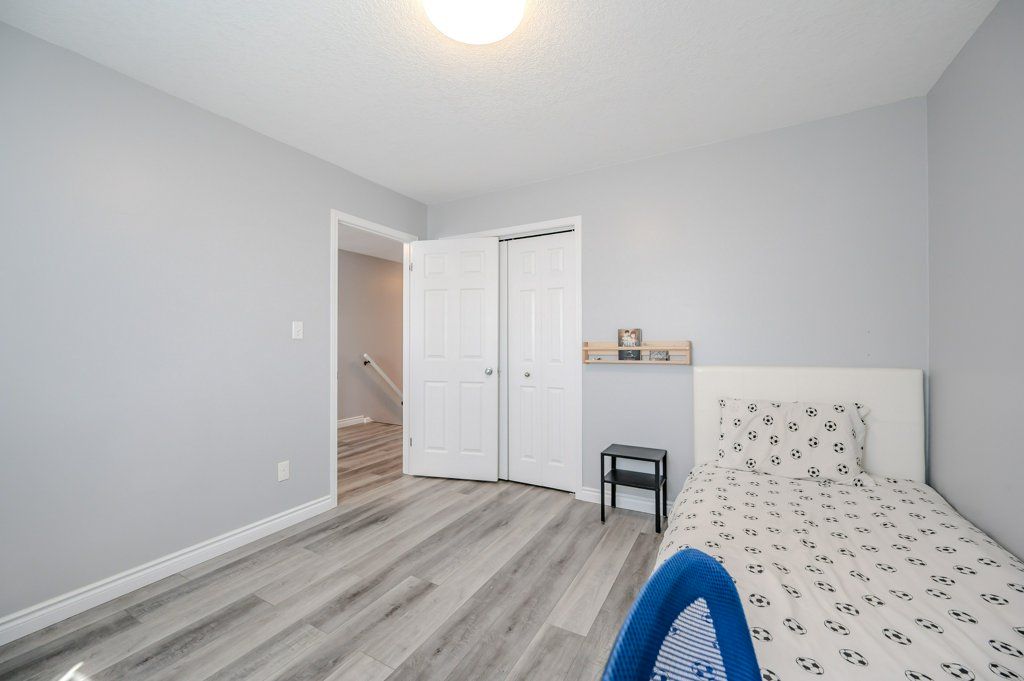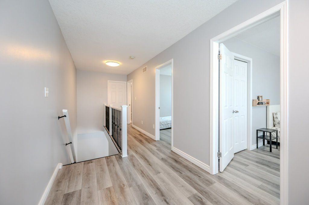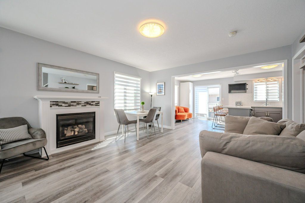 End unit freehold townhome. Just a breath of fresh air! That's how you will feel as you enter into the foyer of this family home. A foyer with a double closet and separated from your main living space making it easy to keep all the back packs, shoes and jackets where they need to be. Entering into the expansive 23 foot living room with gas fireplace, you will appreciate having all the space you need to accommodate your busy day to day life. The kitchen offers a dining space and walk out to the bright and inviting deck space which overlooks the yard. The kitchen boasts a gas stove, all stainless appliances and attractive quartz counter and updated lighting. No carpet in this home making it easy to maintain! Upstairs there are two nicely sized bedrooms rooms plus a large primary with walk-in closet and gas fireplace with seating area. There is a semi ensuite family bath with double sinks! Also on this level is an office loft area making working at home easy. The basement offers a laundry closet, another den/office space and a large recreation room area and a 3 piece bathroom. 3 parking spaces - two in the drive way and one in the garage. Don't forget the deck area and private yard!