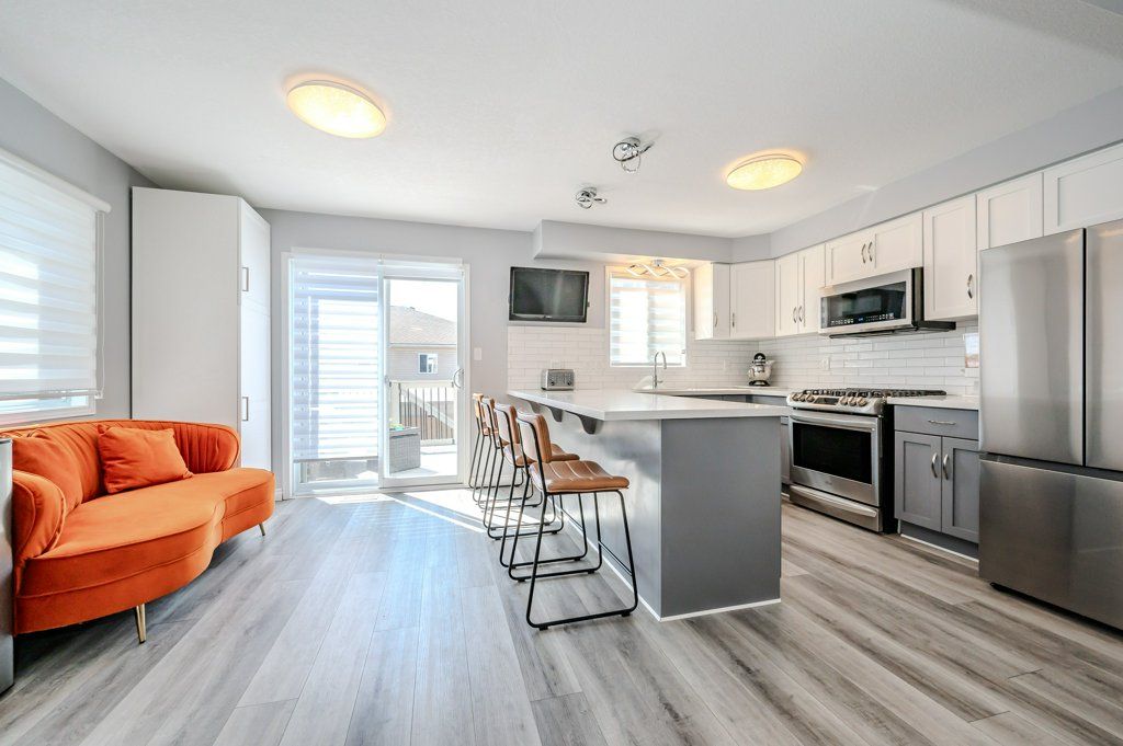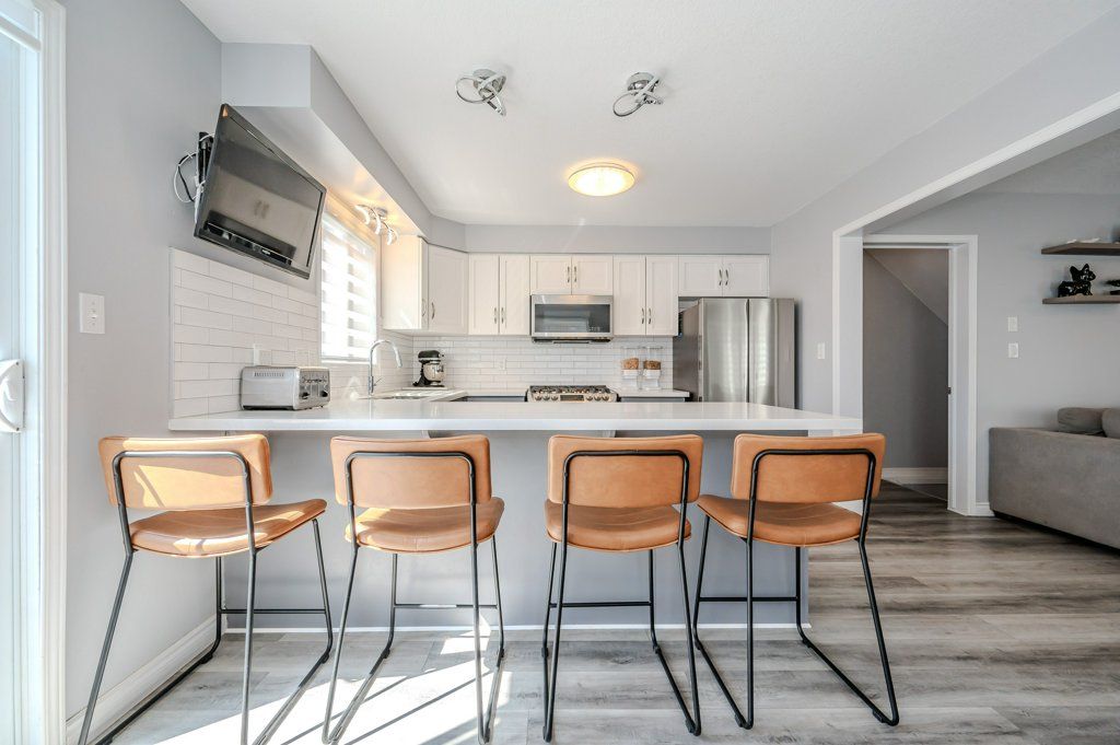Entire home, mostly furnished - end unit freehold townhome. Just a breath of fresh air! That's how you will feel as you enter into the foyer of this family home. A foyer with a double closet and separated from your main living space making it easy to keep all the back packs, shoes and jackets where they need to be. Entering into the expansive 23 foot living room with gas fireplace, you will appreciate having all the space you need to accommodate your busy day to day life. The kitchen offers a dining space and walk out to the bright and inviting deck space which overlooks the yard. The kitchen boasts a gas stove, all stainless appliances and attractive quartz counter and updated lighting. No carpet in this home making it easy to maintain! Upstairs there are two nicely sized bedrooms rooms plus a large primary with walk-in closet and gas fireplace with seating area. There is a semi ensuite family bath with double sinks! Also on this level is an office loft area making working at home easy. The basement offers a laundry closet, another den/office space and a large recreation room area and a 3 piece bathroom. 3 parking spaces included, two in the drive way and one in the garage. Don't forget the deck area and private yard! Utilities are extra, or suggest an all inclusive arrangement with the landlord.