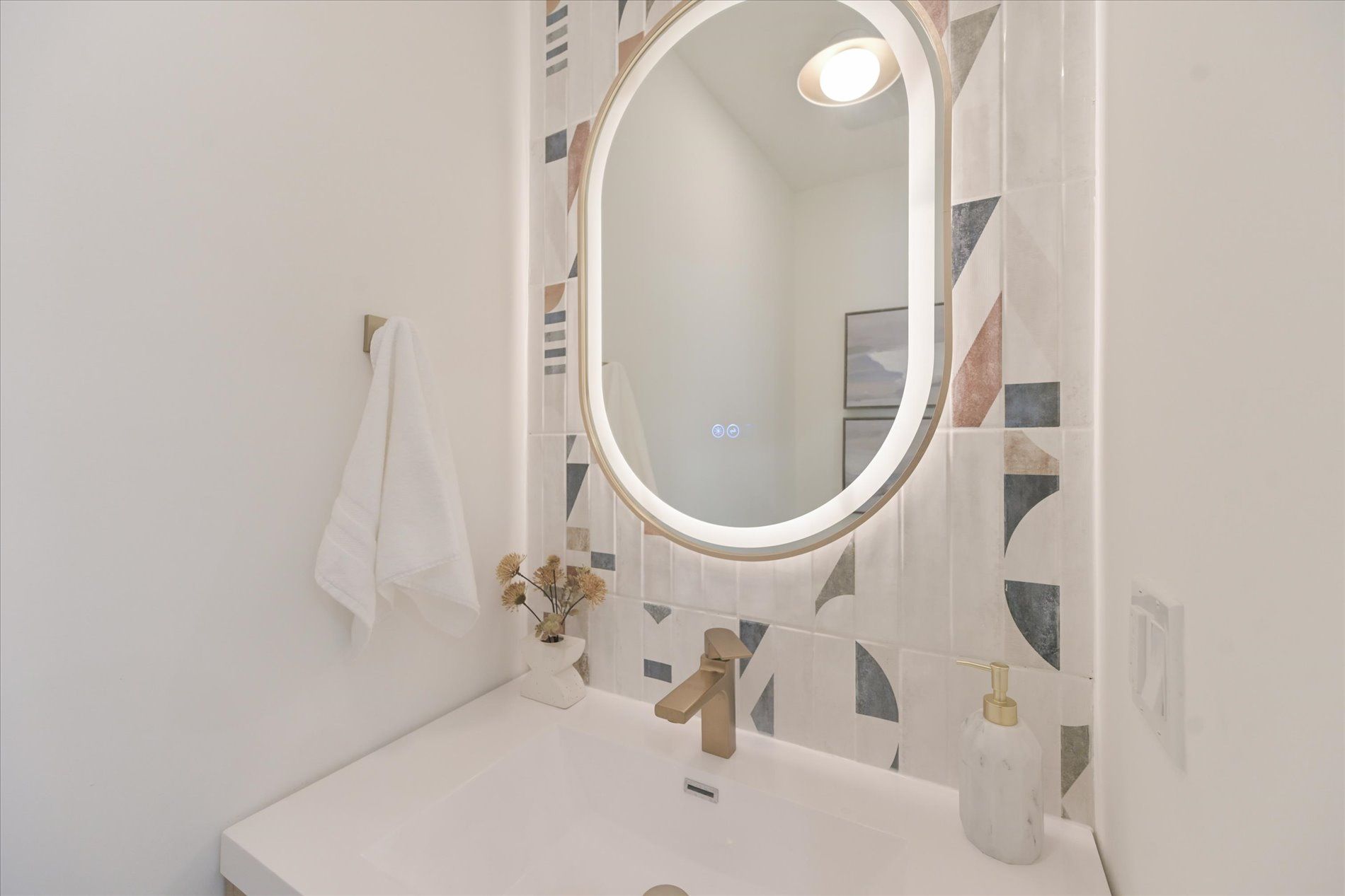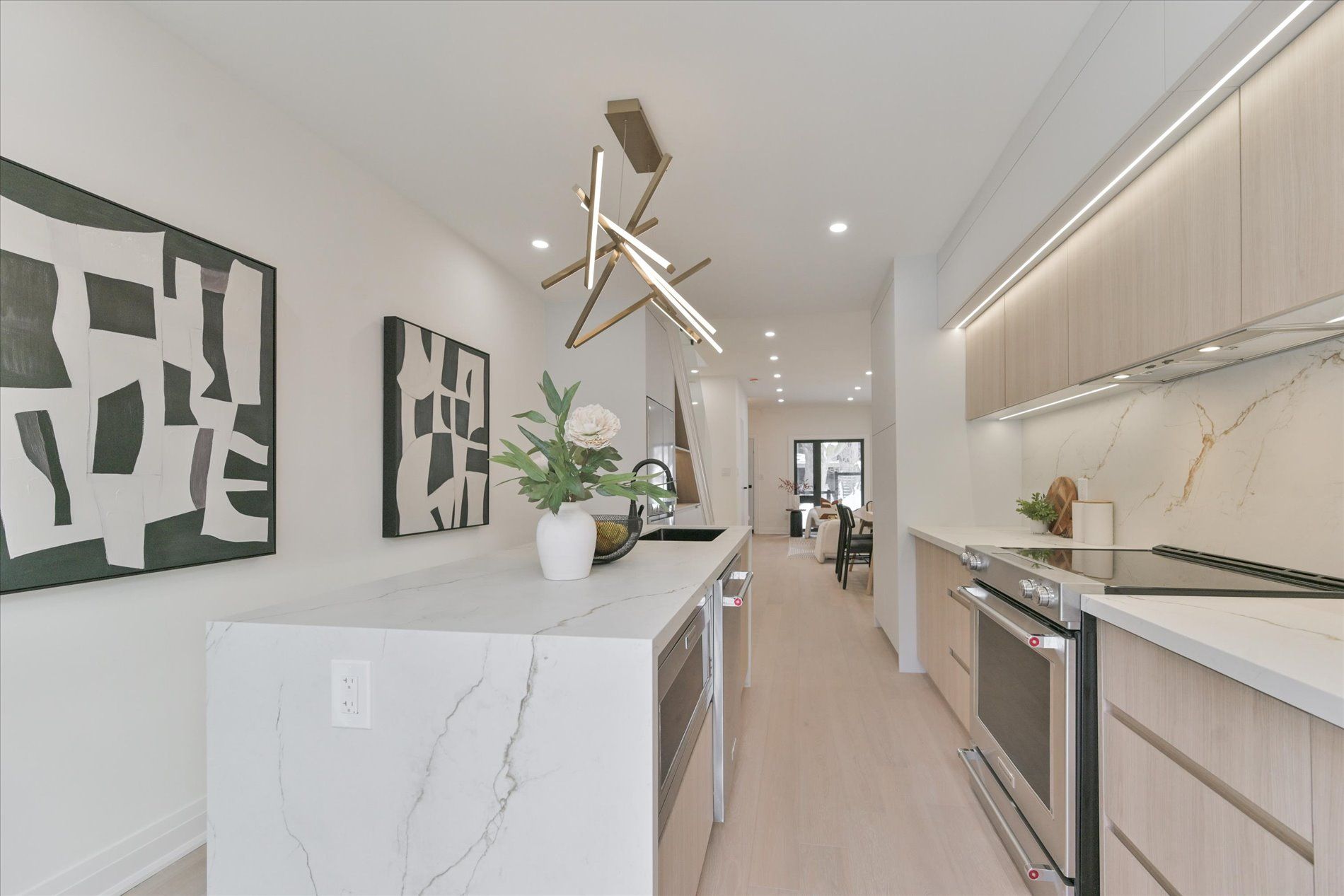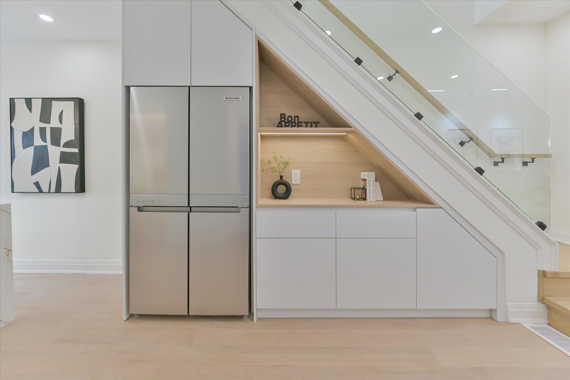 • Stylish designer kitchen with custom cabinetry and high-end KitchenAid appliances.