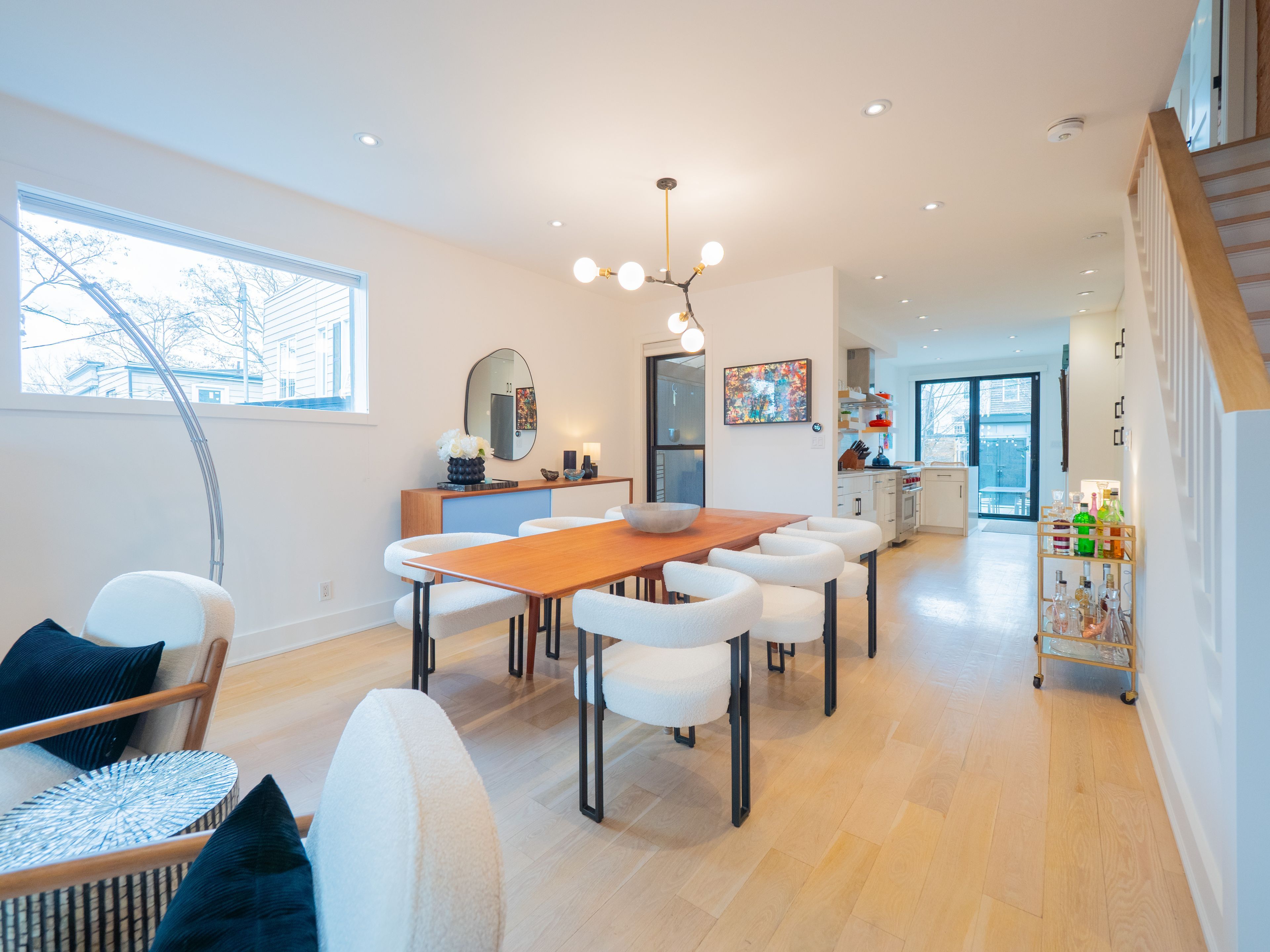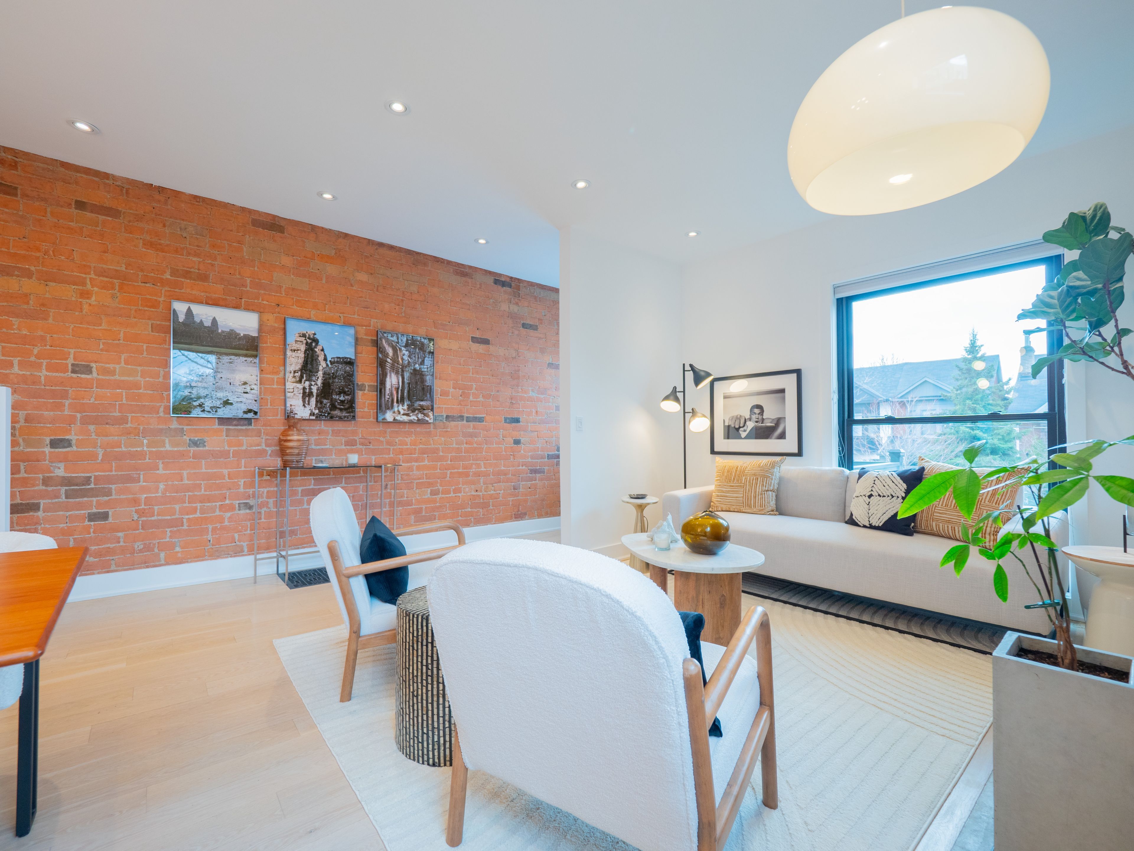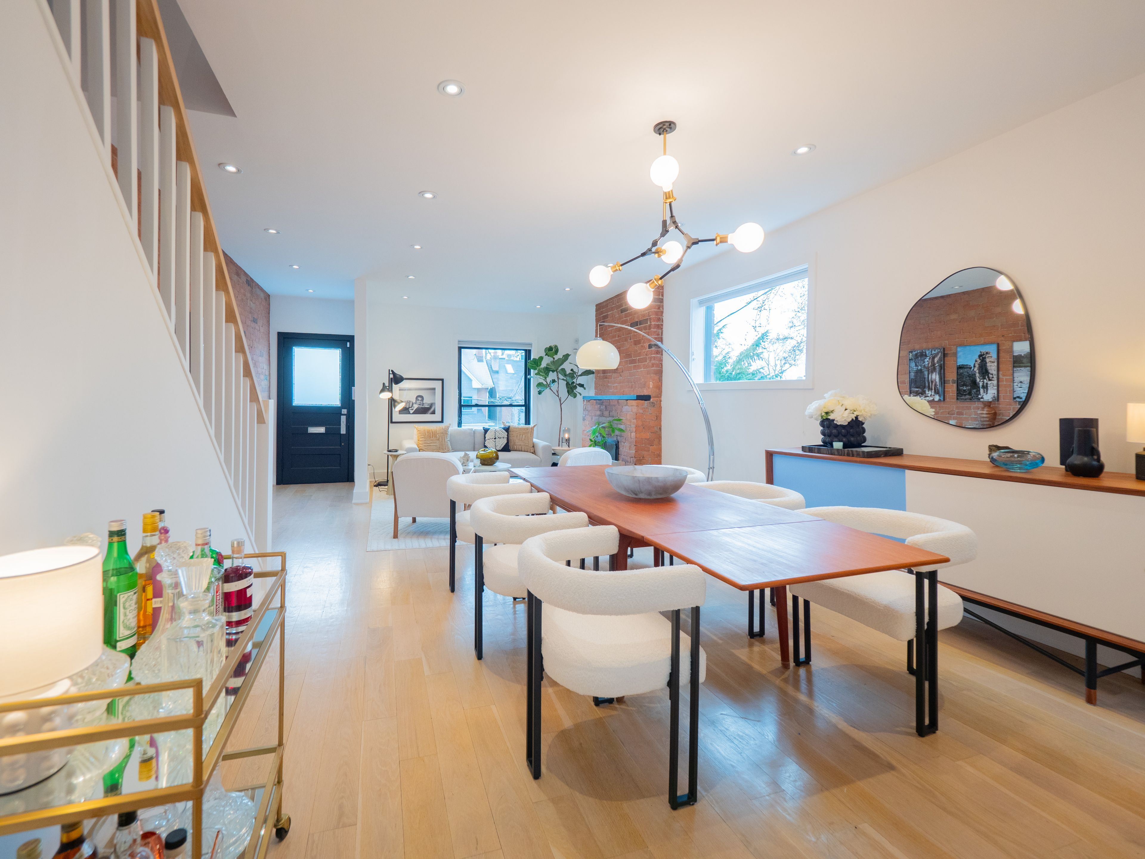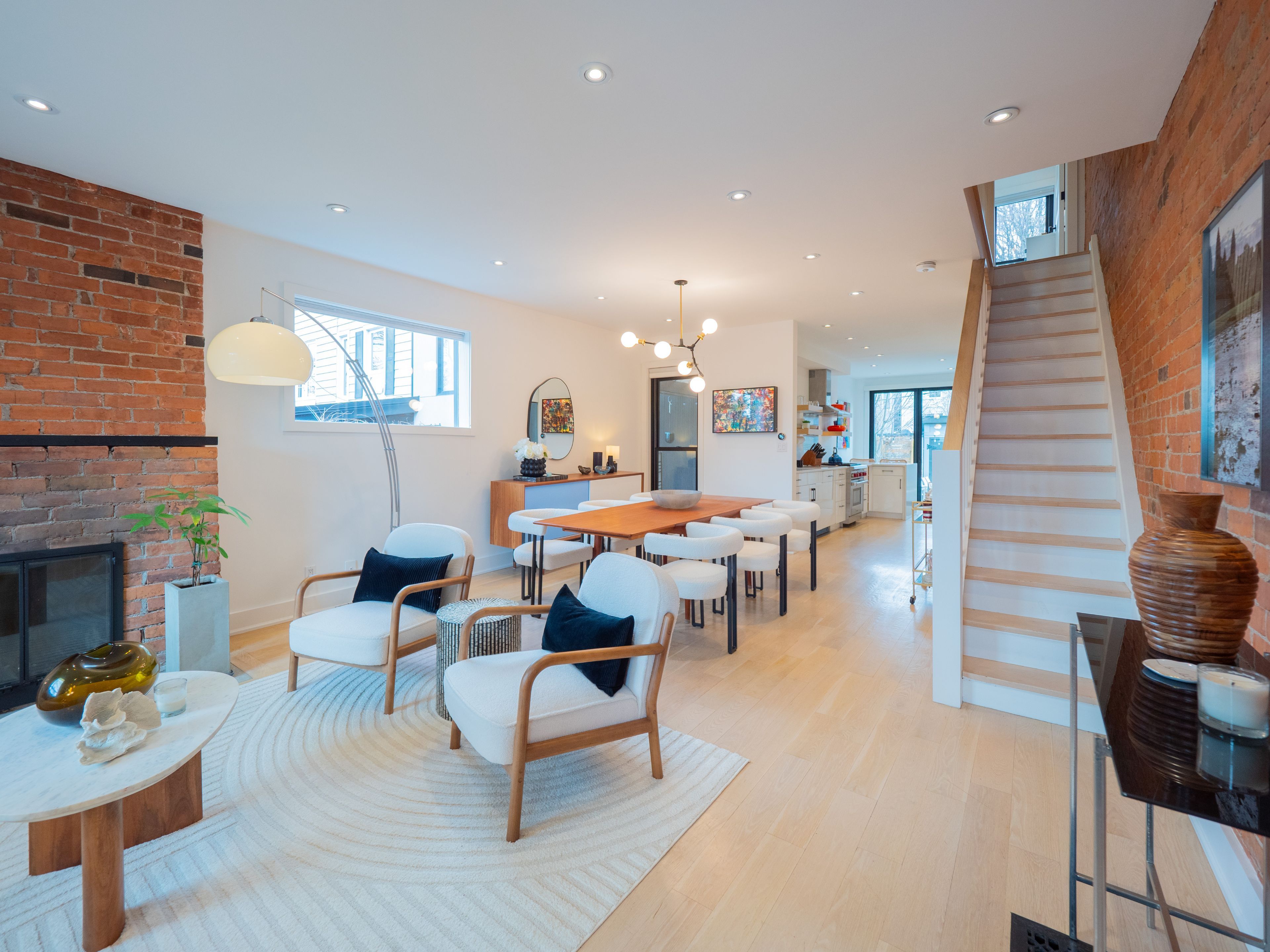 Some homes just feel different the moment you walk in. Perched up on the hill in the heart of riverdale, this top-to-bottom renovation is the kind of place that stops you in your tracks. From the second you step inside, the open concept main floor wraps you in warmth. Exposed brick, white oak floors, a wood burning fireplace, and a perfectly placed slot window that floods the space with natural light. The kitchen is a cook's dream, quartz countertops, miele fridge, wolf gas range, loads of storage, and a waterfall breakfast bar where your morning coffee tastes just a little bit better. Floor-to-ceiling glass doors open onto a professionally landscaped backyard that's genuinely its own world. Private, calm, and designed to blur the line between inside and out. And with two car laneway parking and a grade-level back entry, just straight in, it's as practical as it is beautiful. Unload the groceries, roll in the stroller, or think ahead to aging parents coming to visit. It all just works. Head upstairs and you've got two generous bedrooms with white oak floors, great closet space, and one with a bay window and window seat that frames the most beautiful south-facing views of the city. The spa-style bathroom earns every bit of that description, exposed brick, soaker tub, an oversized curbless walk-in shower tiled like a work of art, and a big window letting all that gorgeous light pour in. You'll look forward to the end of a long day. The 3rd floor, the primary bedroom retreat is just another reason to fall in love with this house, skylights, a king-sized bed, and a walkout to your own private rooftop deck with views that remind you exactly why you worked so hard to live somewhere like this. Morning coffee, evening wine, late nights under the stars, it's all yours. The lower level features high ceilings, a spacious family room perfect for movie nights or the kids taking over with their crew, plus a dedicated home office nook. Withrow school district.