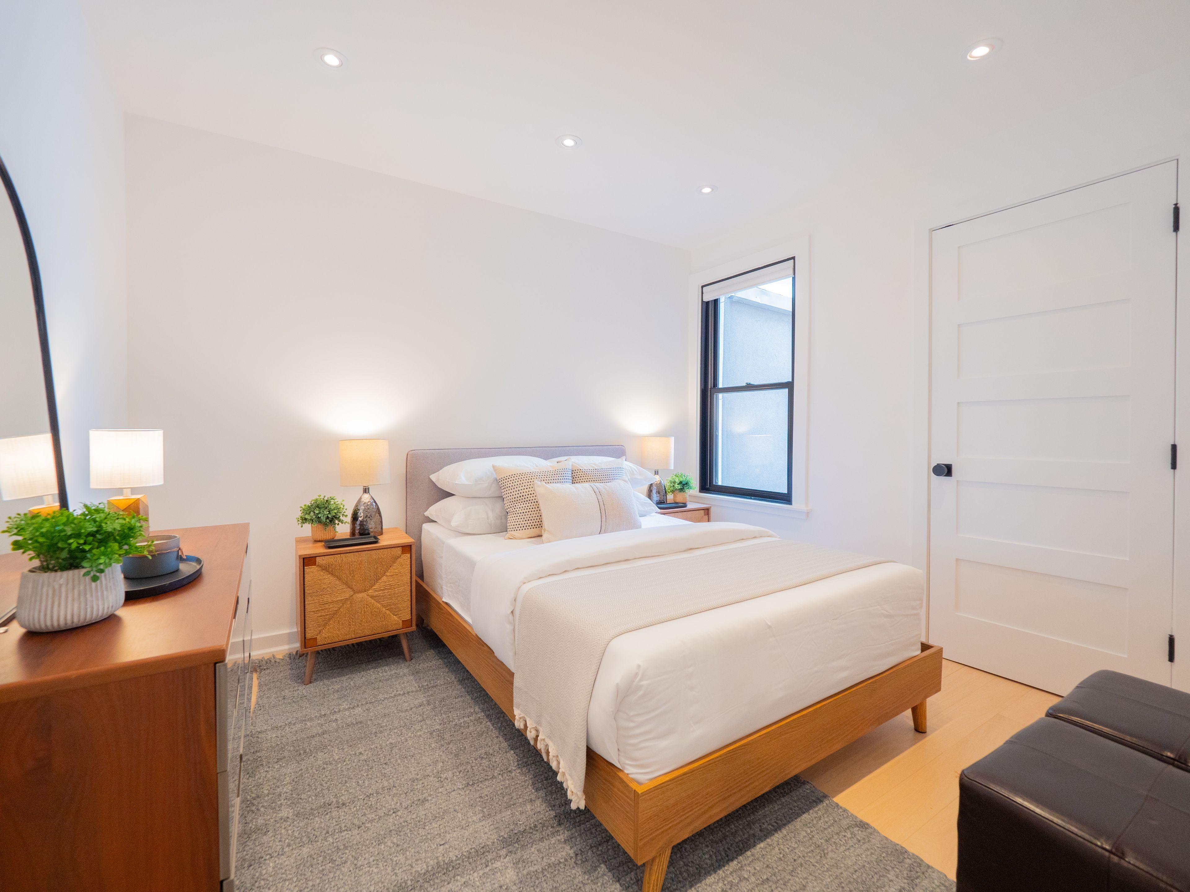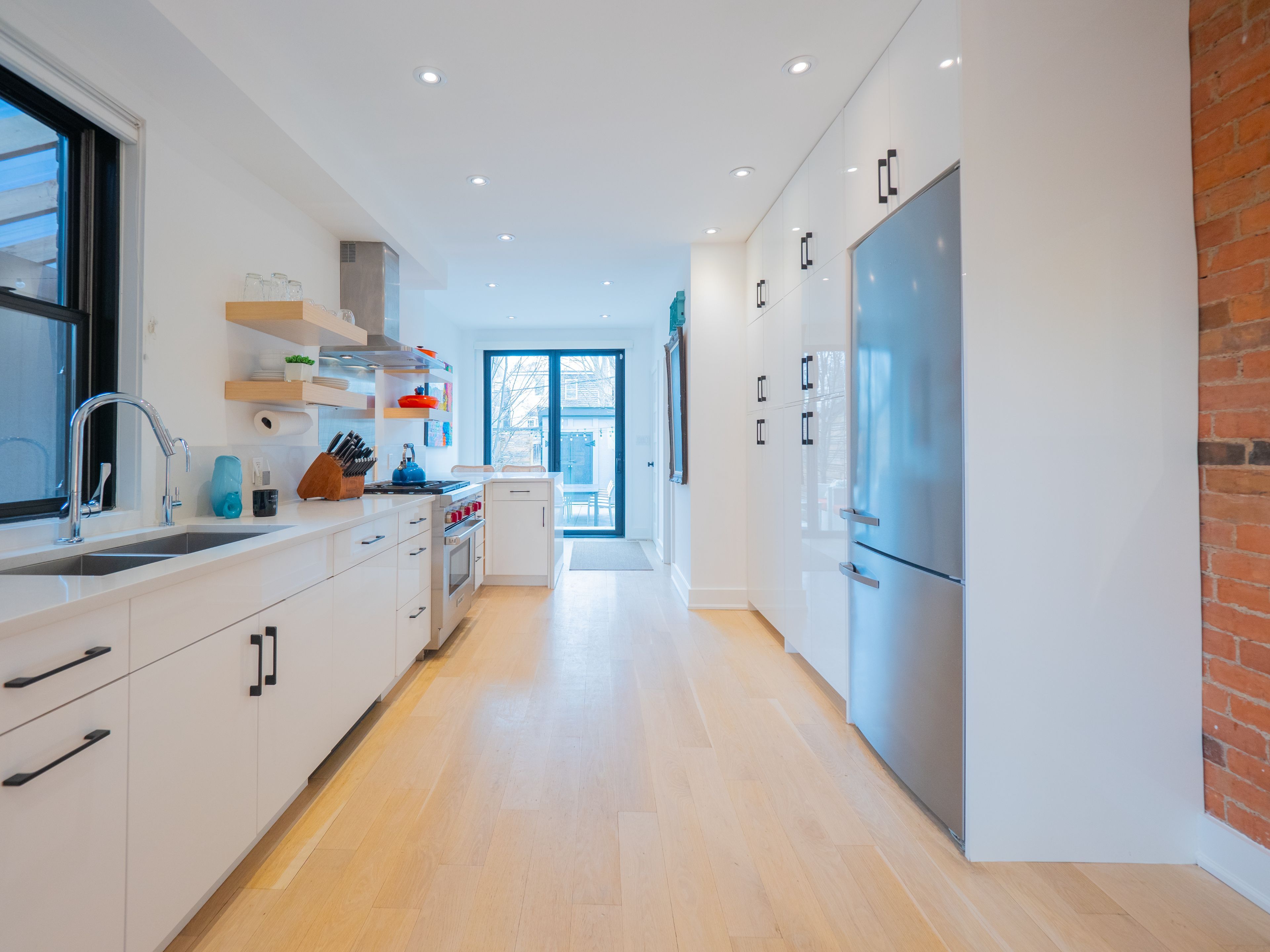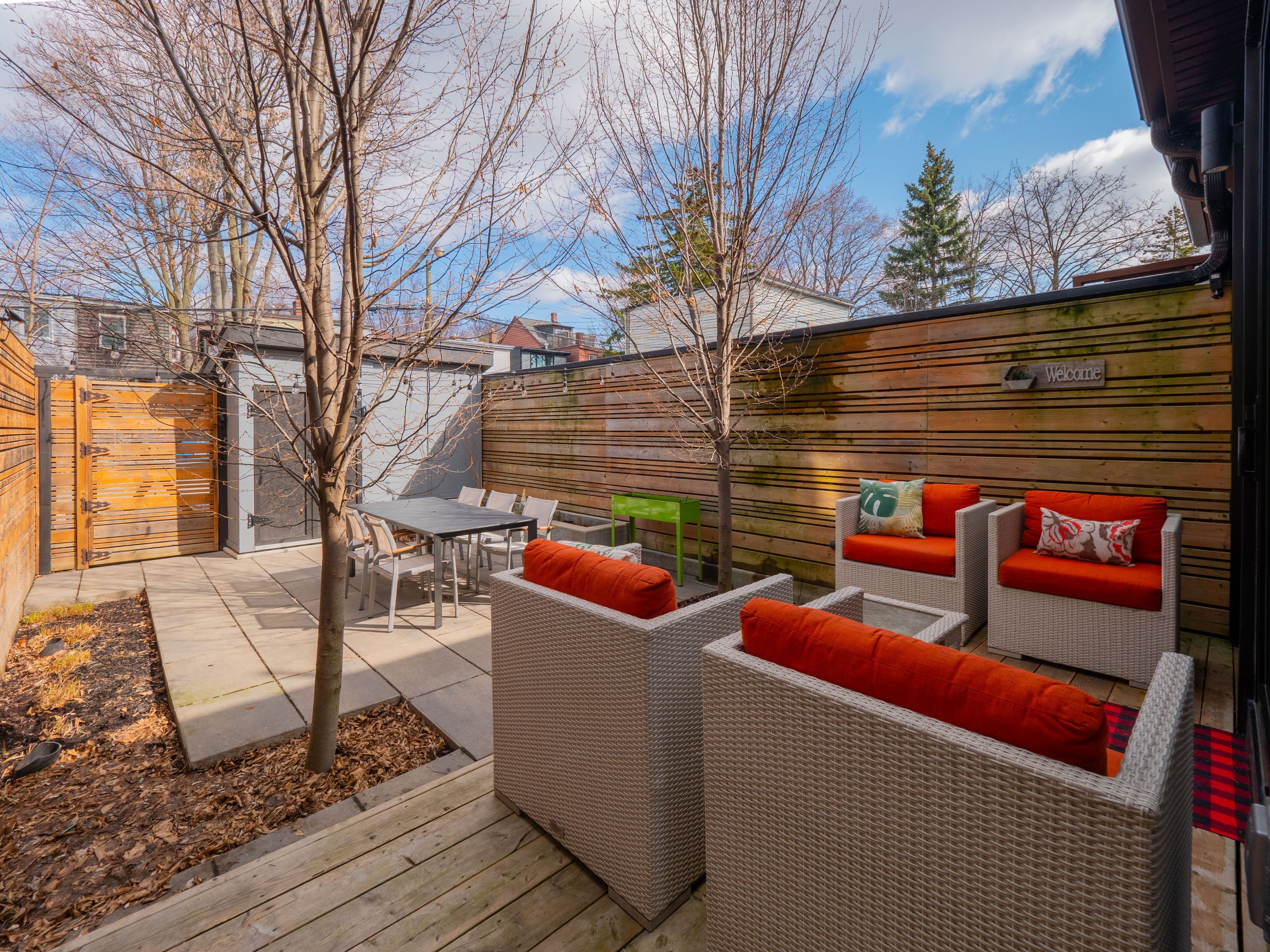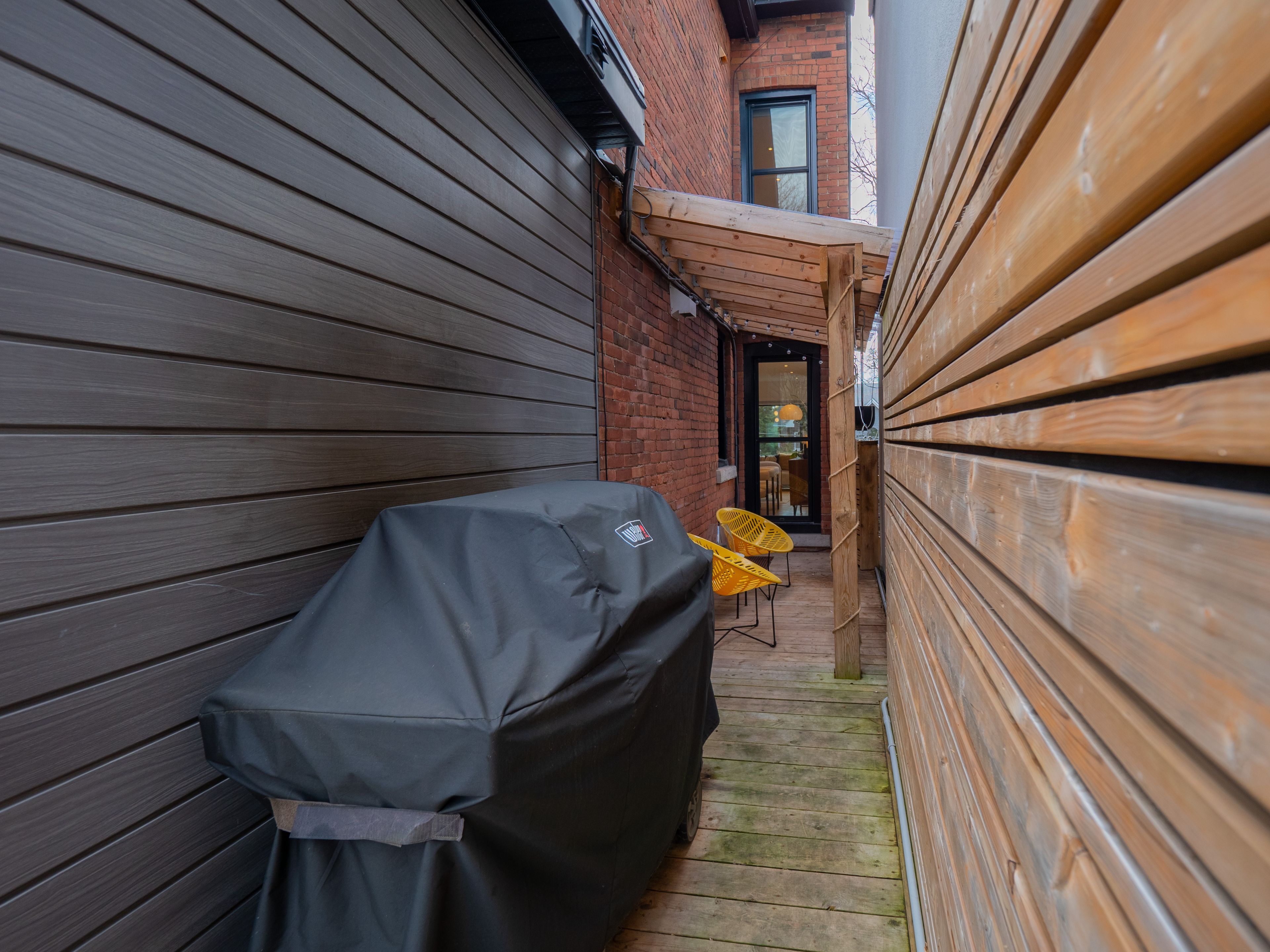 Some homes just feel different the moment you walk in. Perched up on the hill in the heart of riverdale, this top-to-bottom renovation is the kind of place that stops you in your tracks. From the second you step inside, the open concept main floor wraps you in warmth. Exposed brick, white oak floors, a wood burning fireplace, and a perfectly placed slot window that floods the space with natural light. The kitchen is a cook's dream, quartz countertops, miele fridge, wolf gas range, loads of storage, and a waterfall breakfast bar where your morning coffee tastes just a little bit better. Floor-to-ceiling glass doors open onto a professionally landscaped backyard that's genuinely its own world. Private, calm, and designed to blur the line between inside and out. And with two car laneway parking and a grade-level back entry, just straight in, it's as practical as it is beautiful. Unload the groceries, roll in the stroller, or think ahead to aging parents coming to visit. It all just works. Head upstairs and you've got two generous bedrooms with white oak floors, great closet space, and one with a bay window and window seat that frames the most beautiful south-facing views of the city. The spa-style bathroom earns every bit of that description, exposed brick, soaker tub, an oversized curbless walk-in shower tiled like a work of art, and a big window letting all that gorgeous light pour in. You'll look forward to the end of a long day. The 3rd floor, the primary bedroom retreat is just another reason to fall in love with this house, skylights, a king-sized bed, and a walkout to your own private rooftop deck with views that remind you exactly why you worked so hard to live somewhere like this. Morning coffee, evening wine, late nights under the stars, it's all yours. The lower level features high ceilings, a spacious family room perfect for movie nights or the kids taking over with their crew, plus a dedicated home office nook. Withrow school district.