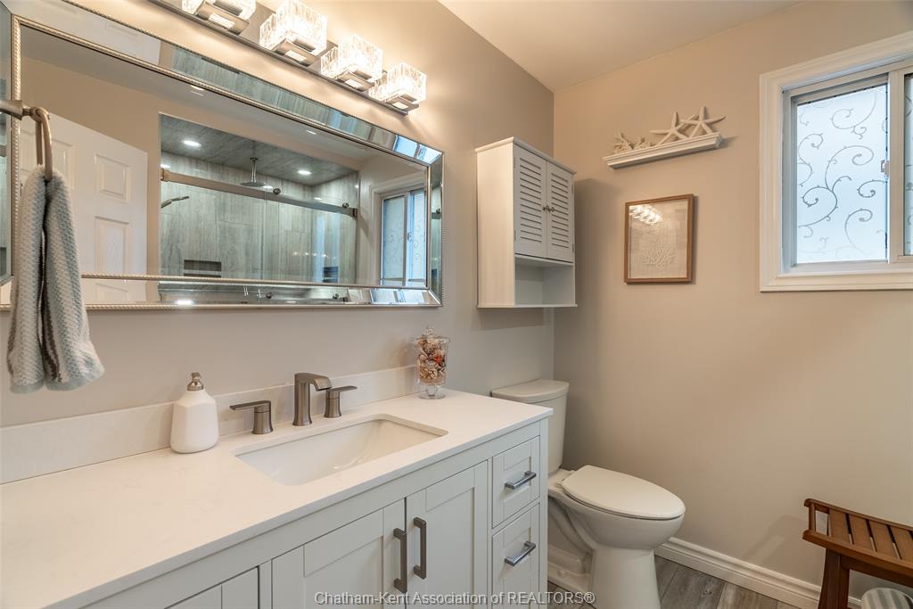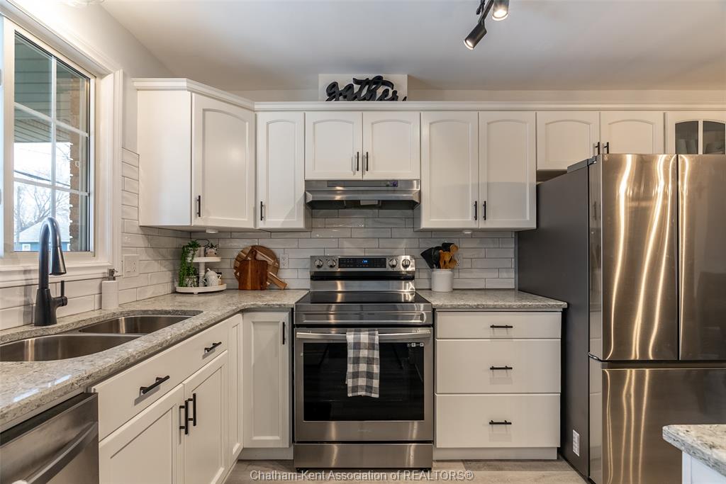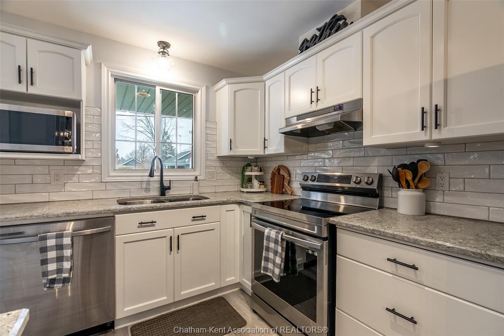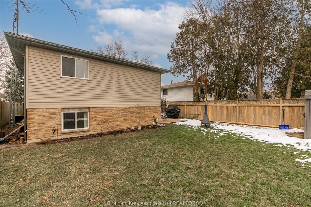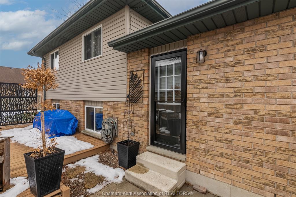 Welcome to one of the nicest homes on the north side of chatham. Spotless and move-in ready with almost every single room redone within the last 3. 5 years. This 4-level back split has been carefully and stylishly updated. It's ready for the next family to move right in and makes themselves at home. The owners put in the work here. In the last three years, every room(except the basement) has been updated. A new kitchen, two bathrooms that feel like you're in a spa, and fresh neutral paint throughout most of the house. It shows so well. Improvements made inside and out now mean the house is full of natural light, perfect for all of your house plants! Just off the kitchen, a lovely wooden deck steps out into the backyard. It makes a great spot to sit outside and relax. The senior neighbours behind the house are very quiet, so the backyard feels like your own private space. The family room is big and cozy. It is the kind of room where your family will actually want to spend time together. The basement is solid with a poured concrete foundation, a sump pump with battery backup, and a moisture monitor. That is the kind of peace of mind that is hard to put a price on. Out front, a covered porch gives you a place to sit and enjoy the street. The fenced-in yard (with a big double gate and new shed) has been lovingly cared for and improved over the last three years. Pride of ownership shows everywhere you look at this home. The location is fantastic with thames lea plaza and nortown plaza nearby! Newly remodelled, room for your family, but not too big for a couple, low maintenance, affordably priced... What more could you need?!