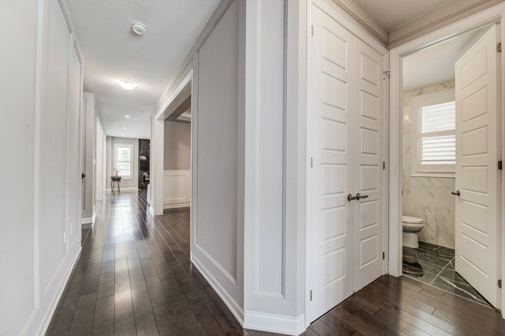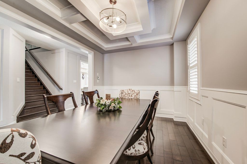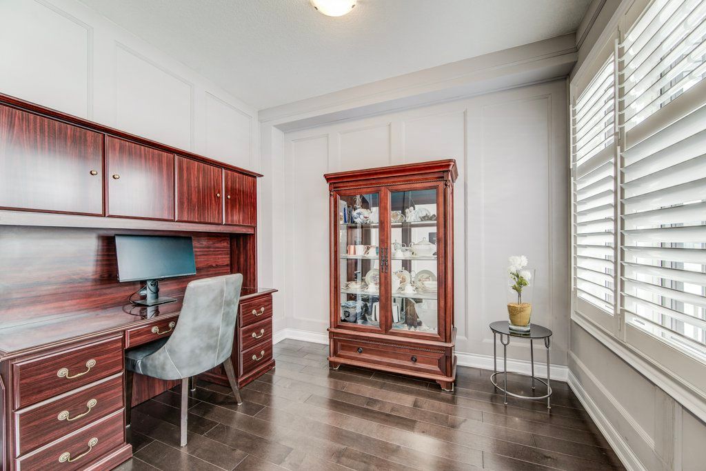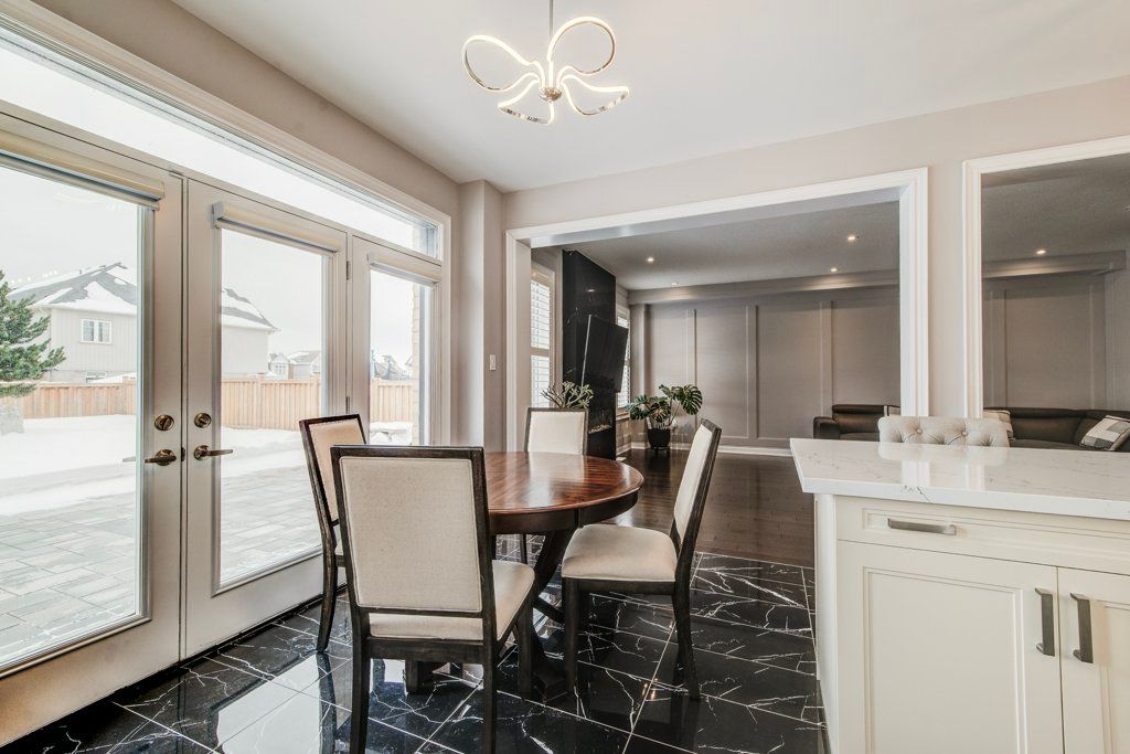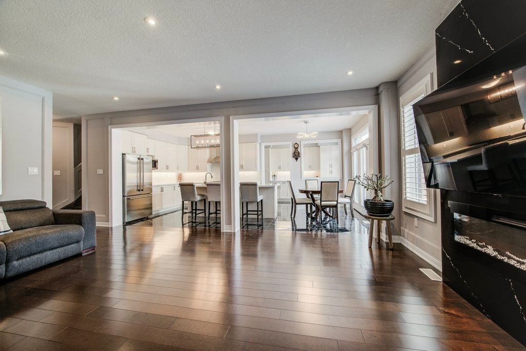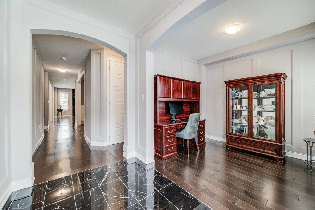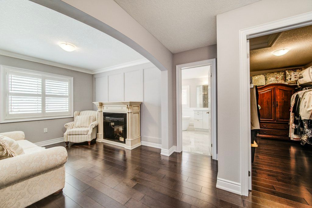 Built by empire homes less than five years ago, this exceptional luxury residence showcases refined design, a thoughtful layout, and premium upgrades throughout. Completely carpet-free, the home features a sophisticated blend of porcelain tile and rich hardwood across the main floor, with premium lvp on the second level. The main living area is beautifully open, offering a seamless setting for everyday living and entertaining, anchored by a chef-inspired kitchen with quartz countertops, an upgraded 9-foot island, abundant cabinetry, and a spacious butler's pantry. The family room is both elegant and inviting, centred around a stunning electric fireplace with a granite surround, while the formal dining room makes a striking statement with its impressive coffered ceiling. Tasteful touches of wainscotting and picture frame moulding add depth, character, and timeless sophistication throughout. Designed for modern living, the home offers two dedicated office spaces and four generously sized bedrooms. The expansive primary suite is a true retreat, complete with a cozy sitting area, an oversized walk-in closet, and a spa-inspired ensuite featuring double sinks, standalone soaker tub, and a luxurious walk-in glass shower with rainfall head and body jets. A secondary bedroom enjoys its own private ensuite and walk-in closet, while the remaining two bedrooms are connected by a convenient jack and jill bathroom, making this home exceptionally well-suited for family living. California shutters are featured throughout, and the east-facing orientation fills the home with beautiful natural morning light. Situated on an impressive 136-ft deep lot, the stone-paved front and backyard offer striking curb appeal while significantly reducing the amount of grass to cut and maintain, creating a low-maintenance outdoor setting perfect for summer entertaining. Experience the perfect balance of luxury, comfort, and thoughtful design and begin your next chapter here! Private remarks: