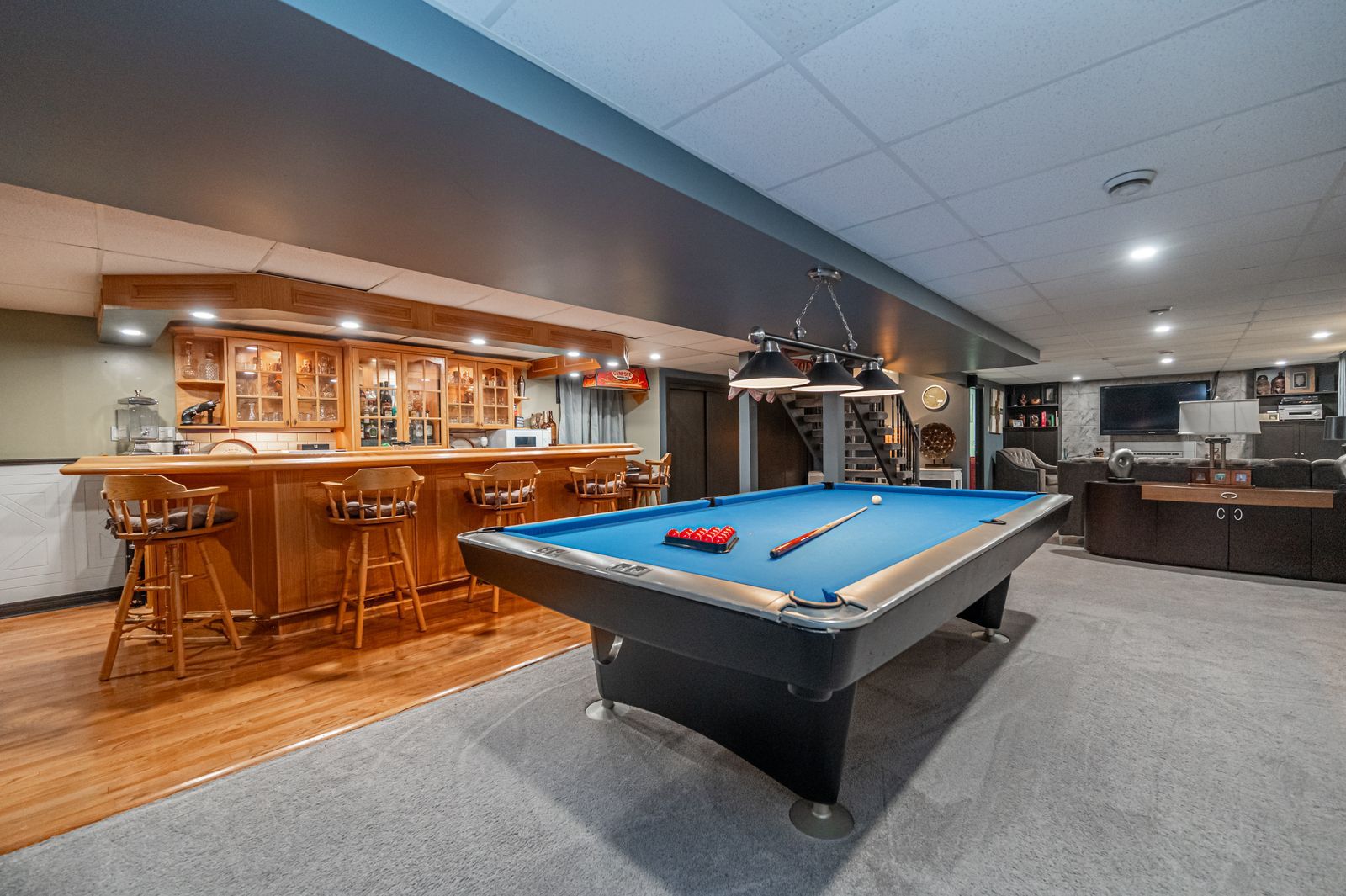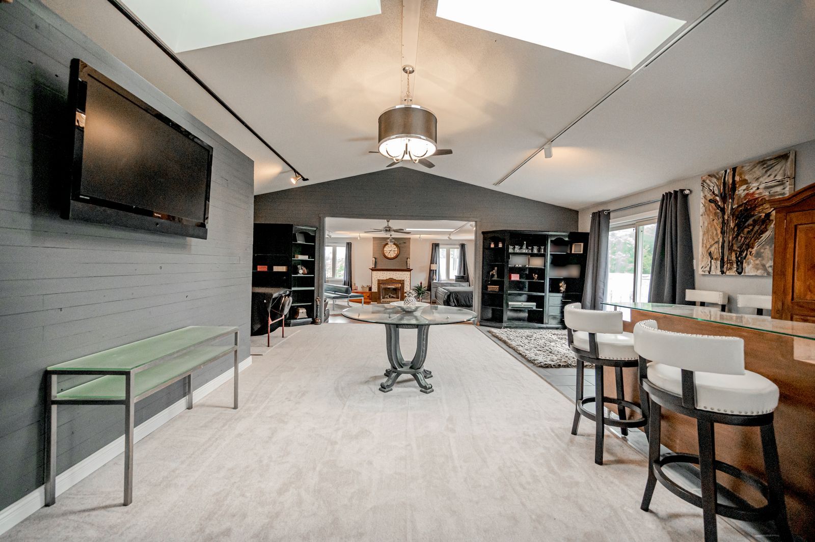 Live together without compromise on 1. 3 acres with three complete living spaces, an in-ground pool & a basketball court! Big families, blended families and multi-generational households will immediately see the value in this layout, with three separate living zones and over 8,400 finished square feet of living space. Situated on 1. 3 acres with a wooded backdrop only 5 minutes from barrie, the backyard delivers a resort-style experience with an in-ground pool, stamped concrete patio, ample greenspace, a concrete basketball court that doubles as a winter rink, landscape lighting, an irrigation system, two 12 x 19 sheds, and a side gate offering drive access to the yard for easy boat and toy parking. The main residence features 5 bedrooms and 4 bathrooms, updated flooring, contemporary paint colours, and a functional kitchen with butcher-block counters, white cabinetry, a tile backsplash, stainless steel appliances, and an island. Upstairs, the primary retreat stands apart with soaring skylit ceilings, a generous sitting area with a fireplace, an entertainment area with a walkout to the balcony, and a spa-like ensuite with a walk-in closet and convenient access to the laundry room. The finished basement adds even more room, with a large rec room, a cozy fireplace, a solid oak wet bar, and a full bathroom. For in-law potential and added flexibility, the pool house offers 2 bedrooms, 2 full bathrooms, its own kitchen, and a bright open living space overlooking the pool, plus a 690 sq ft unfinished lower level, while the separate studio adds its own kitchen, living area, full bathroom and laundry, creating a fully equipped space for extended family, guests, or working from home. Few properties solve space, privacy and multi-generational living this cleanly, with the bonus of a backyard that feels like a destination!