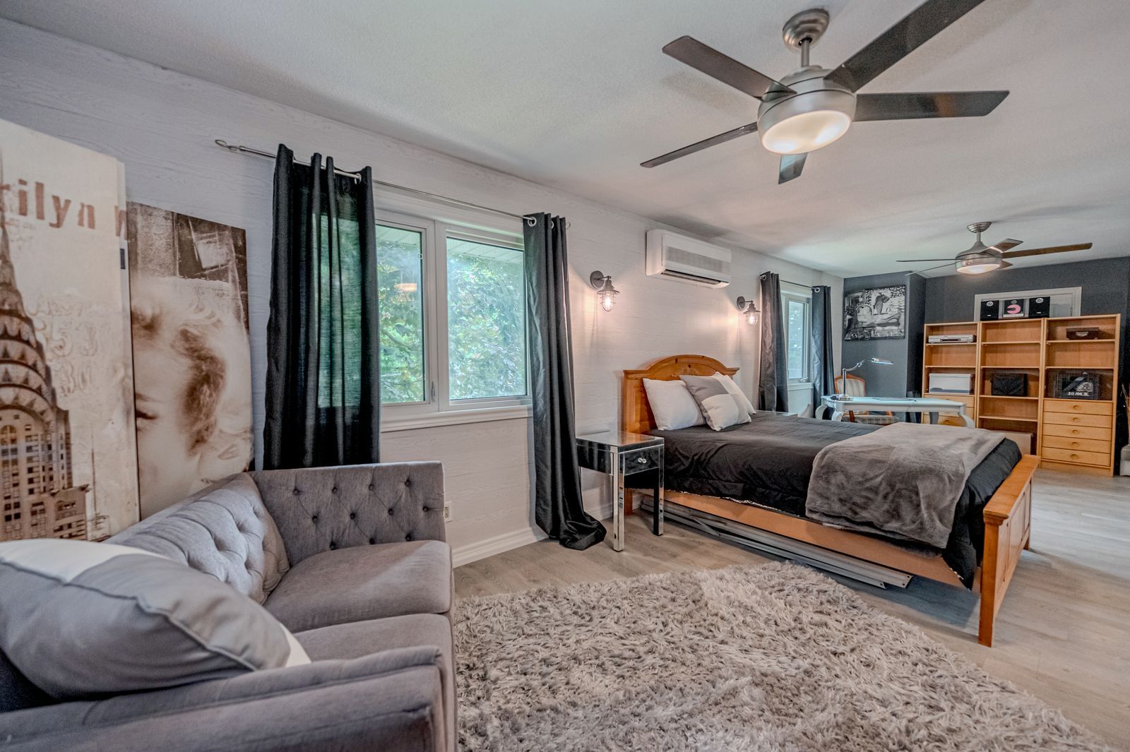 Live together without compromise on 1. 3 acres with three complete living spaces, an in-ground pool & a basketball court! Big families, blended families and multi-generational households will immediately see the value in this layout, with three separate living zones and over 8,400 finished square feet of living space. Situated on 1. 3 acres with a wooded backdrop only 5 minutes from barrie, the backyard delivers a resort-style experience with an in-ground pool, stamped concrete patio, ample greenspace, a concrete basketball court that doubles as a winter rink, landscape lighting, an irrigation system, two 12 x 19 sheds, and a side gate offering drive access to the yard for easy boat and toy parking. The main residence features 5 bedrooms and 4 bathrooms, updated flooring, contemporary paint colours, and a functional kitchen with butcher-block counters, white cabinetry, a tile backsplash, stainless steel appliances, and an island. Upstairs, the primary retreat stands apart with soaring skylit ceilings, a generous sitting area with a fireplace, an entertainment area with a walkout to the balcony, and a spa-like ensuite with a walk-in closet and convenient access to the laundry room. The finished basement adds even more room, with a large rec room, a cozy fireplace, a solid oak wet bar, and a full bathroom. For in-law potential and added flexibility, the pool house offers 2 bedrooms, 2 full bathrooms, its own kitchen, and a bright open living space overlooking the pool, plus a 690 sq ft unfinished lower level, while the separate studio adds its own kitchen, living area, full bathroom and laundry, creating a fully equipped space for extended family, guests, or working from home. Few properties solve space, privacy and multi-generational living this cleanly, with the bonus of a backyard that feels like a destination!
