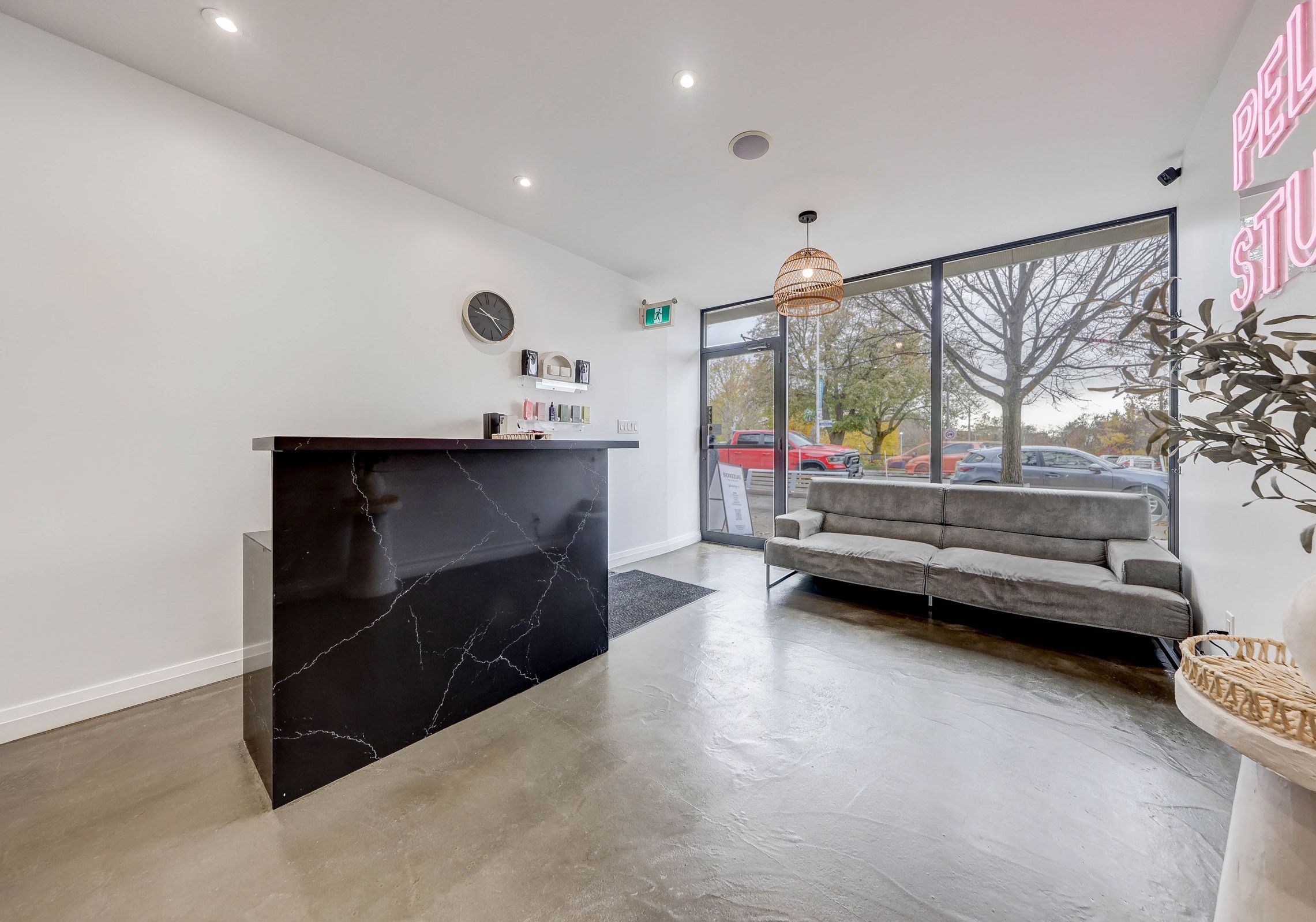 • Modern features like polished concrete floors and tall ceilings throughout.