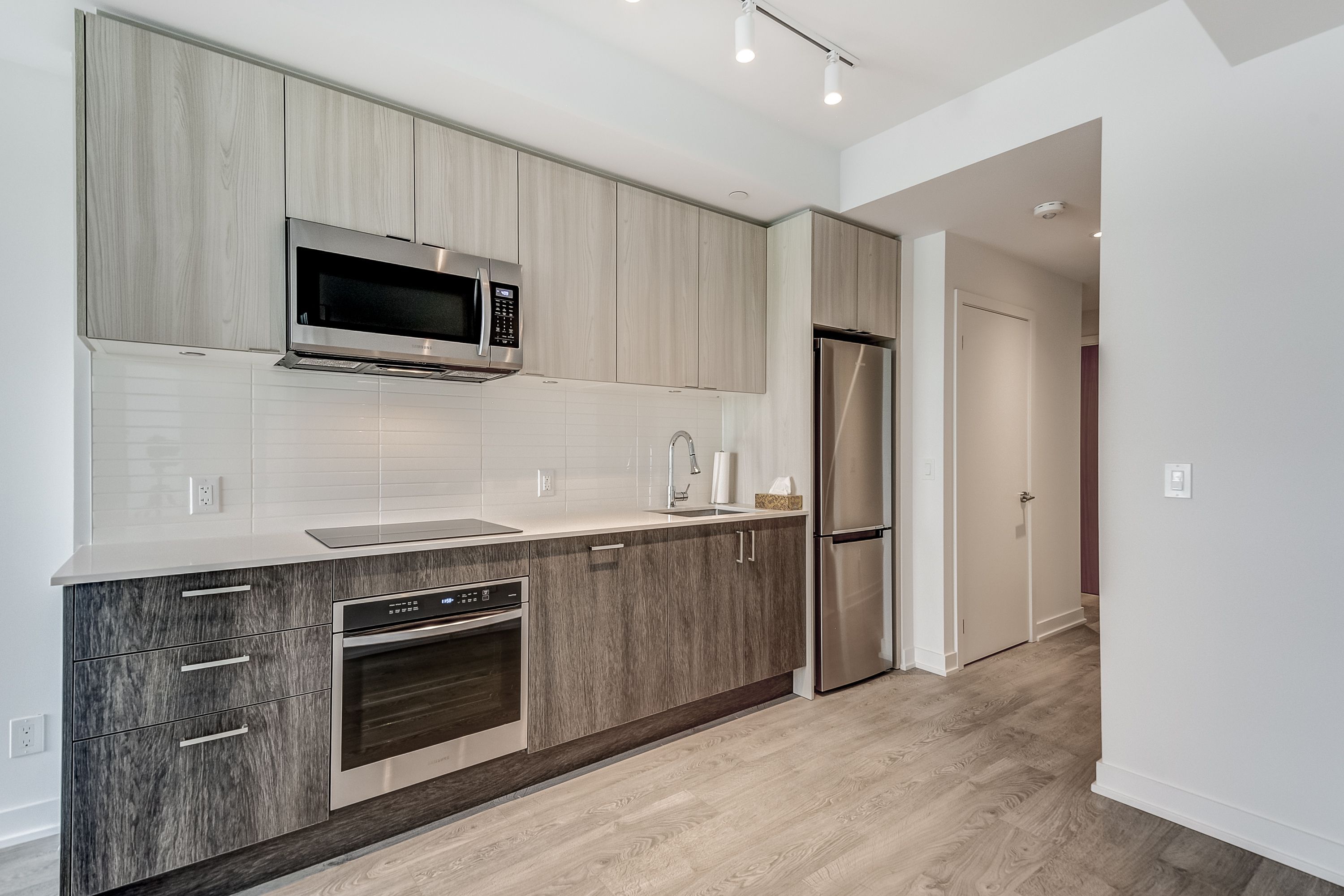 • Sleek kitchen with premium appliances and thoughtful finishes throughout the suite.