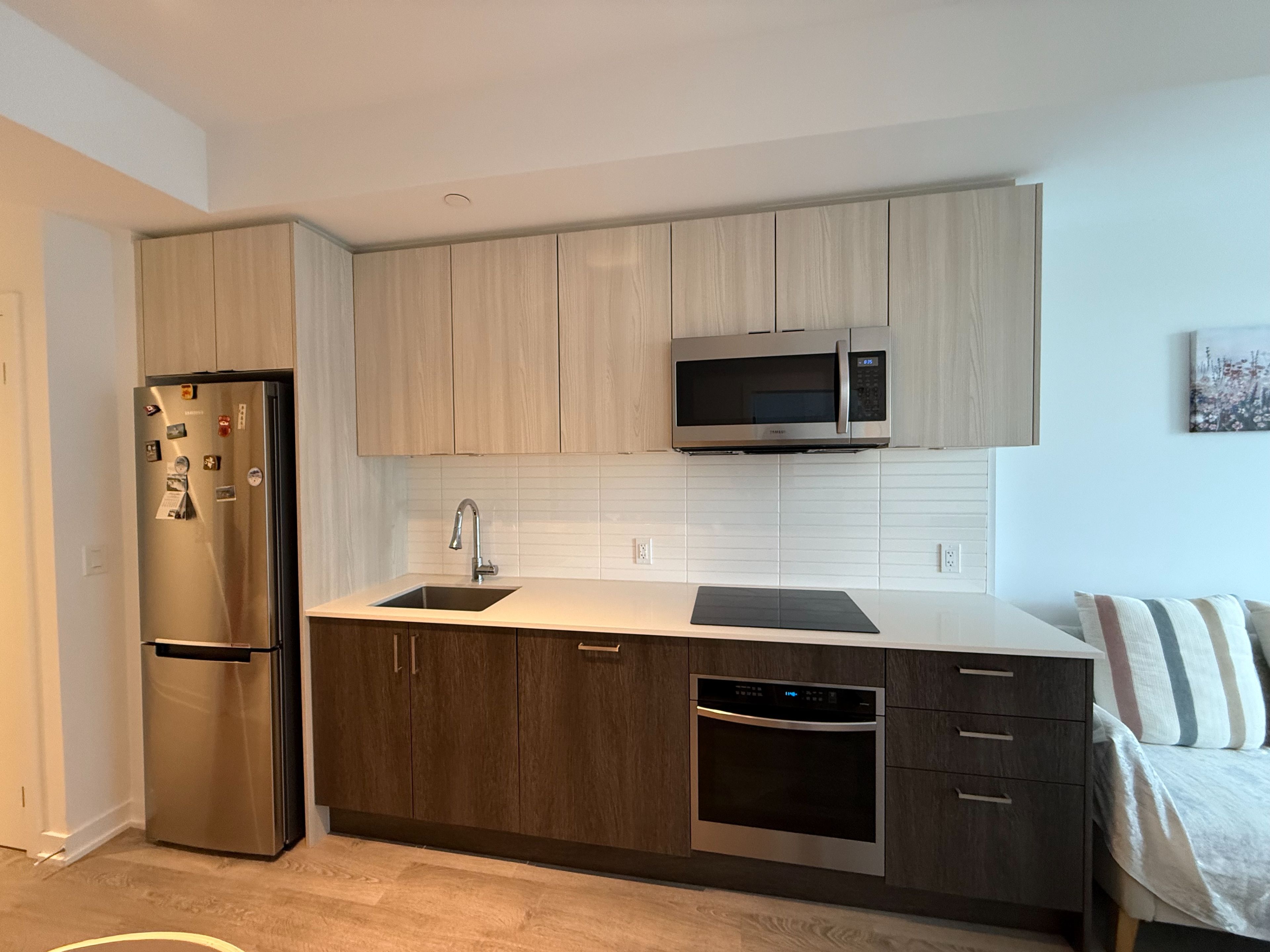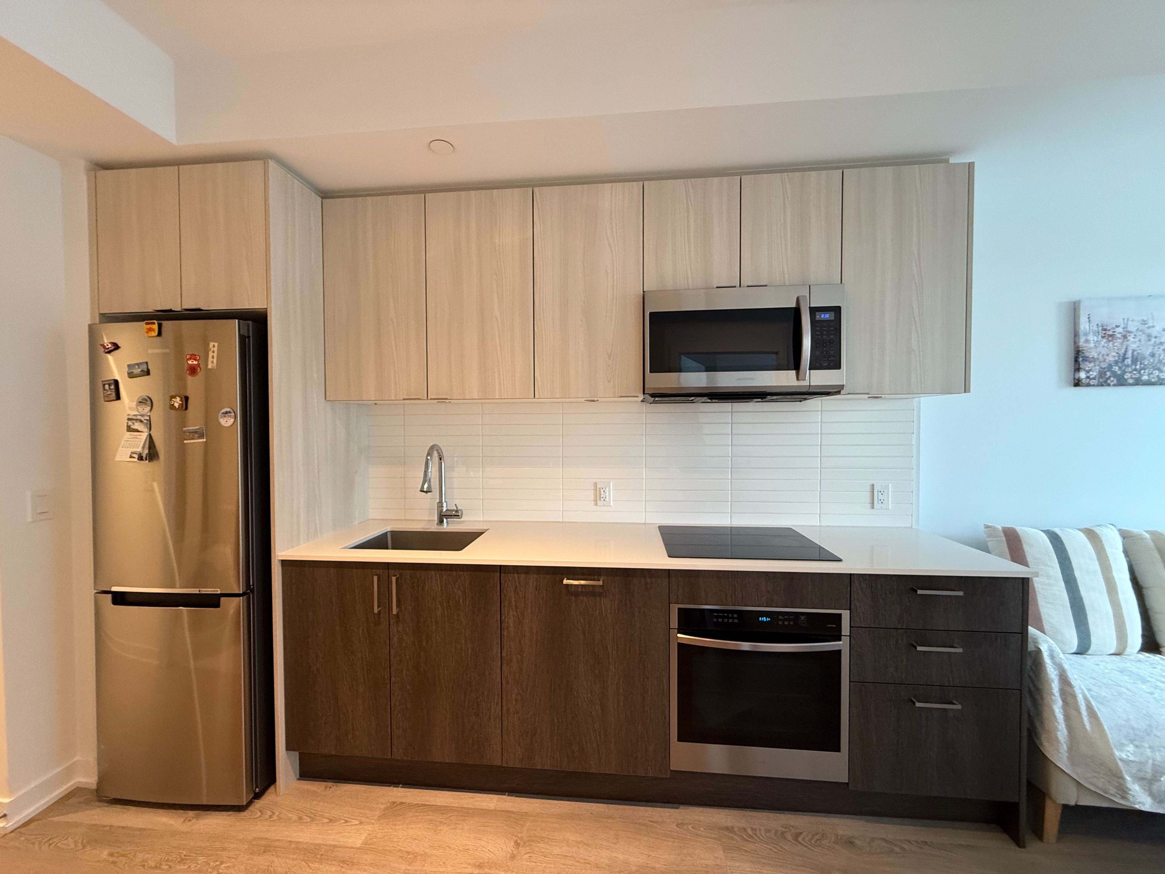 • Modern kitchen with quartz countertops and stainless steel appliances.