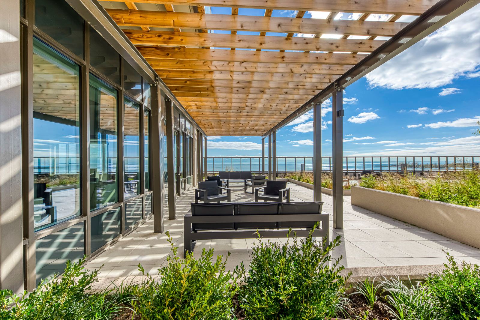• Building amenities include pool, gym, and outdoor terrace.