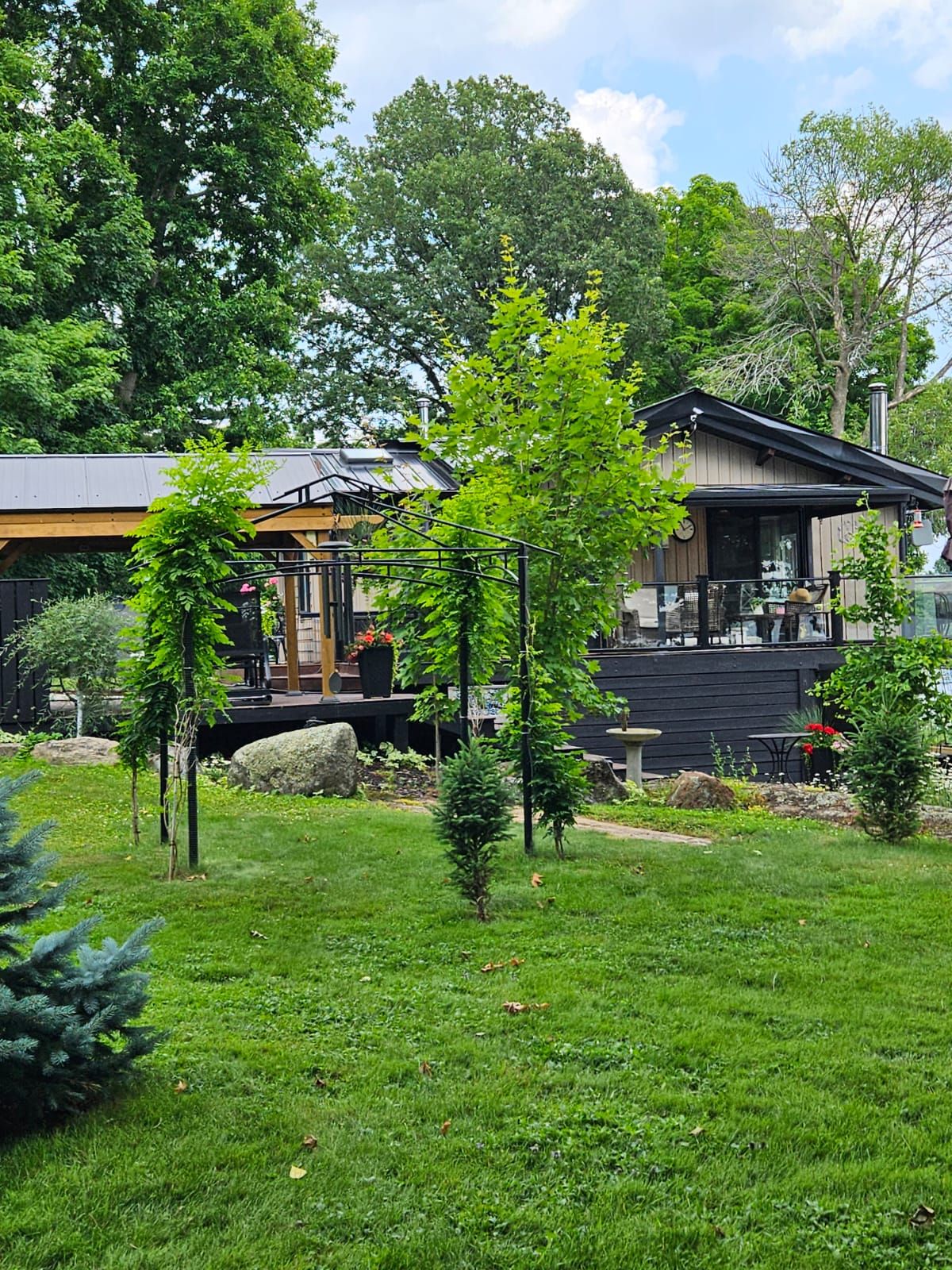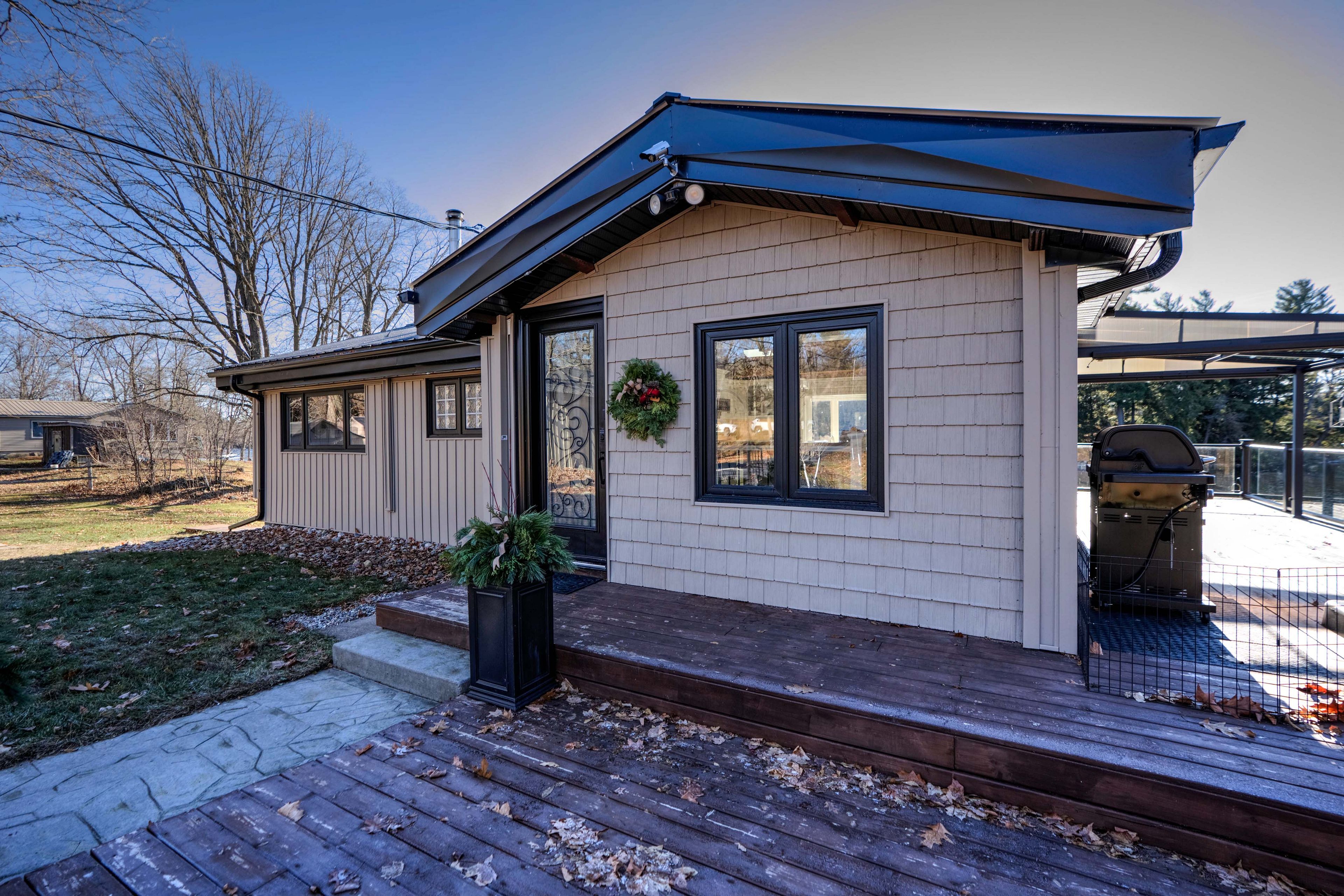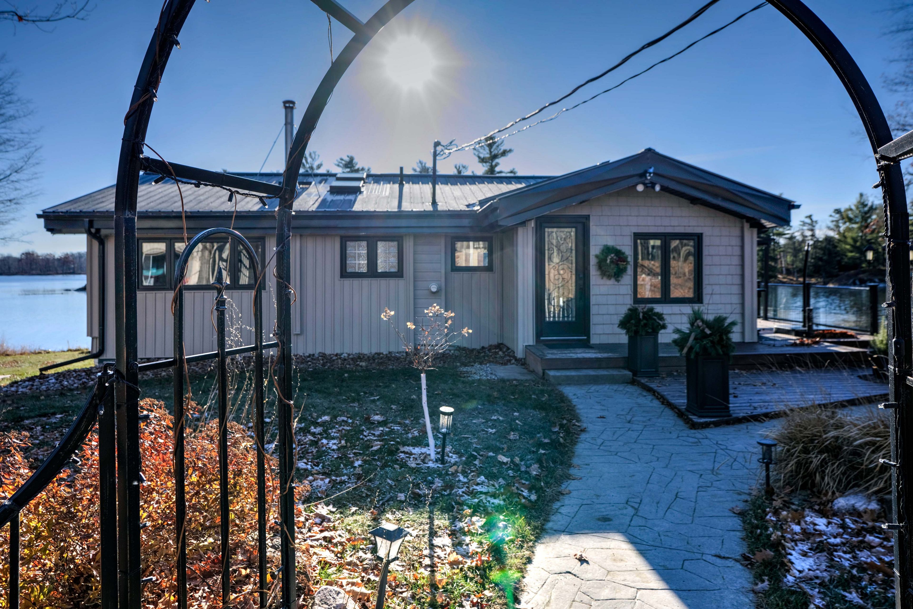 Welcome to 1927 hogan road, a stunning sydenham lake waterfront 4 season home that combines modern elegance with effortless lakeside living. This beautifully renovated bungalow features a desirable walk-out basement and high-end finishings throughout and provides sunrises and sunsets on private acre lot with wildlife galore, great fishing and fun lake activities, beautiful perennial gardens and so many extras. The main level offers two comfortable bedrooms, a stylish 4-piece bathroom, and convenient main-floor laundry-all designed for easy, everyday living. The interior flows seamlessly with bright, open spaces that capture views and natural light and lower level is mostly finished with covered walkout to waterfront and amazing views from windows along with cozy woodstove and 3 pc bath. The new 3 pc bath will be finished at seller's expense prior to closing. Step outside to your professionally landscaped grounds complete with a spacious patio and deck, ideal for entertaining or relaxing while enjoying panoramic lake vistas. A paved driveway leads to a large two-car garage and an additional drive-in single carport, providing exceptional parking and storage options. This property also boasts a private, aluminum dock and lovely and easy waterfront access-perfect for swimming, boating, or simply soaking in the serene beauty of sydenham lake. Only 10 minutes to sydenham and 20 minutes to kingston, 1927 hogan road is the ultimate blend of luxury, comfort, and waterfront lifestyle-a gorgeous place to call home.