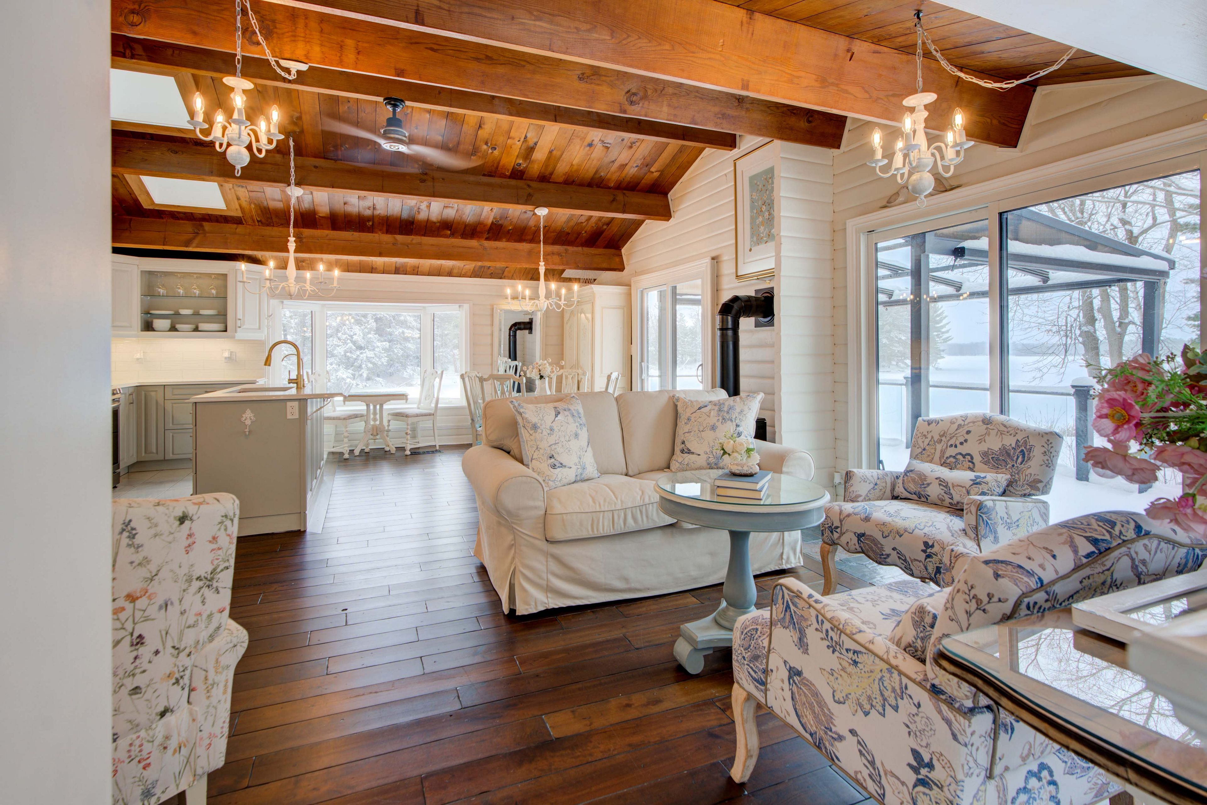 Subtype DetachedIndoor Features Auto Garage Door Remote, Carpet Free, Generator - Partial, Primary Bedroom - Main Floor, Storage, Storage Area Lockers, Sump Pump, Water Heater OwnedOutdoor Features Awnings, Deck, Fishing, Landscape Lighting, Patio, Paved Yard, LandscapedAmenities Clear View, Lake/Pond, Level, Rolling, School Bus Route, WaterfrontOwnership FreeholdViews Lake, Panoramic, Forest, Garden, Trees/Woods, WaterWaterfront DirectBasement Full, Partially FinishedFoundation BlockHeating / Cooling OtherHeating Fuel PropaneSewer Septic