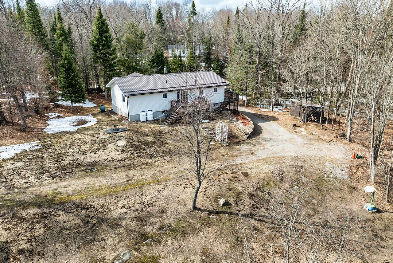 Discover this meticulously maintained raised bungalow, built in 1988, offering an impressive 2,200 sq. Ft. Of living space on a stunning 3. 4 acres of wooded land. This charming royal home features three bedrooms on the main floor, complemented by two additional bedrooms in the fully finished basement, providing versatile options for guests, a home office, or family activities. With the convenience of a 4-piece main bathroom and an extra 2 piece powder room on the main floor, along with an extra toilet in the basement that can easily be turned into a third bathroom, this residence is designed for comfort and functionality. Structurally sound and well-built royal home, the property includes annual inspections of the septic system, ensuring peace of mind. The home is equipped with a drilled well over 300 feet deep, providing ample water supply. Energy-efficient features such as a life breather air exchanger and an external generator make this home ready for all seasons. Heating options include a propane stove in the basement and electric baseboard heaters, with potential for installing a heat pump for enhanced efficiency. The exterior boasts a new steel roof and new vinyl siding installed within the last decade, ensuring durability and modern aesthetics. Many windows have been replaced, including those in the kitchen, bathrooms, and dining room patio door, allowing for abundant natural light to fill the space. A gravel driveway leads to a detached garage, offering ample storage and parking. The walkout basement opens directly to the serene landscape, along with a wrap around deck, perfect for outdoor gatherings and enjoying nature. This home presents a unique opportunity to put your own blend of comfort and style on it while enjoying its perfect setting in nature, making it a must-see property. Schedule your viewing today to experience all that this stunning home has to offer! Home is being sold as-is where is with no warranties.