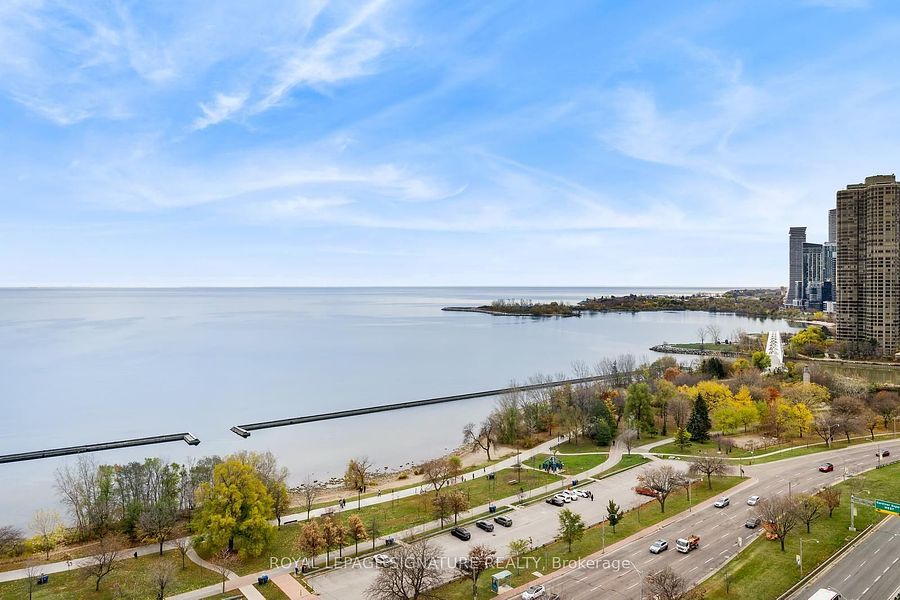 Welcome to mirabella condos, where luxury meets comfort! This bright and spacious 1-bedroom unit has been thoughtfully designed to maximize space and comfort. The gourmet kitchen boasts quartz countertops and stainless steel appliances, creating an inviting space for culinary delights. Step onto the walk-out balcony to be greeted by an unobstructed westerly view of lake ontario and humber bay shores, where you can enjoy breathtaking sunsets-perfect for sipping morning coffee or enjoying the evening ambiance. Mirabella offers a plethora of amenities tailored for your convenience, including:- 24-hour concierge- rooftop patio with seating and bbq- indoor pool- gym with wifi- party room- yoga studio- guest suite with kitchen- business centre with wifi- kids' playroom- free visitor parking- ev chargers- secure bike rooms with a dedicated bike elevator high-speed internet is included in the condo fees. Situated just steps from picturesque walking trails along the lake, mirabella provides a serene escape while being minutes away from the trendy bloor west village, offering easy access to shopping, dining, and public transit. Seize the opportunity to experience the pinnacle of luxury living book your viewing of mirabella today!