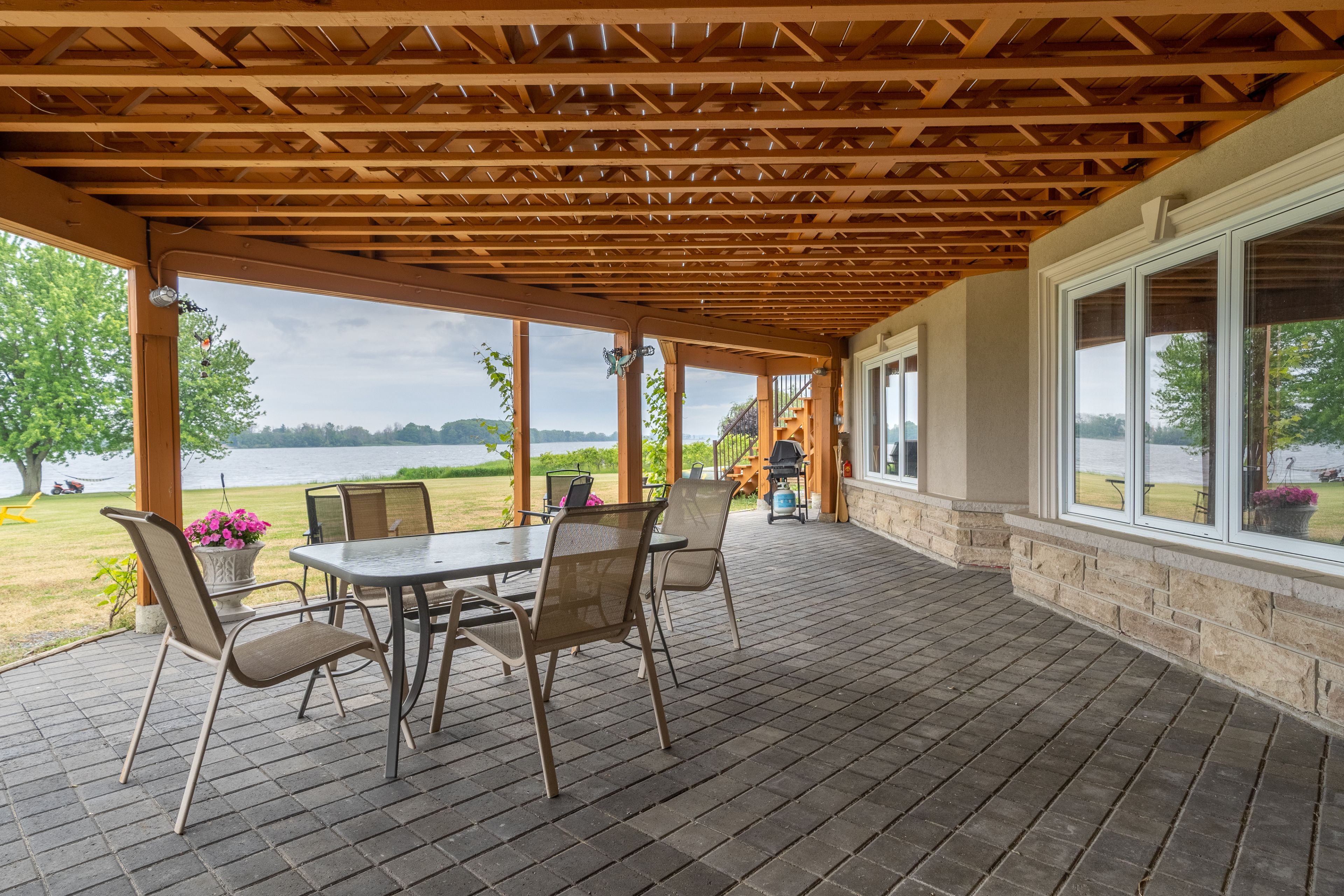Welcome to this stunning 7 bed, 6 bath, waterfront bungalow with an attached 3 car garage offering exceptional space, versatility, and investment potential, ideally located just minutes from the renowned prince edward county wineries, breweries, and beaches. The main level boasts 4 spacious bedrooms and 4 bathrooms, including a luxurious primary suite complete with a private ensuite, creating a relaxing retreat. The heart of the home is the gourmet kitchen, featuring elegant ceramic tile flooring, granite countertops, and ample workspace, perfect for entertaining or everyday family living. Bright and open living spaces provide seamless flow and showcase the property's picturesque waterfront setting. The fully finished lower level expands the home's functionality with 3 additional large bedrooms and 2 bathrooms, offering plenty of space for guests, extended family, or rental use. Currently operating as a successful airbnb, this level provides an excellent opportunity for additional income while maintaining privacy and comfort. Car enthusiasts, hobbyists, or those needing extra storage will appreciate the impressive oversized 3-car garage, offering abundant space for vehicles, recreational equipment, and workspace needs. Set in one of ontario's most sought-after destinations, this remarkable property offers the perfect combination of luxury waterfront living, lifestyle convenience, and proven income potential. Whether you are looking for a full-time residence, vacation retreat, or investment property, this home delivers outstanding value and opportunity in the heart of prince edward county.