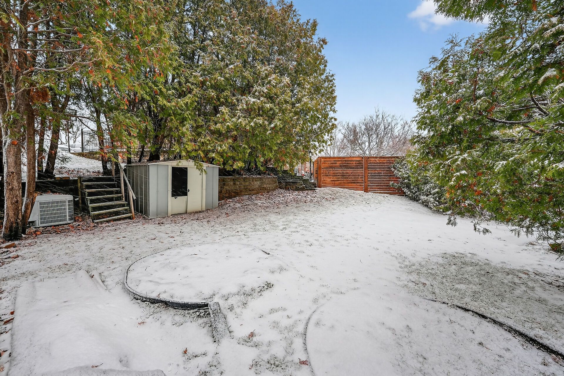 Endless opportunities awaits with this tyandaga home! Situated arguably on the best lot on the street with 123' feet across the rear yard, backing onto private wooded green space and siding directly next to kern's park trail. The backyard features a heated swimming pool, wood deck and ample grass area with all of it accessible via the finished walk-out basement. The main floor boosts large principal size rooms such as the eat-in kitchen, family room with wood burning brick fireplace, combined living/dining room, den/study and a mudroom with direct access to the double car garage. The upper-level includes 4 generous sized bedrooms, a shared main bathroom with double sinks, and the primary bedroom features a dedicated ensuite and walk-in closet. The finished walk-out basement features full height windows and an open concept plan. This is your chance to get into this highly sought-after neighbourhood now! Renovate this home to your taste!