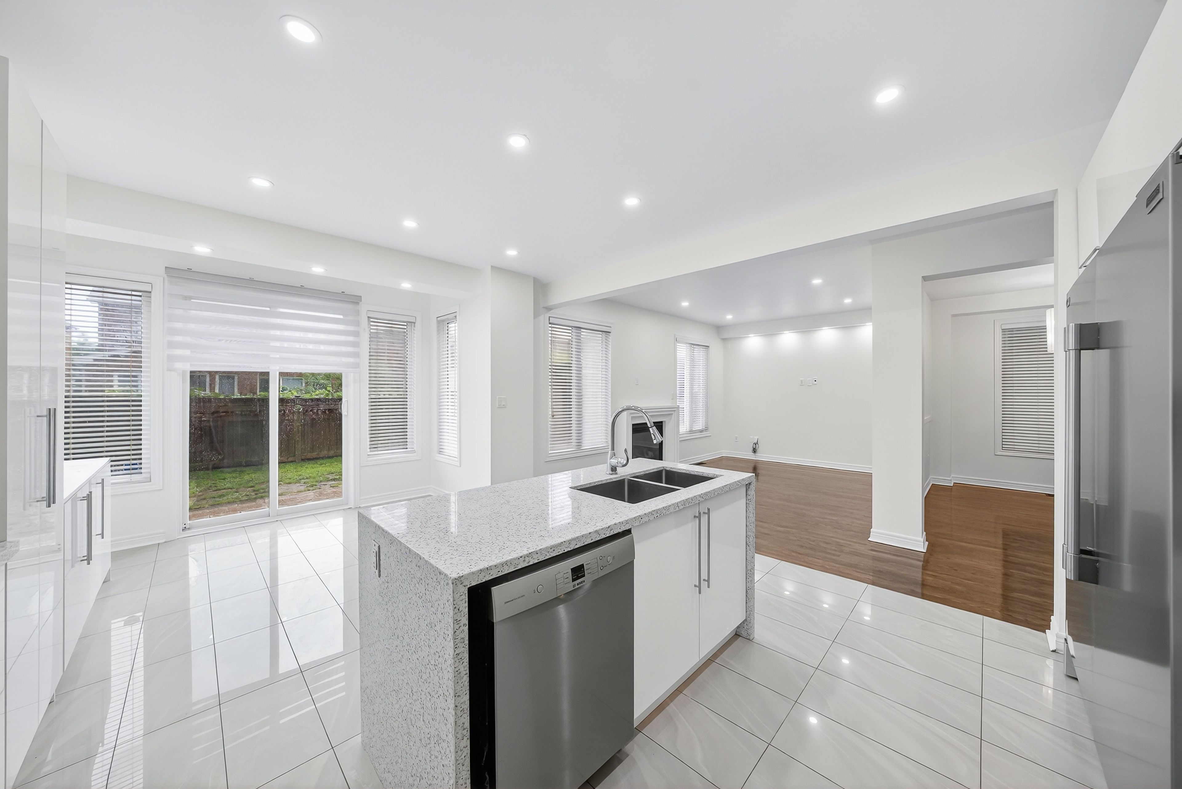 • Bright, open-concept layout with a modern kitchen and dining area.