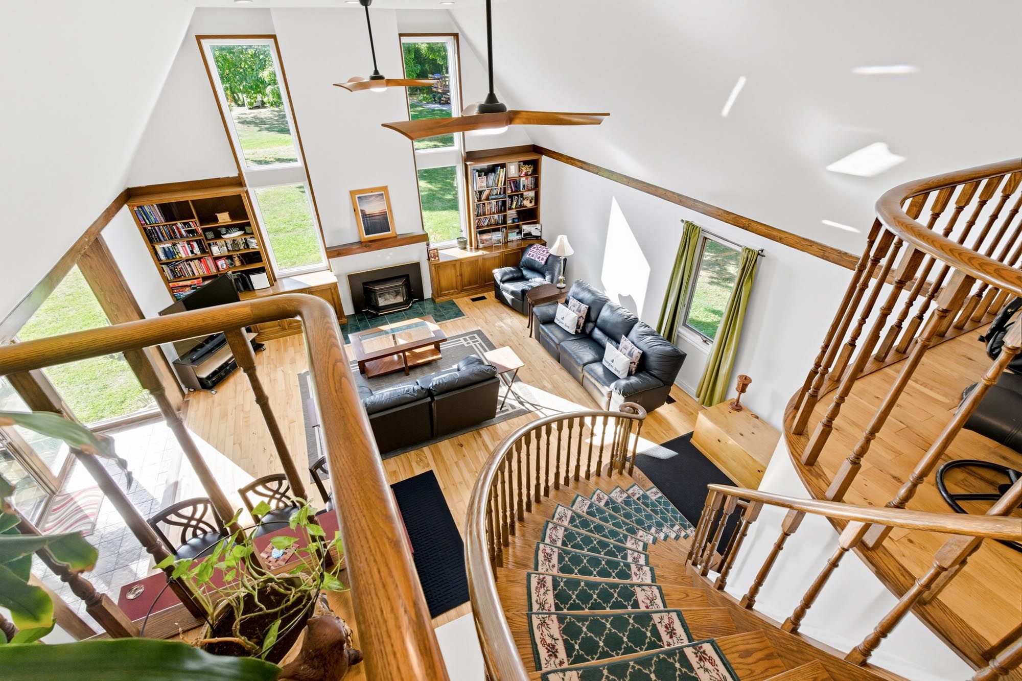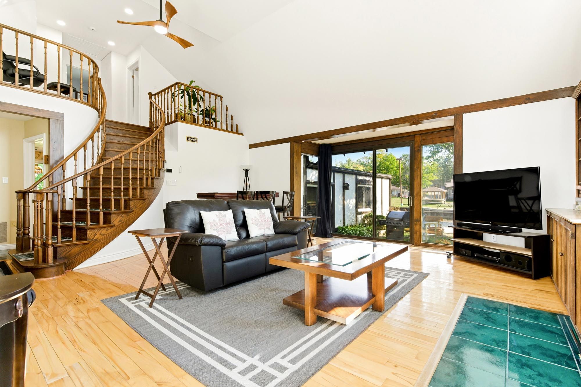 • Expansive great room with oversized windows and vaulted ceiling for natural light.