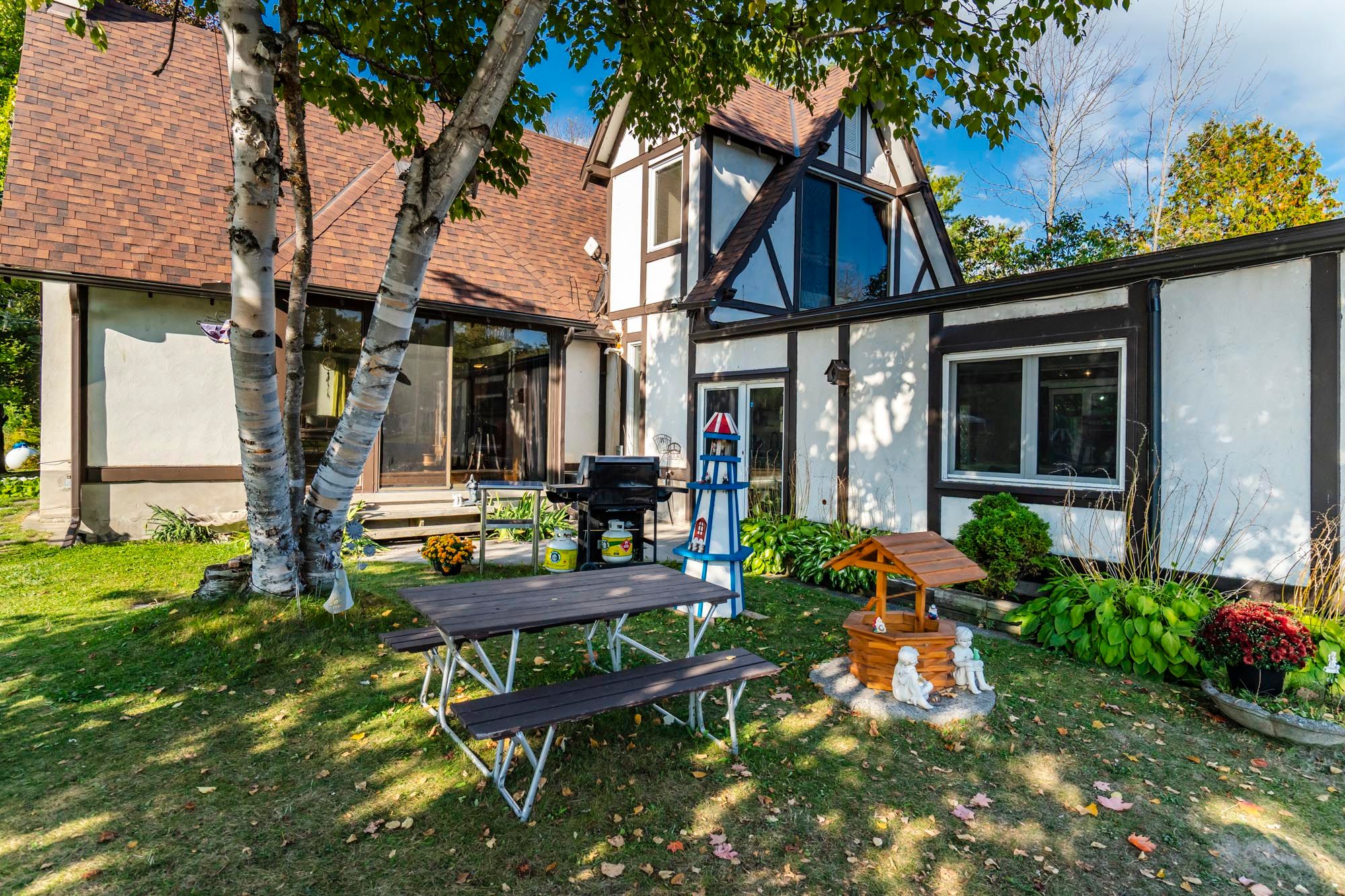 Top 5 reasons you will love this home: 1) with 75' of waterfront and direct access to georgian bay, this is true shoreline living, set along a protected channel, your boat stays sheltered from prevailing winds while still enjoying quick access to open water and the kind of sunsets people travel hours to experience, to top it all off, you also have access to two sandy beaches within walking distance 2) almost half an acre in a rural setting gives you breathing room and long-term value, with no direct neighbours across the street, adding a level of privacy that new subdivisions simply cannot offer, yet you are still within close proximity to highway 400 for an easy commute 3) the expansive great room serves as the heart of the home, highlighted by oversized windows, a vaulted ceiling, built-in bookshelves, and a fireplace that beautifully anchors the space as natural light pours in, while the primary bedroom offers serene water views so you can wake up to georgian bay every day 4) fully renovated main level bedroom complete with a wet bar and centre island creates the perfect in-law setup or separate overflow living space when guests arrive, along with a main level laundry room for easy convenience 5) peace of mind comes with the roof, furnace, and air conditioner already replaced, complemented by efficient european windows throughout the main level bedroom addition, as well as four updated windows flanking the fireplace in the great room, while a detached garage and powered auxiliary storage and workshop building provide plenty of space for tools, toys, and projects. 2,602 fin. Sq. Ft.