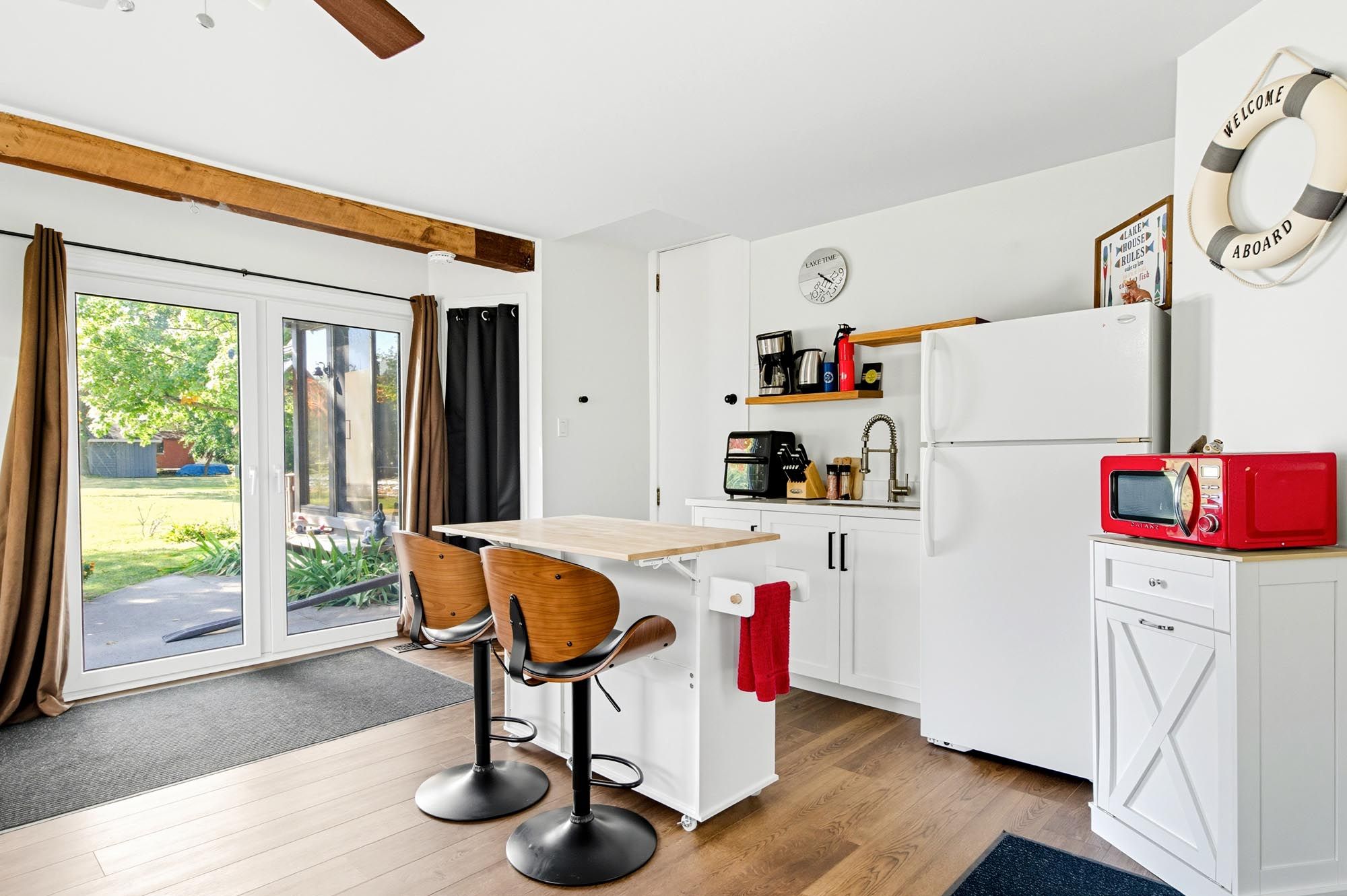 • Renovated main level bedroom ideal for guests or in-law setup, includes wet bar.