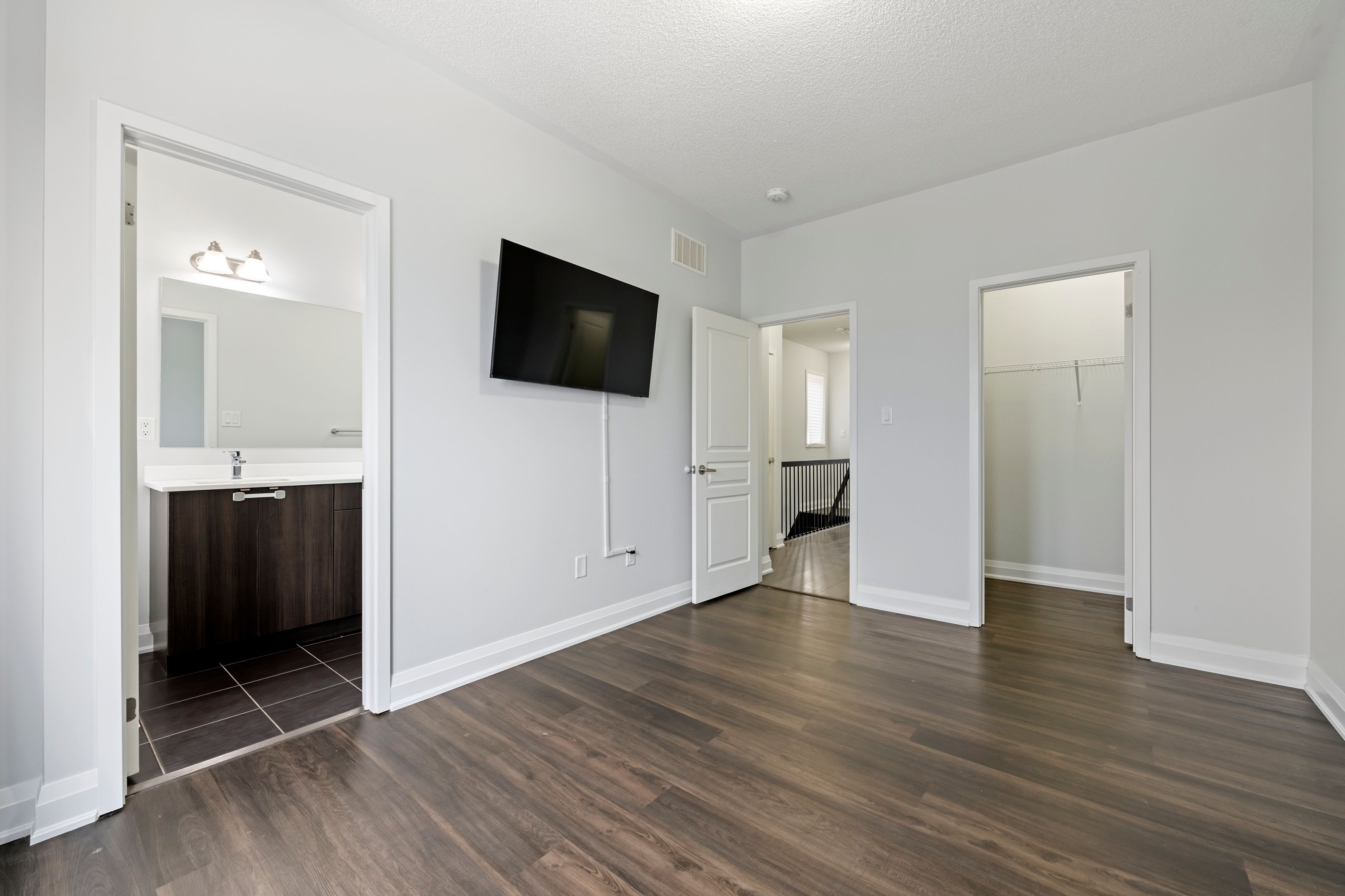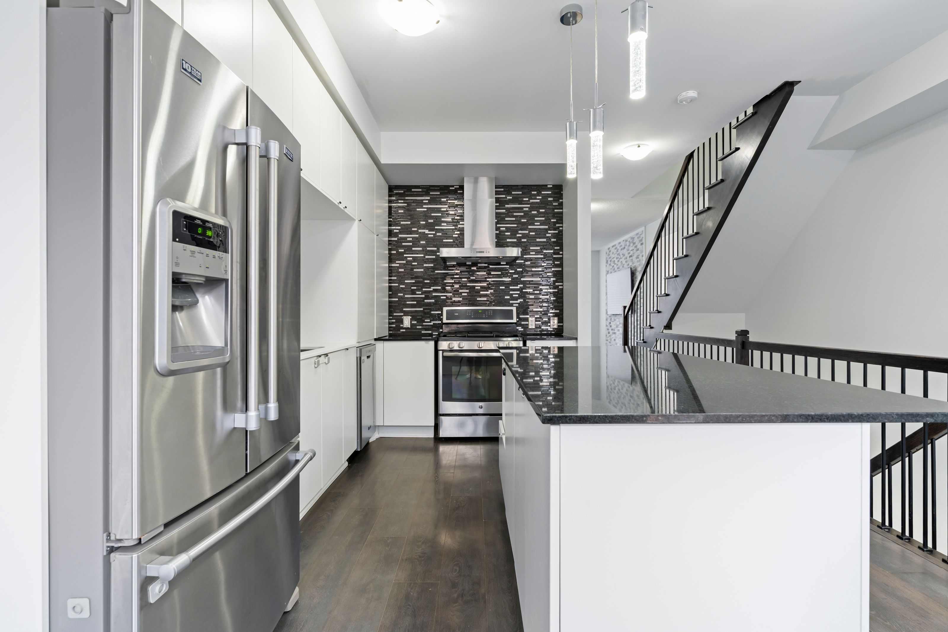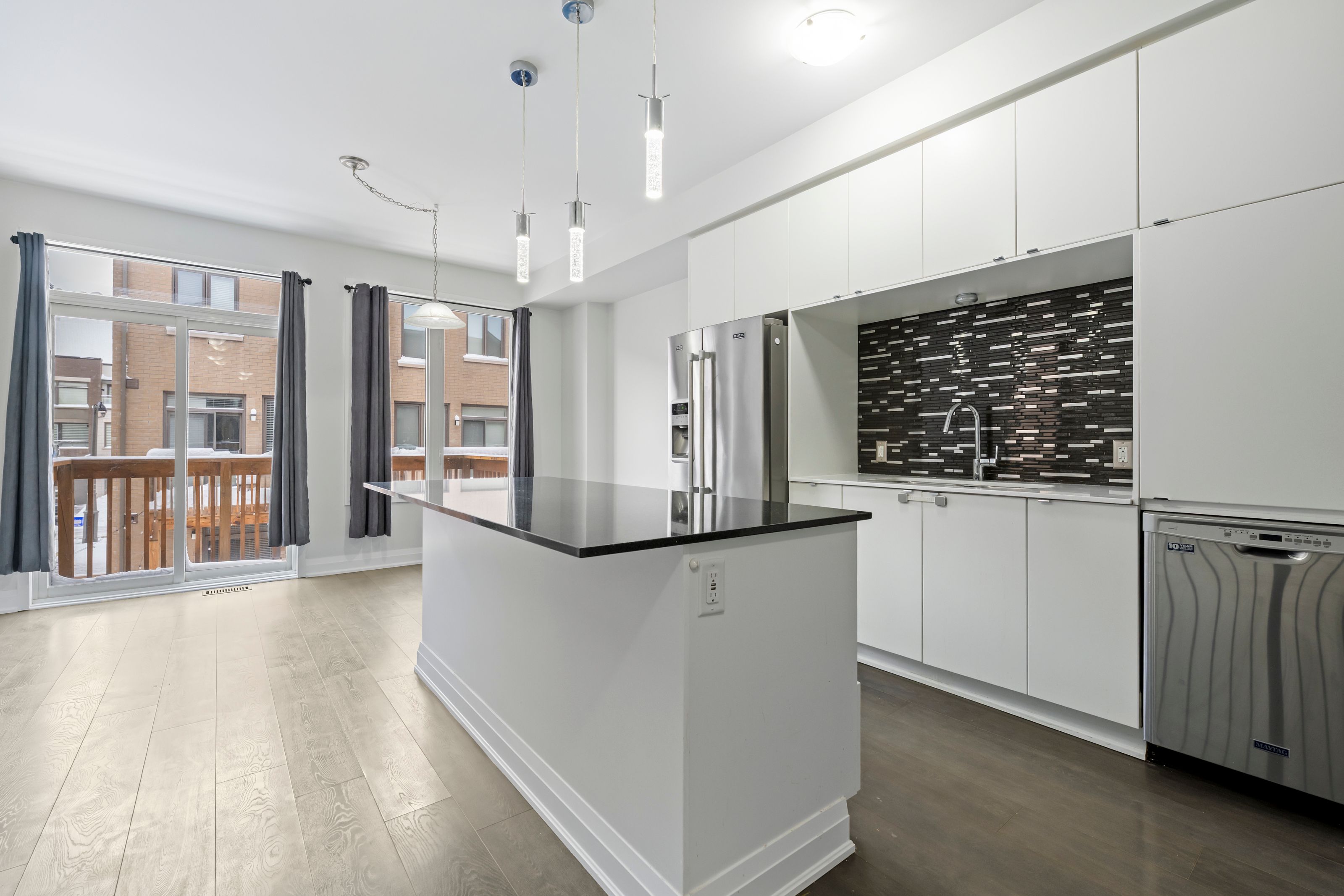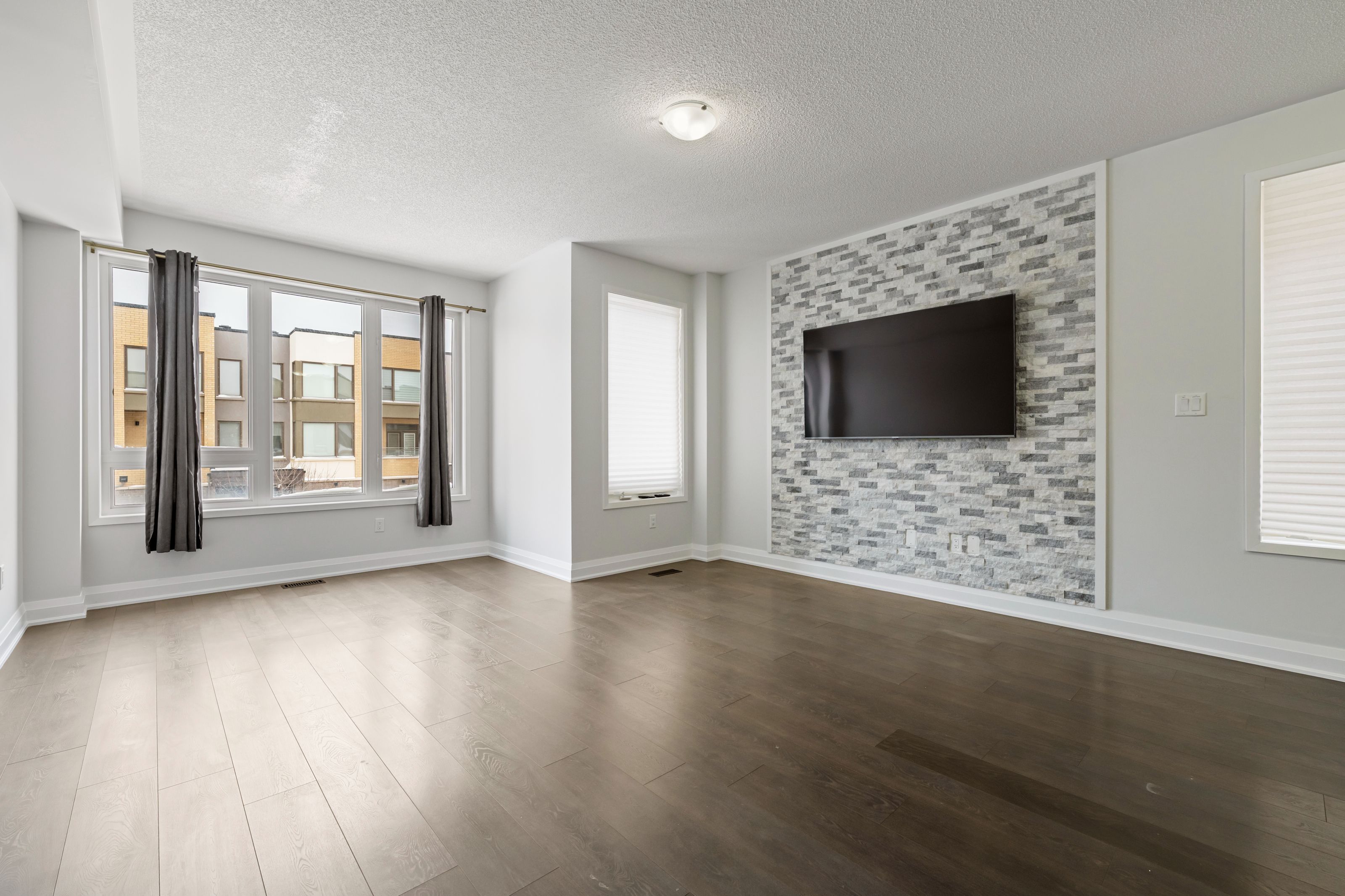 Welcome to this great gulf freehold modern end-unit town home in oakville, featuring extrawindows adding an abundance of natural light. This 1990 sqft unit is stunningly move-in ready. The main floor includes added convenience with inside entry from the garage, having updated epoxy flooring. A 2-piece bathroom, plenty of storage space, and a family room complete this level, with a walkout to the private backyard where you can host outdoor gatherings. The second floor features a modern kitchen with quartz countertops and an upgraded custom backsplash. With a spacious dining room opening to a balcony, perfect for enjoying your morning coffee or entertaining in the evening with a second gas-hookup for your next family barbecue. Completing this floor with a 2-piece bathroom and a spacious living room featuring an upgraded stone wall. The third floor consists of a primary bedroom with a spacious walk-in closet and 5-piece ensuite. As well as two additional bedrooms, another 4-piece bathroom and added convenience with the laundry just steps away on the same level. Luxury exterior upgrades include an exposed aggregate driveway, front porch and landscaping, a side gate access to a fully fenced backyard featuring artificial grass for year-round beauty and comfort. With both exterior and interior upgrades done throughout, all that's left to do is turn the key and enter this luxury unit. Smarthome features include a brand-new nest thermostat, an alarm system, and security system. Each floor consists of a wall mounted flat-screen tv. Located in a vibrant community close to parks, schools, shopping, and transit.