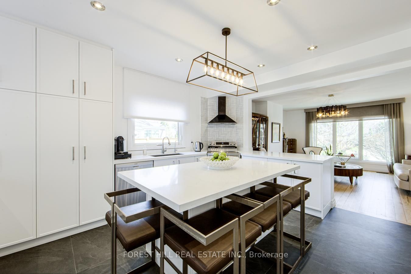 South of lakeshore! Welcome to this beautifully designed custom residence in a spectacular neighbourhood of large lots and mature tree-lined streets. Offering the perfect blend of comfort & elegance. This home is designed for family living & entertaining. Open concept living room and a well-appointed kitchen with center island, formal dining room overlooking the backyard, main floor guest room/office .. Second floor family room for added space, family time and relaxation with walk out to sundeck overlooking the quiet street. Primary bedroom with 4 pc ensuite bathroom. Lower level is great for entertaining family and friends, gym & bedroom with ensuite bathroom. This home combines spacious interiors with beautifully designed outdoor spaces. Enjoy outdoor living with a lovely backyard perfect for summer barbecues, kids playtime, or relaxing in a serene environment. Walking distance to lake, close to shopping, restaurants, cafes, grocery stores and excellent schools. 2 car garage plus plenty of parking space on private drive for residents and guests. With its flexible layout, beautiful yards, and sought-after location, this home is an exceptional find for those seeking both comfort and convenience.