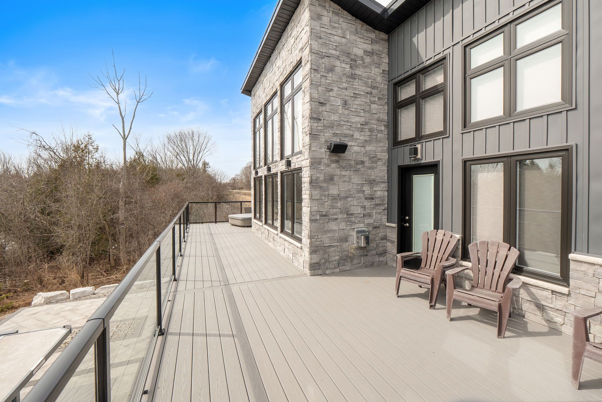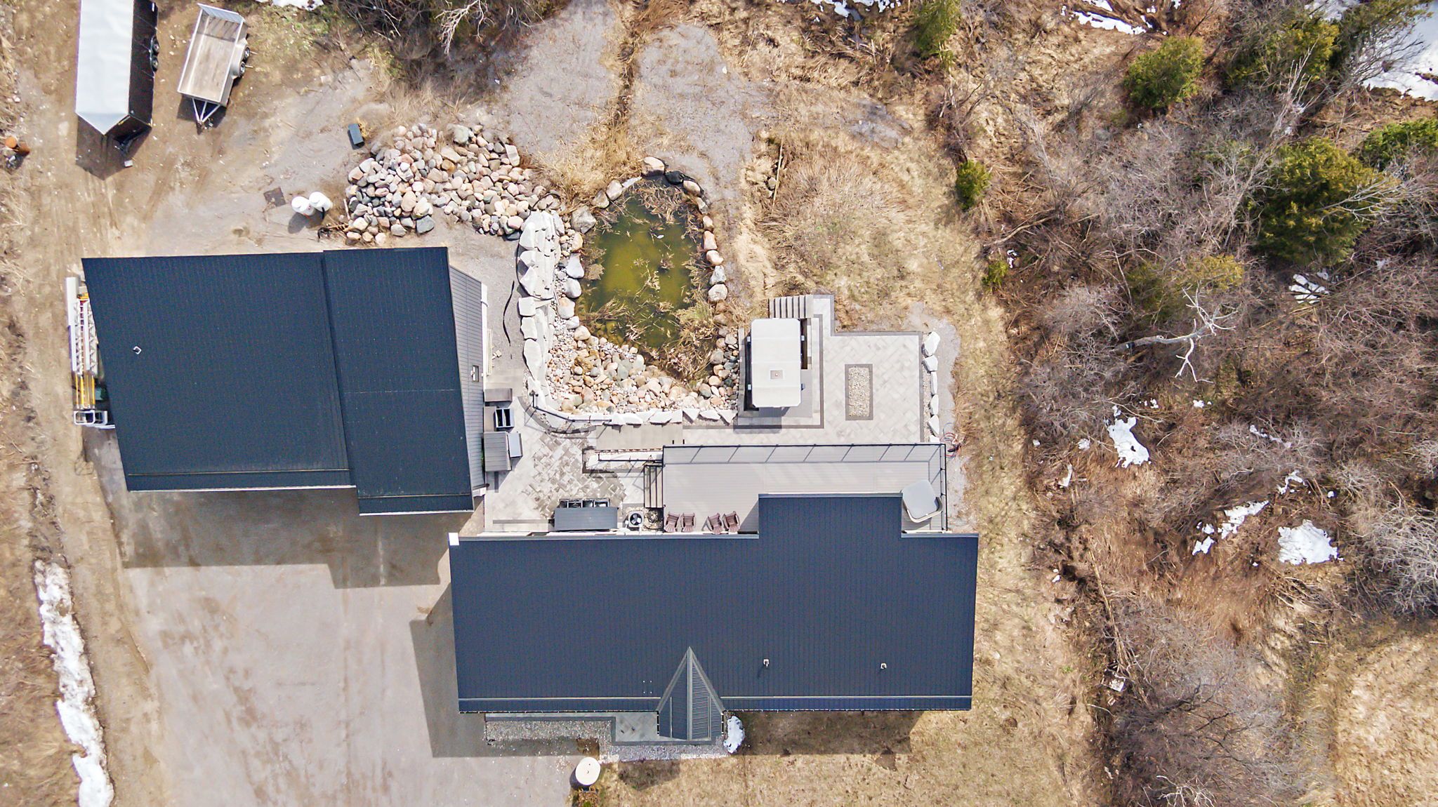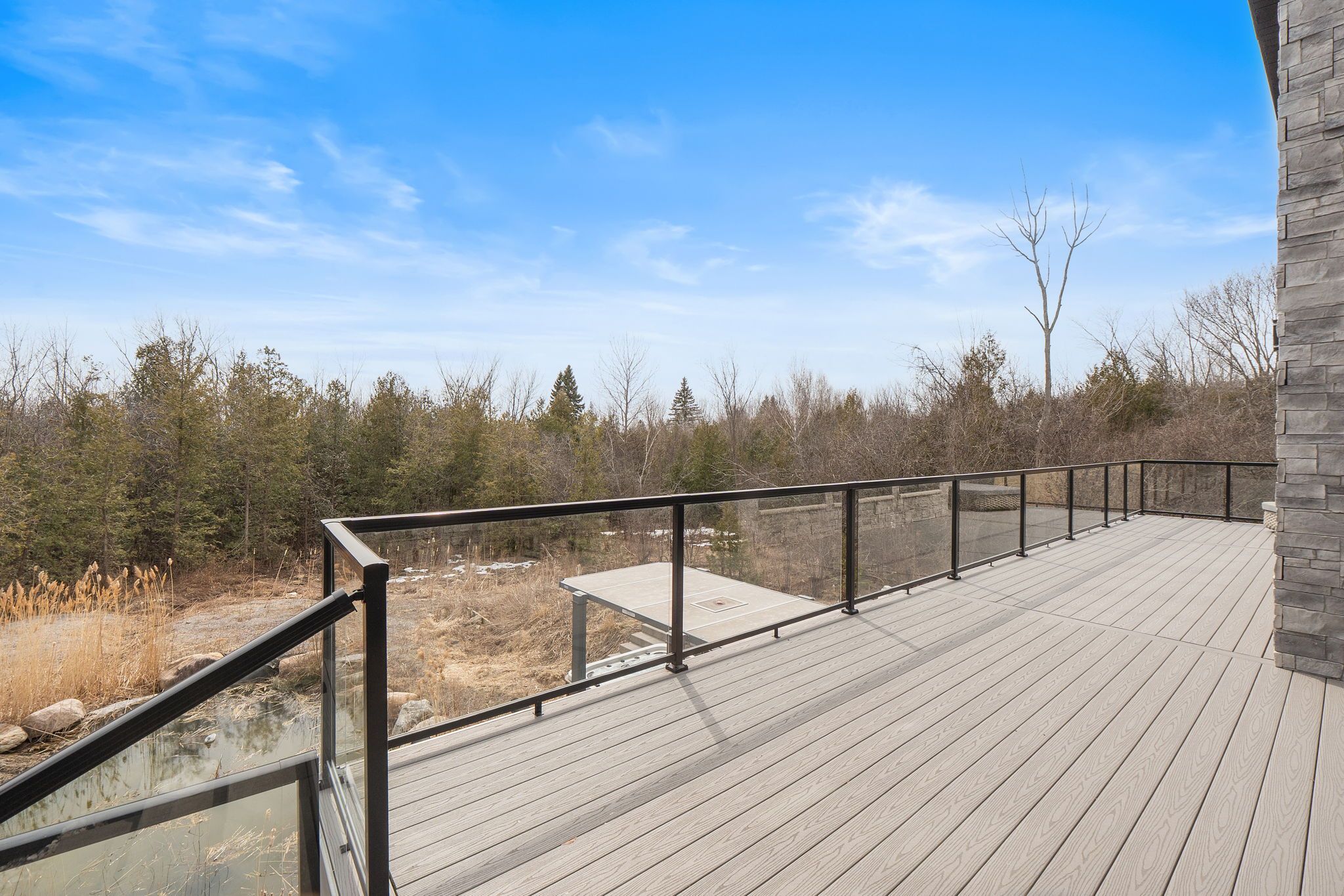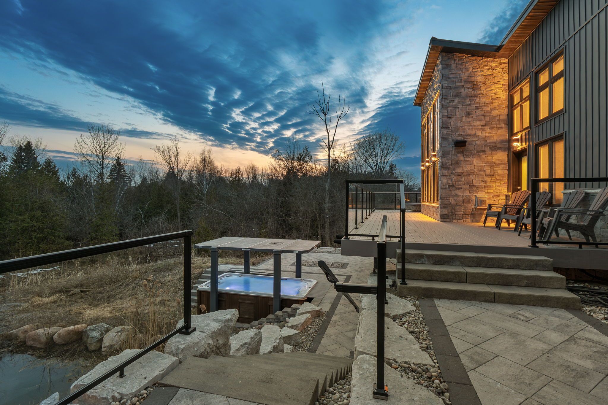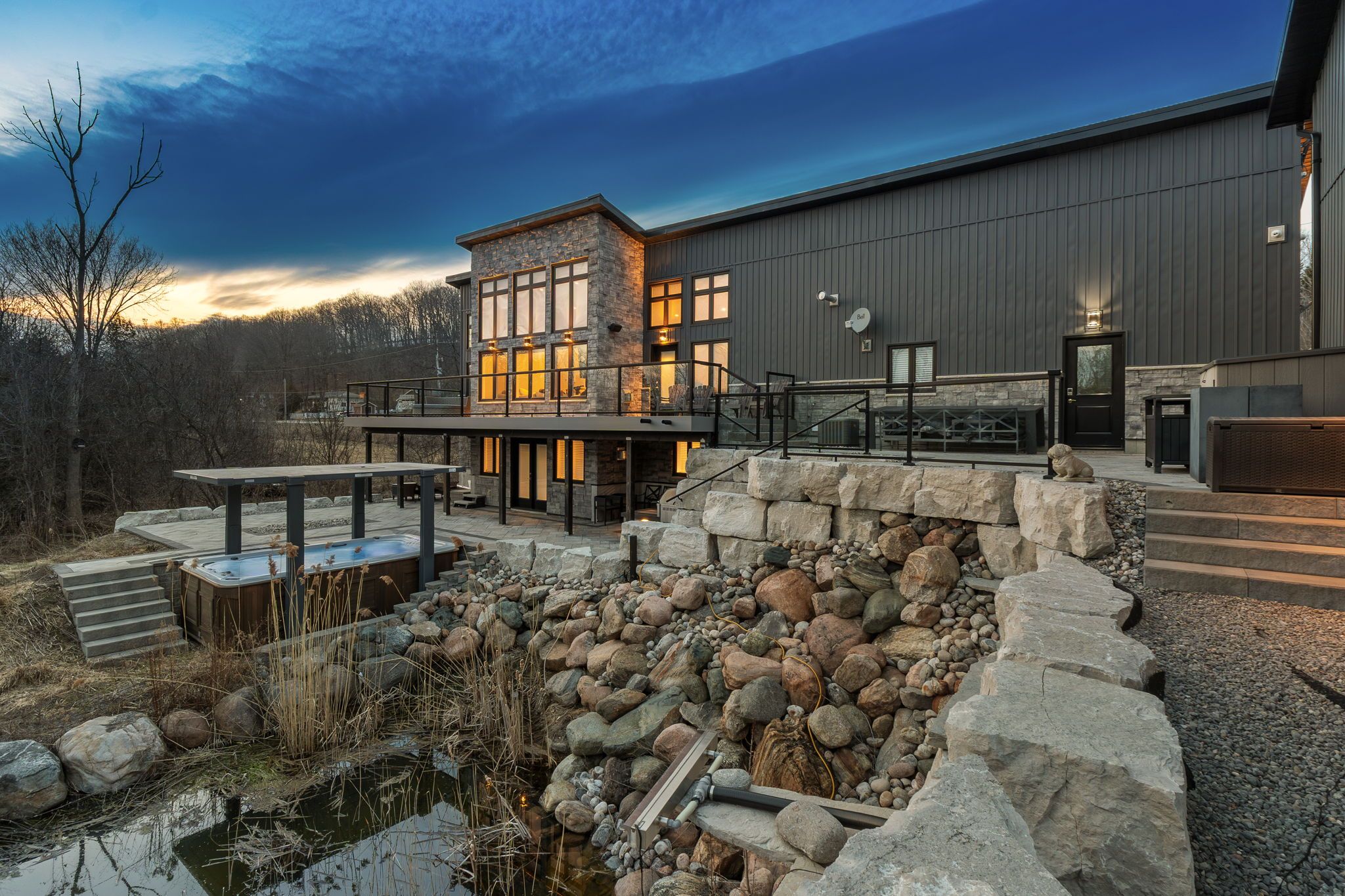 • Backyard retreat with spring-fed pond, TREK deck, and outdoor speakers.