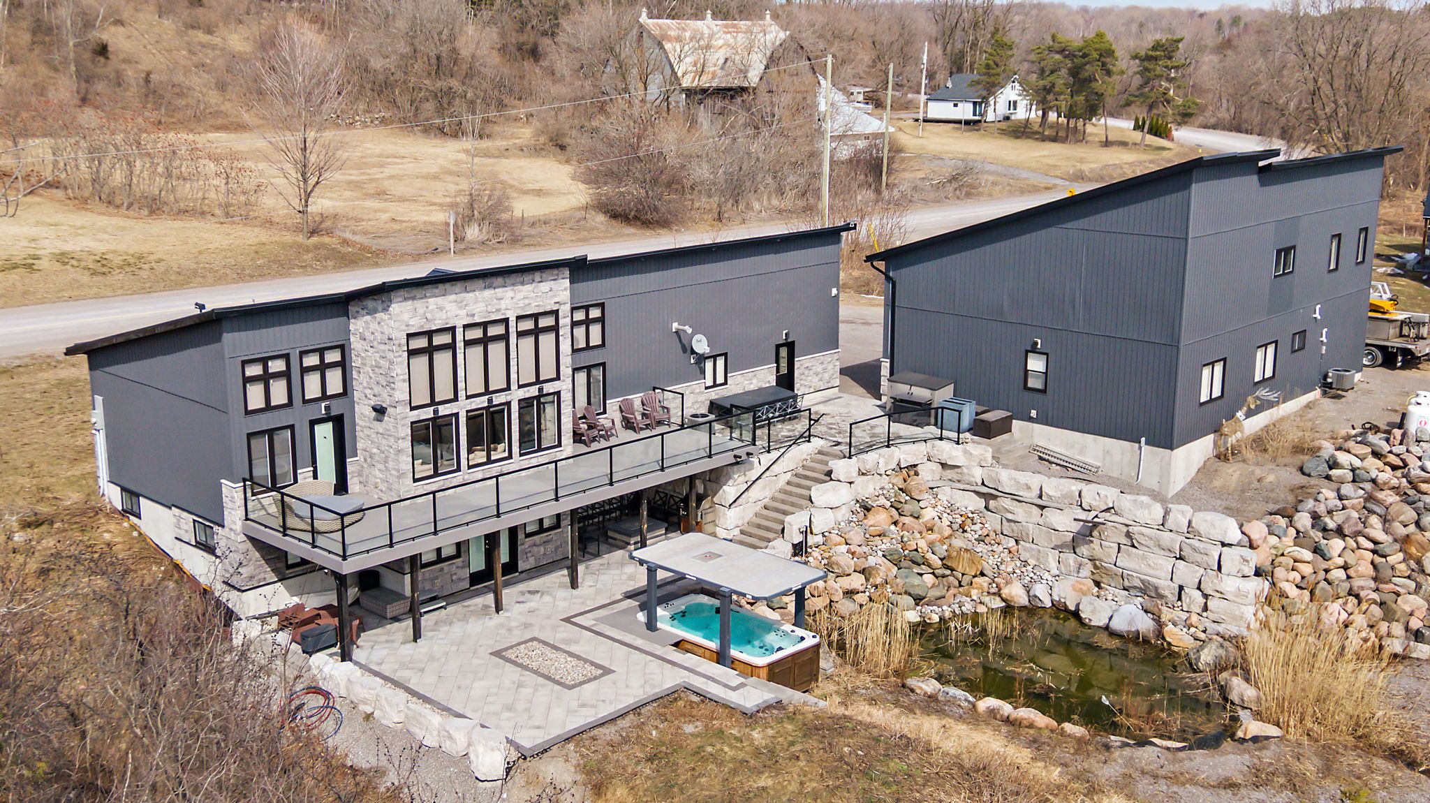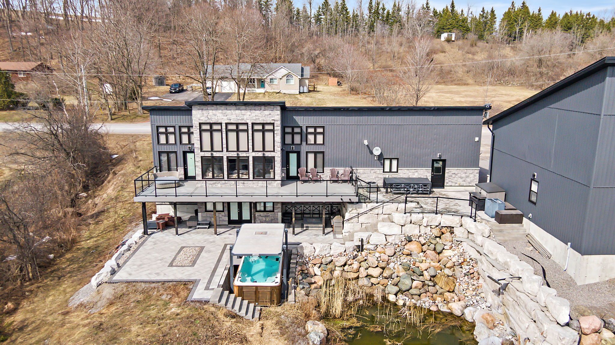 Welcome to your private escape just outside the charming hamlet of grafton: a newer 4-bed, 2-bath home set on nearly an acre, where modern finishes meet true country freedom. This home is built properly from the ground up. You've got 2" foam under all concrete floors (including both garages), spray foam insulation, and soundproofing in the basement ceiling. Add in an energy-efficient heat pump, durable metal roof, and full security camera system, and you're looking at comfort, efficiency, and peace of mind all in one. Inside, it's bright, open, and designed to feel good every day. A massive south-facing wall of windows floods the space with natural light, while hardwood floors, heated tile in every bathroom, and built-in speakers elevate the main living areas. There's also a walk-in closet, theatre room, and satellite wiring in every bedroom. The garage setup is next level. A fully finished, heated 2-car attached garage includes a built-in power washer. The separate 6-car, double deep 2-bay, two-storey detached garage has perfect room for a workshop, where things get serious - epoxy floors, pellet stove, renovated bonus living space and a bay large enough for a motorhome. Whether it's a home business, toys, or a future living space, you've got options here. Outside is where this property really stands out. A true backyard retreat featuring a spring-fed pond with a stone waterfall, trek deck system, outdoor roughed-in tv system, and extensive interlock landscaping. The space is built for entertaining with outdoor speakers, a propane fire feature, and plenty of room to relax or host. Set on 0. 88 acres, it's the perfect balance - private and spacious without the heavy upkeep. All just minutes to grafton, the 401, local shops, and trails. Rural feel. Modern comfort. Space to actually live. This one checks boxes most homes can't.