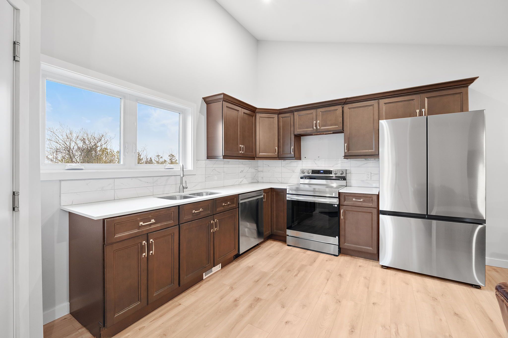 • Bright open layout with large south-facing windows and hardwood floors.