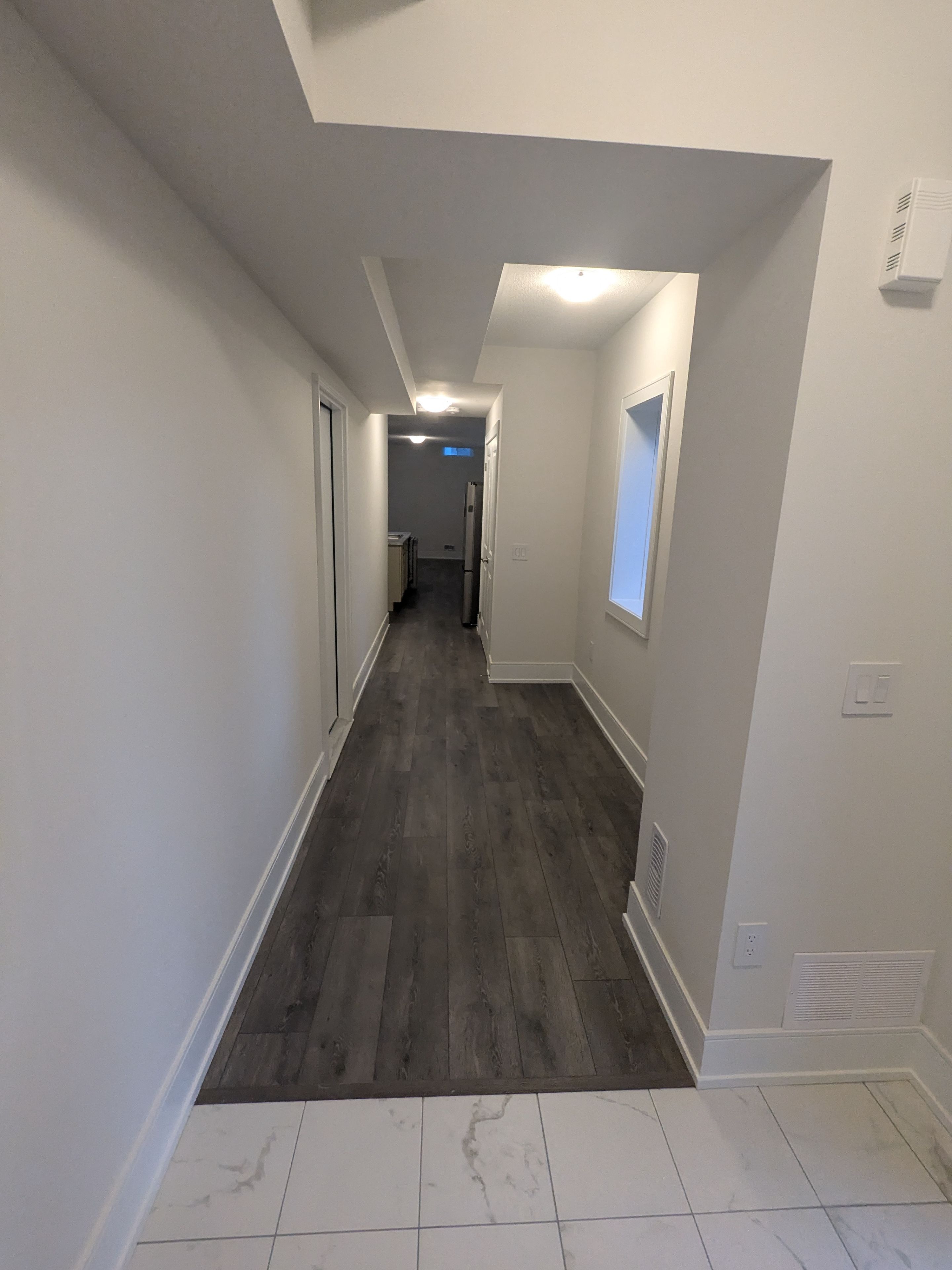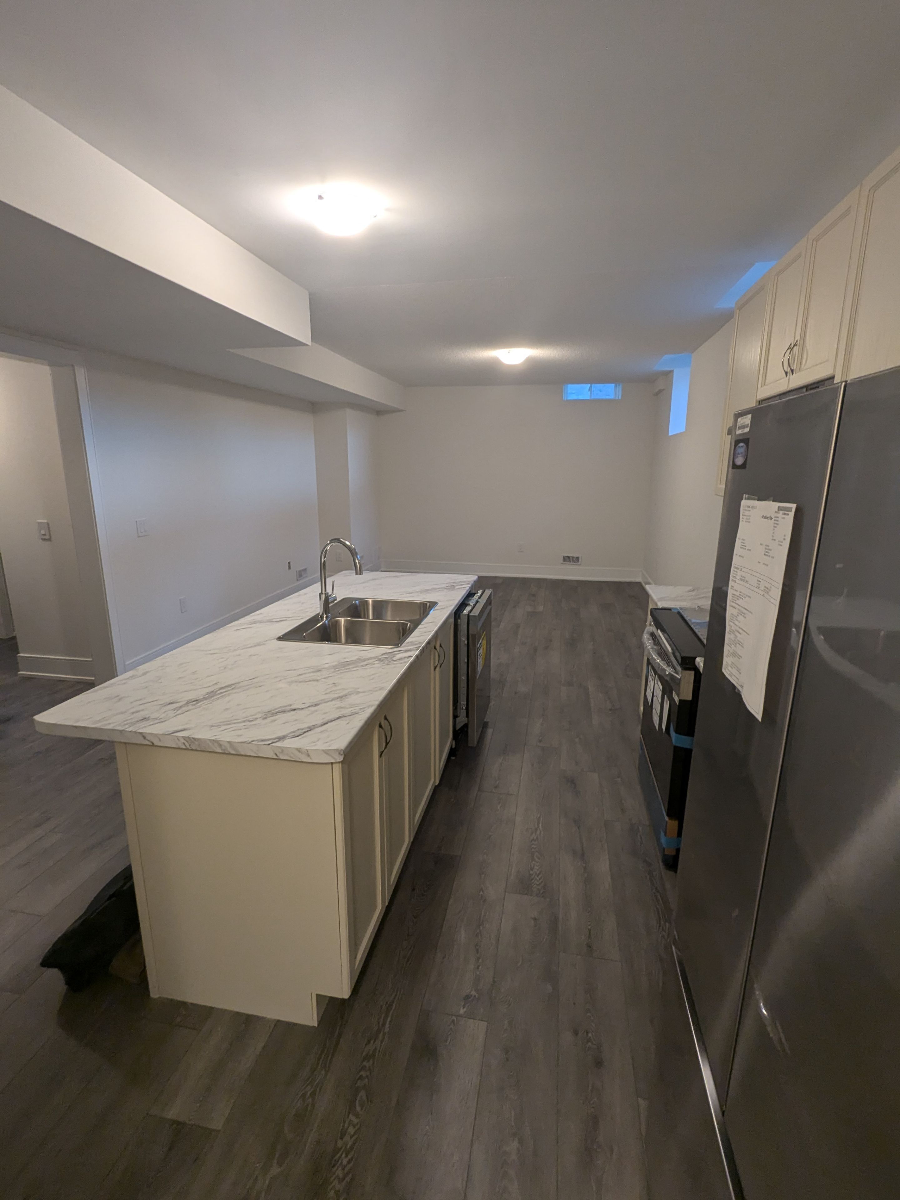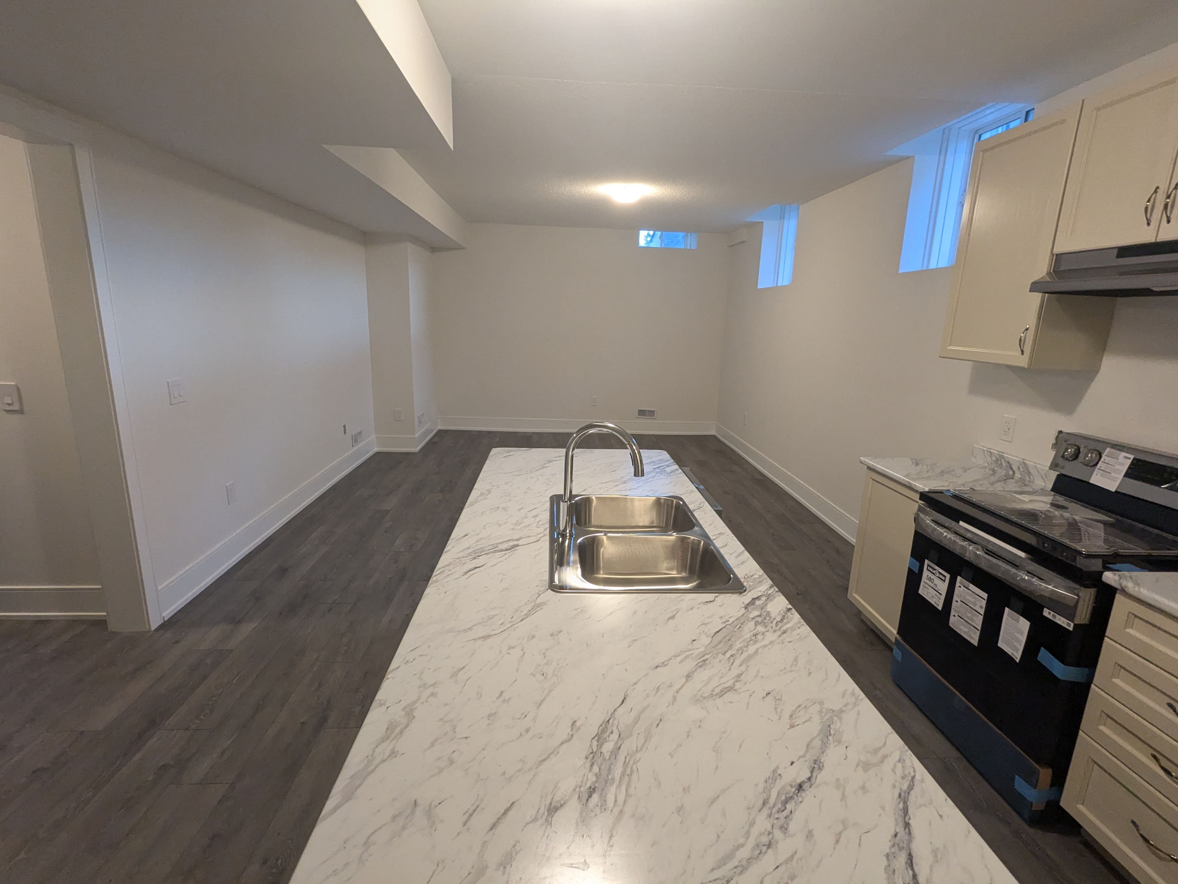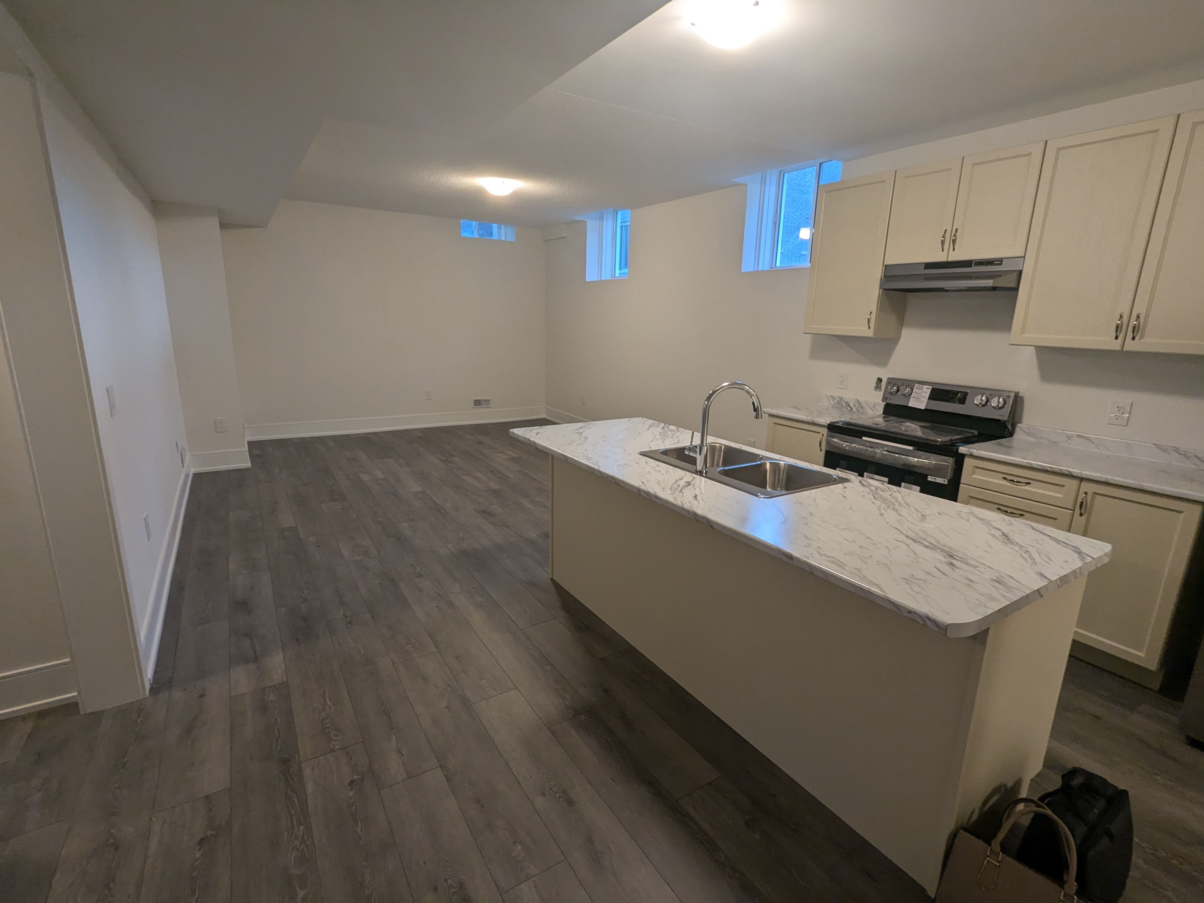 In the detached house - basement apartment with seperate entrance to the unit. 2 bedrooms and 2 washrooms. Large great room with open concept kitchen. Long foyer and the unit is 1,137 sqft as per floor plan. Stainless steel appliances, closets, windows, and laminate floors. Out outside parking available for small-medium car (no trucks)