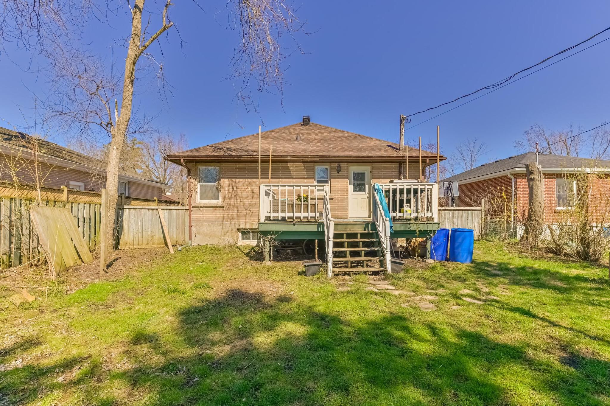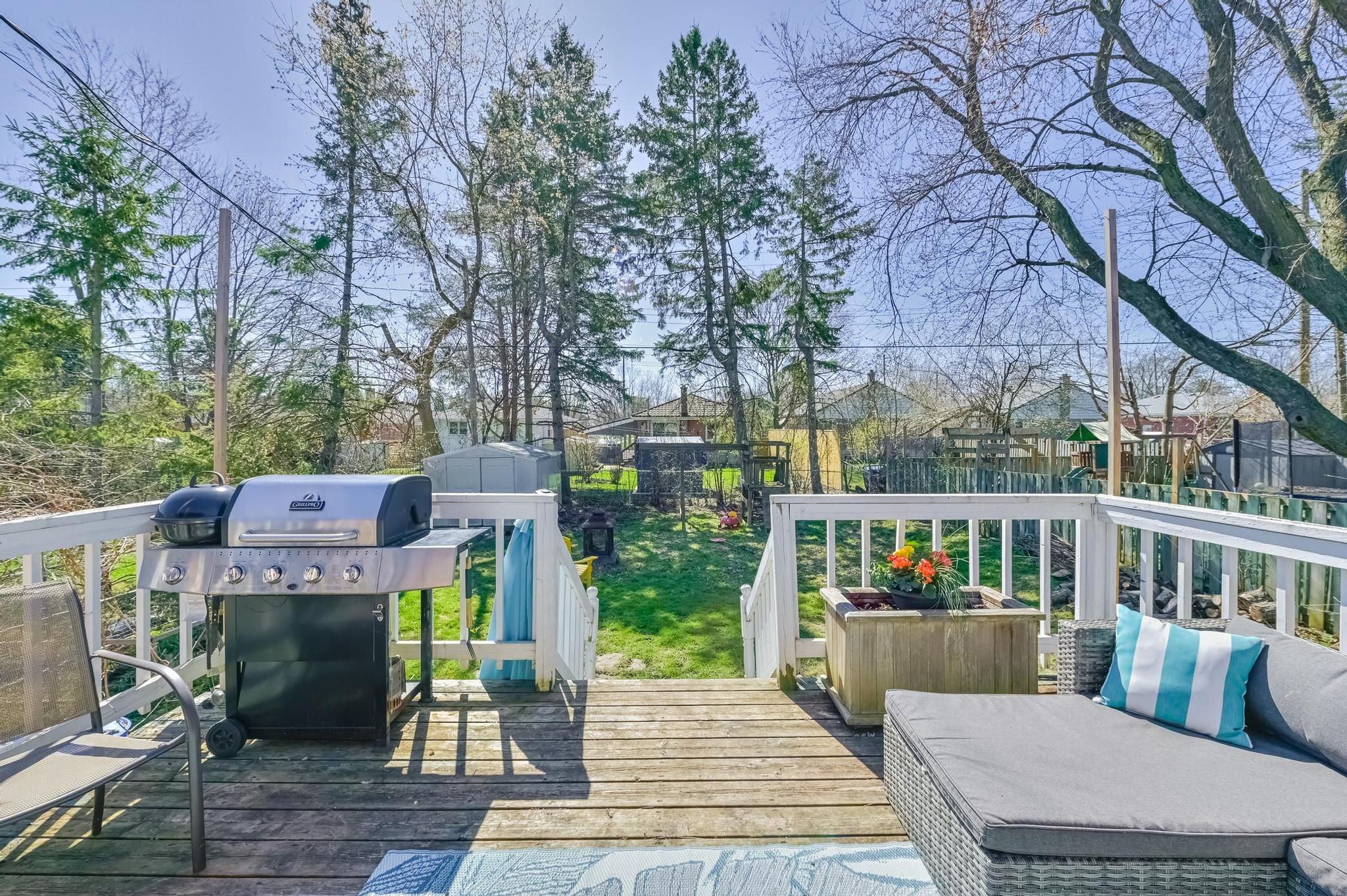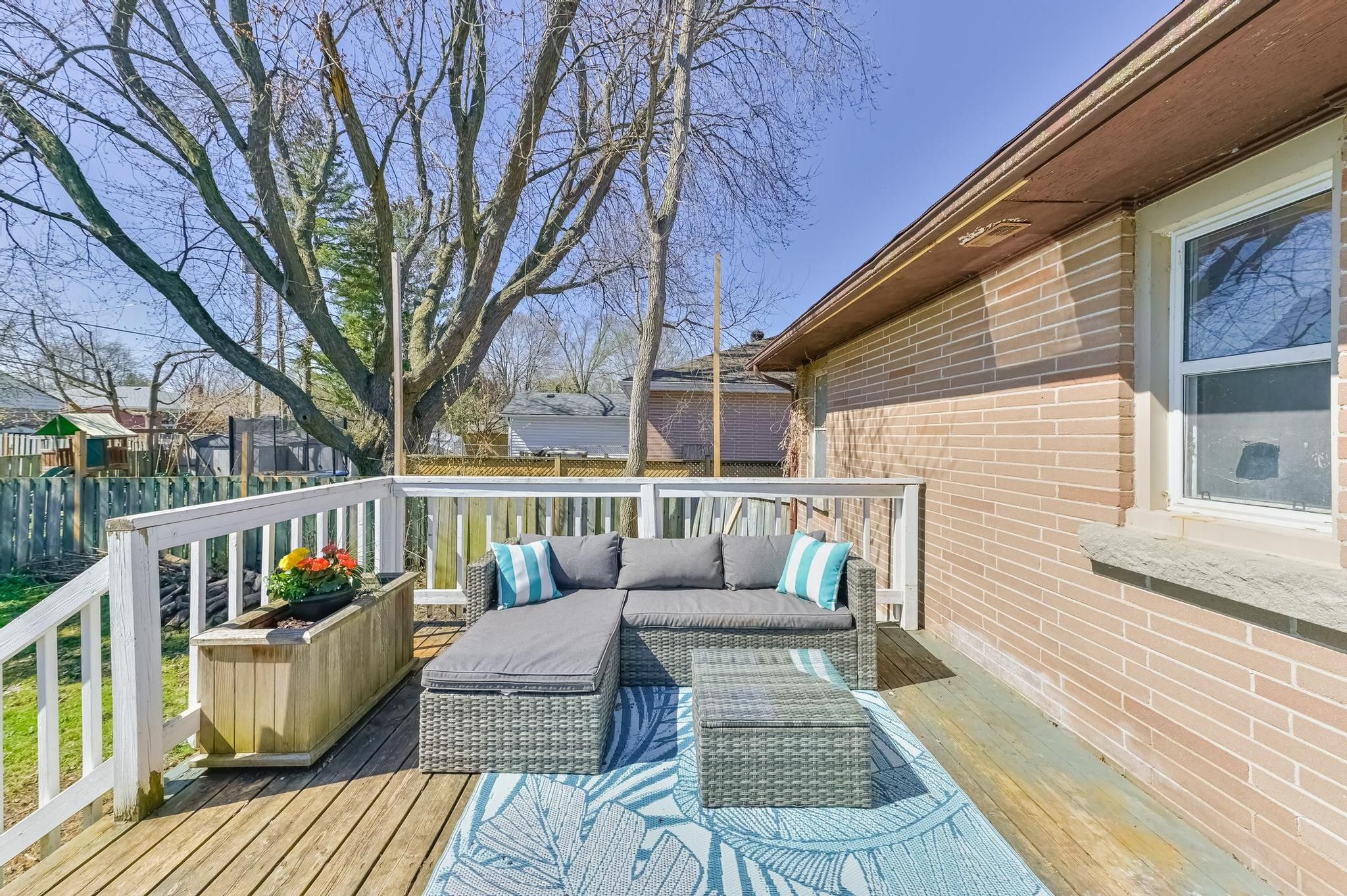 • Large fenced backyard with deck, perfect for family gatherings.