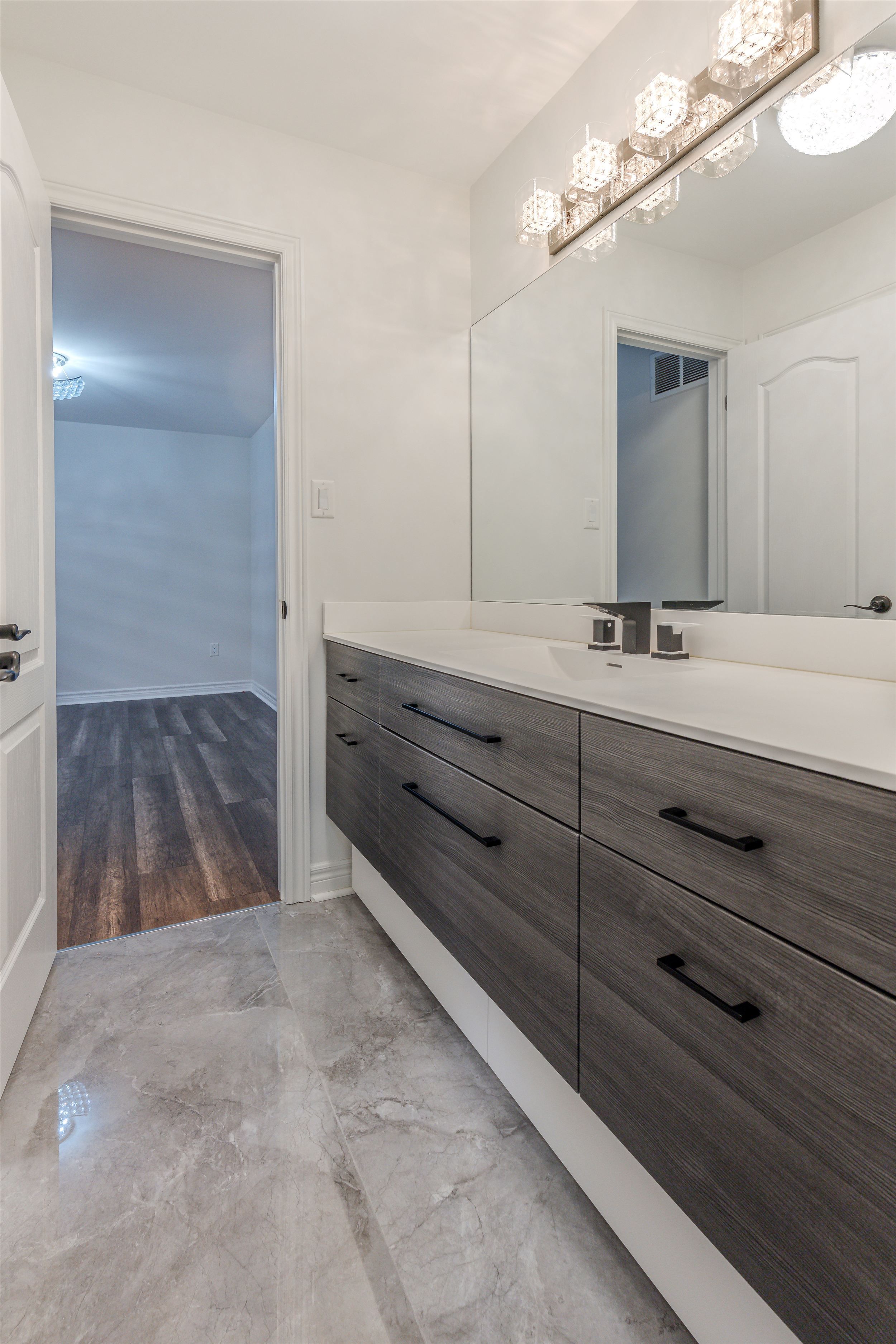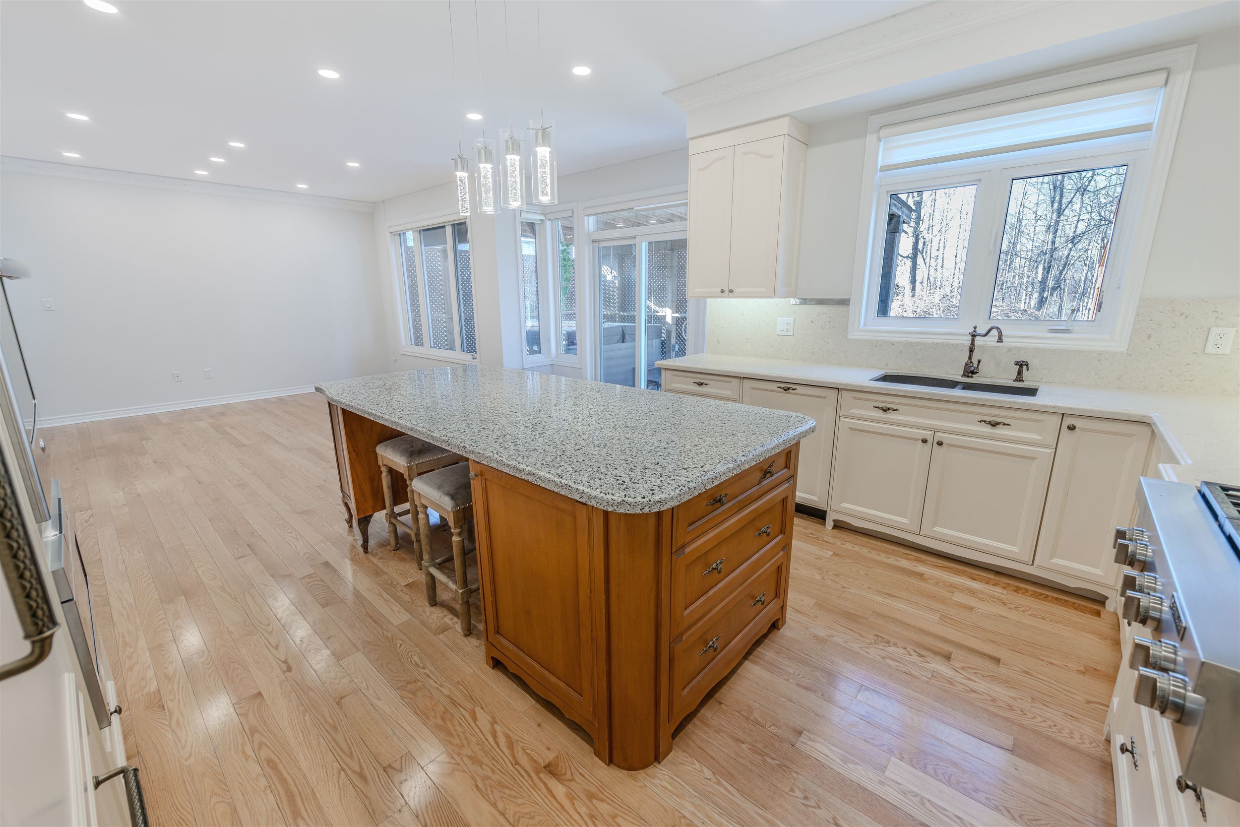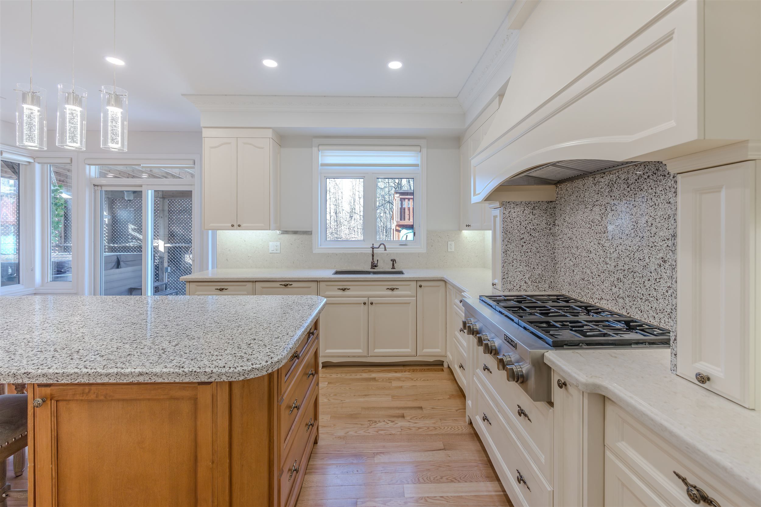 • Custom chef's kitchen with high-end appliances and quartz counters.