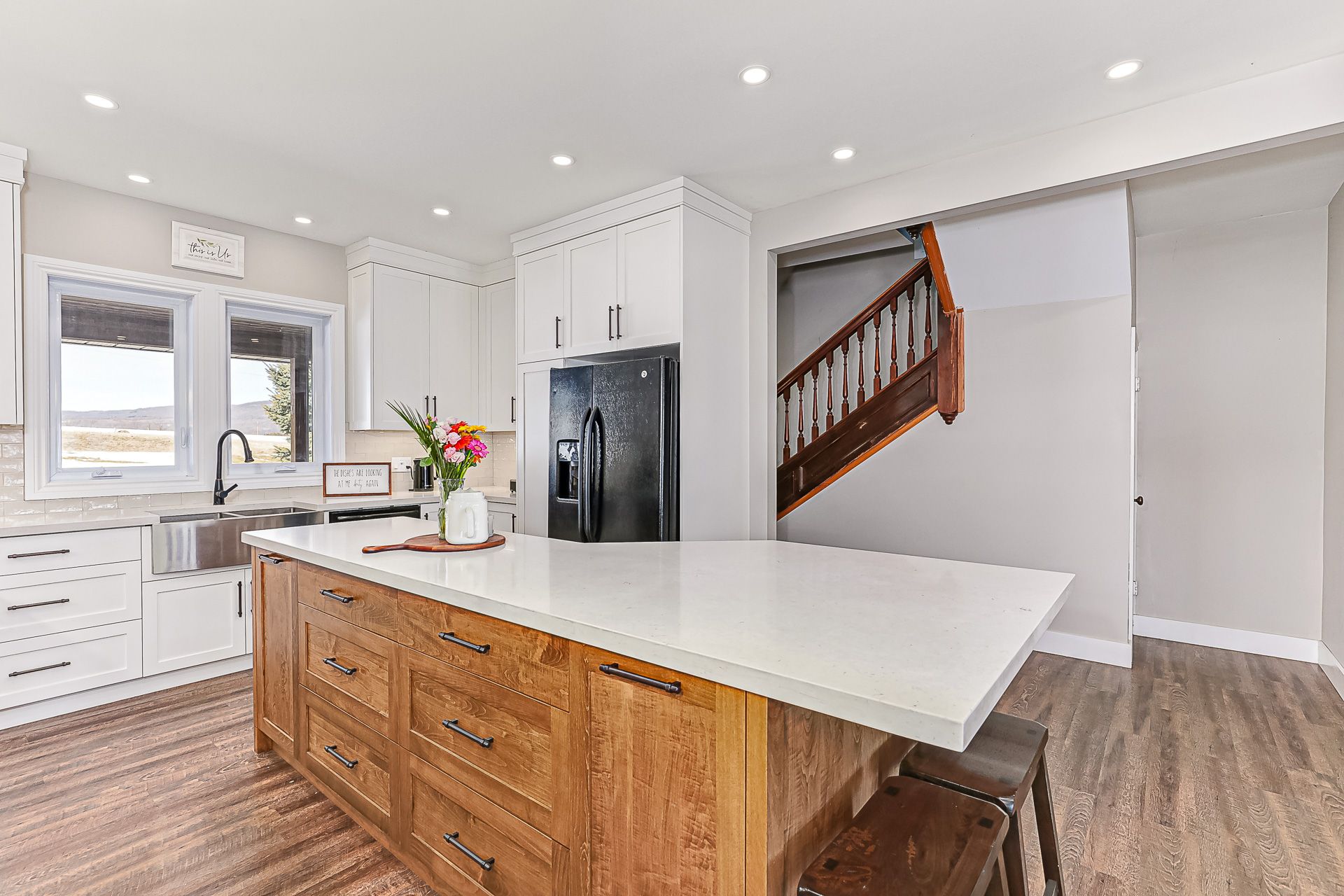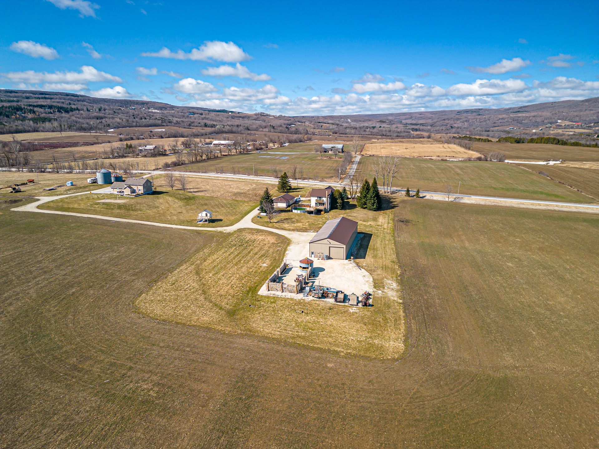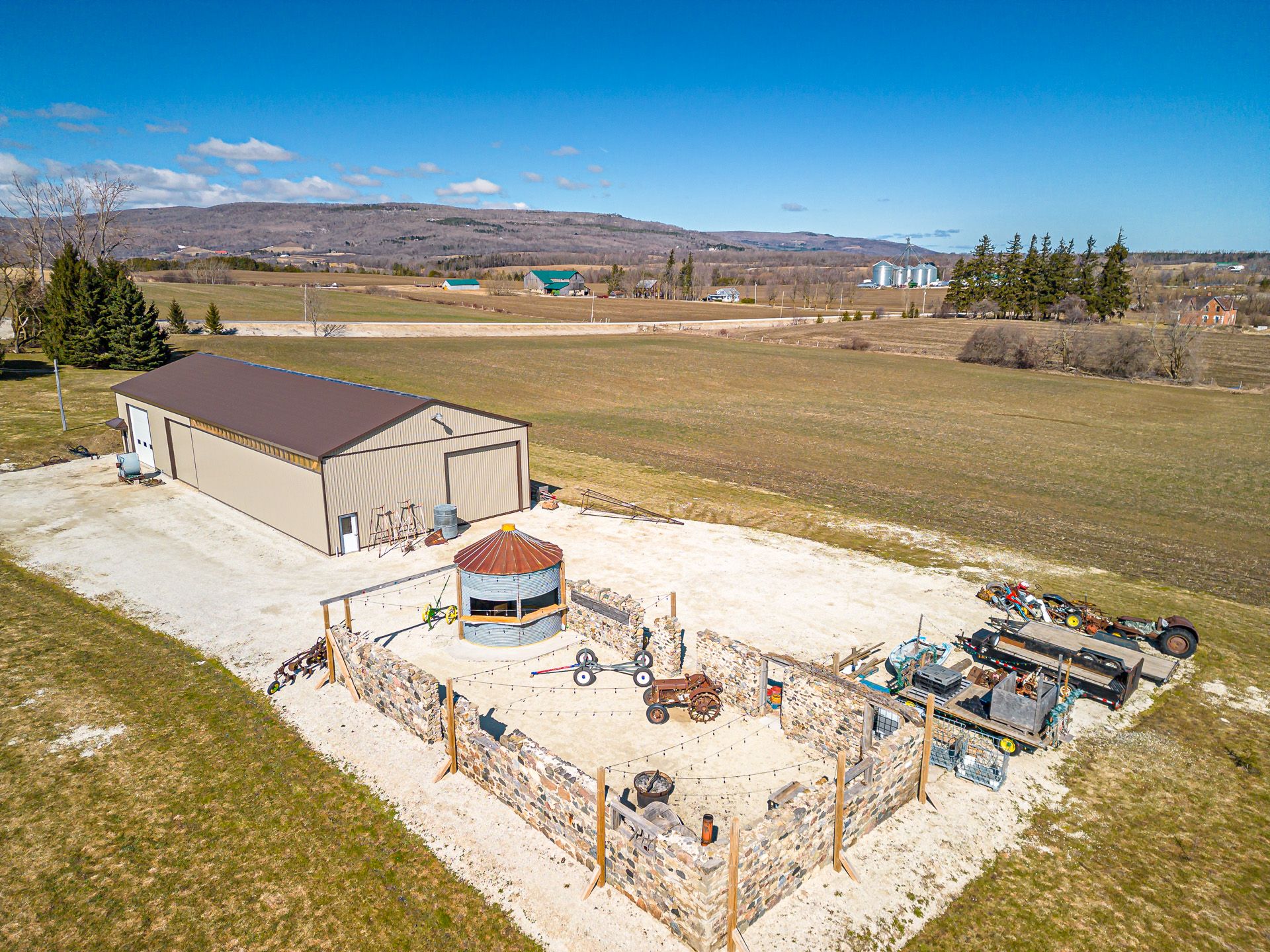 Discover the charm of country living with this 4 bedroom, 3. 5 bath, 3. 5 storey renovated farmhouse with 3000 square feet of stylish open concept living space. Nestled on 2. 68 acres this property offers a blend of modern comforts and rustic appeal. Walk-out from the living room to a large deck and patio area and soak in views of the bay and refreshing pool. The gorgeous batteaux creek custom kitchen (2021) features a huge island with a quartz countertop, ideal for family gatherings or entertaining! Experience the ultimate retreat in the massive primary bedroom, complete with a 6 piece ensuite bath (2016) and walk-in closet. Step out onto the private balcony and take in the breathtaking views of georgian bay! The finished bonus room in the attic is perfect for a kid's playroom, music or art studio. The freshly painted family room on the lower level features a cozy wood stove and includes a walk-out to the expansive rear yard. Full bath and sauna complete the lower living space. The 7 foot high unfinished basement area is ideal for storage. Enjoy a morning coffee on the charming wrap around veranda. Steel roof on house and garage, windows and exterior doors all replaced in 2018. The 26 x 26 detached, double car garage has an attached 14 x 23 propane-heated workshop area. The quality built 2018, 40 x 112 outbuilding consists of a 32 x 40 shop with a 16 foot ceiling and is roughed-in for in-floor heating. 14 x 16 foot insulated overhead and slider doors. Impressive 40 x 80 cold storage area complete with a storage mezzanine. Primary underground service, 50kva transformer, 200 amp service to the shop area and central metering. From hobbies to business ventures, the uses for this building are endless! The original barn foundation is transformed into an outdoor party area complete with a silo converted bar! This is a very unique and special property located just minutes to collingwood, blue mountain, private ski clubs and golf courses with a stunning million dollar view!