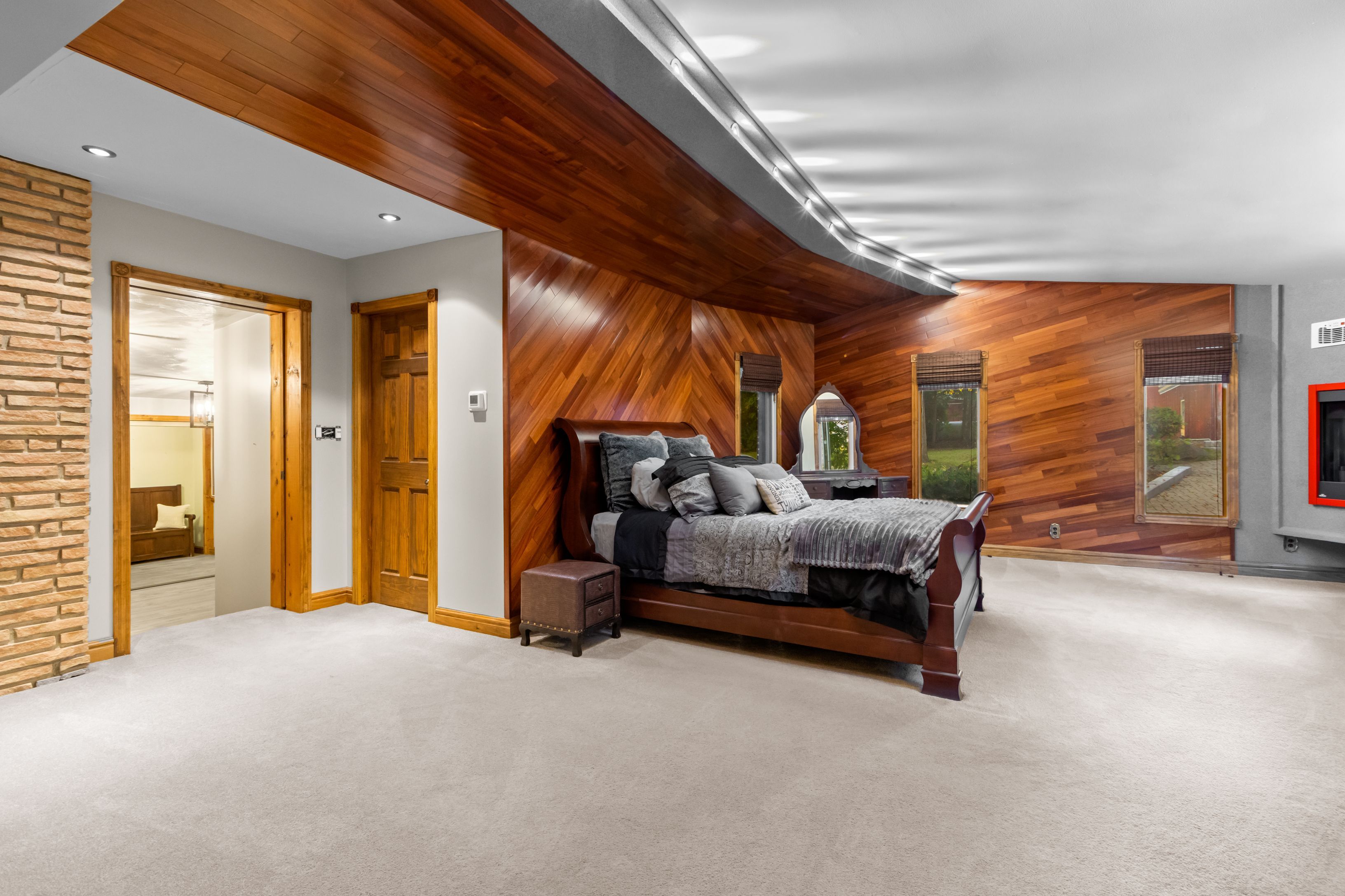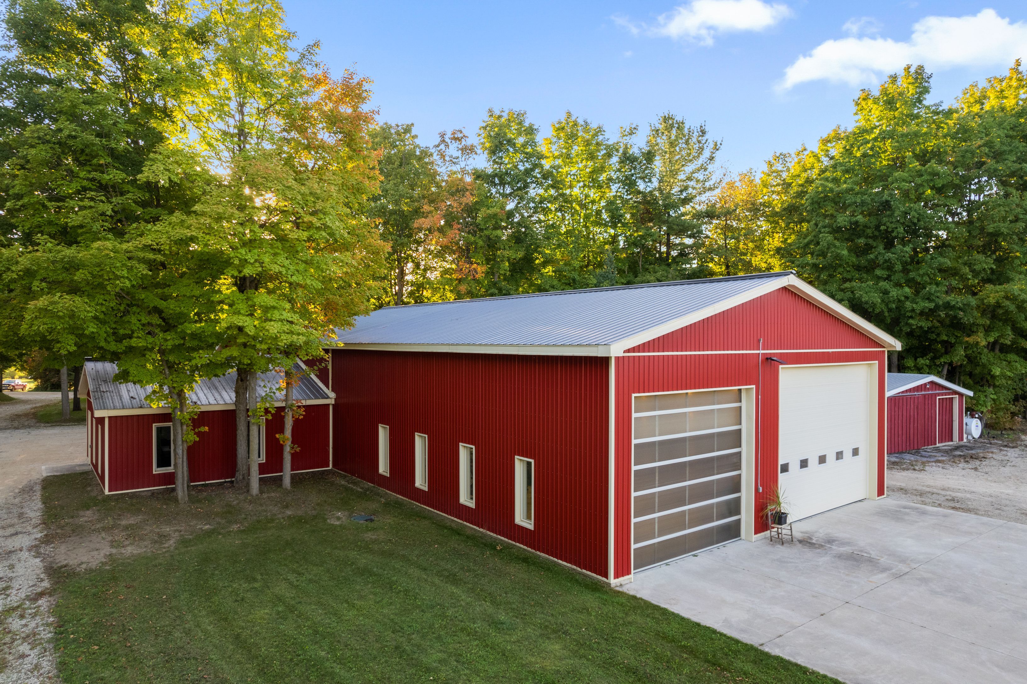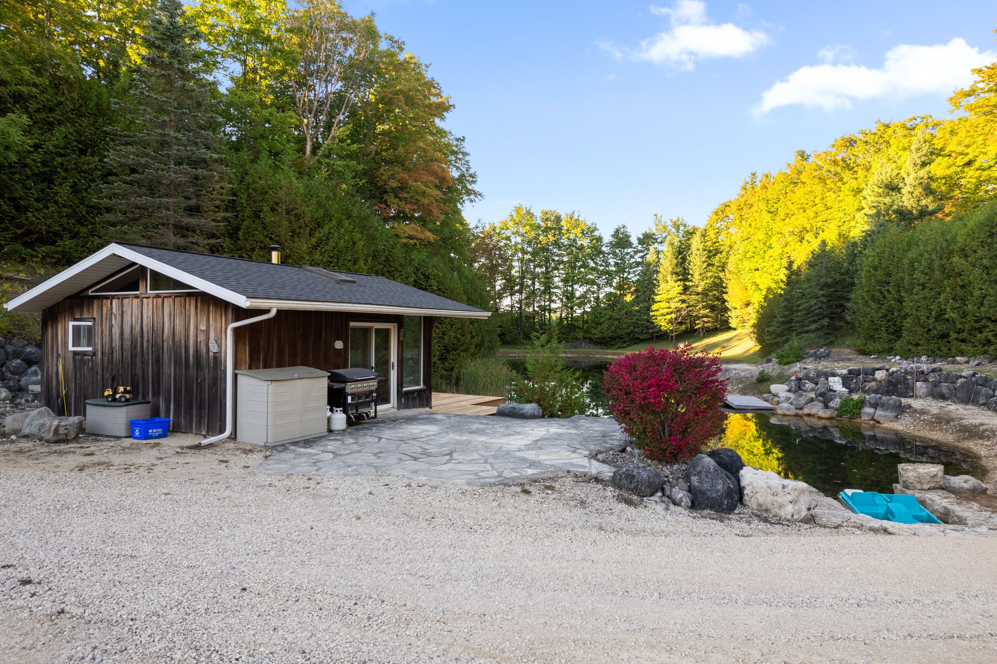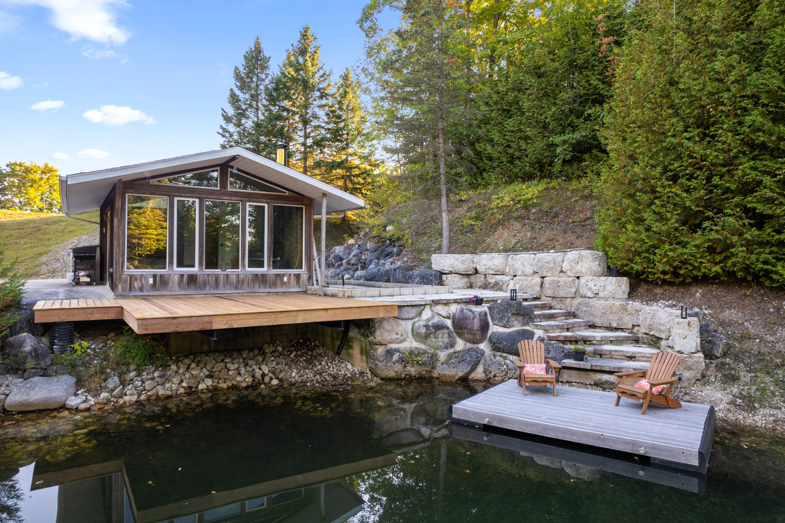 Set on 8. 9acres, this first time on market, one-of-a-kind property invites you to live, work, and play without compromise. Featuring a 4 bed, 2 bath 2800sqft home, 4784sqft commercial grade shop with offices, 850sqft outbuilding, & 320sqft cabin with bathroom overlooking the pond. With parking for over 20, this property is designed for convenience, gatherings, and the flexibility to expand your business. Step inside the imaculate mid century modern home and discover a space that balances warmth & function. Characterized by clean lines, open-concept layout, and a deep connection to nature through expansive windows and the integration of wood, stone, and brick accents. The foyer welcomes you, leading into a sun-filled, open-concept dining and kitchen area where custom cherry wood cabinetry, granite countertops, and built-in appliances combine elegance and practicality. Off the kitchen, a bright sunroom with heated floors and a wood stove frames stunning country views, the perfect spot for coffee at sunrise or a glass of wine at dusk. The living room, with its soaring 12ft ceilings and custom stone fireplace, leads to the primary suite, where 6 large windows overlook the landscaped yard. Upstairs, 3 bedrooms and a full bathroom with dual sinks offer plenty of space. The finished basement features a large rec room, custom cabinetry, laundry room, and a cold cellar. Just steps from the home is a 4,784sqft. Heated shop; complete with in-floor heat, 3 overhead doors, 3 offices, parts room, 2pc bathroom, plus a 1 bed, 1 bath apartment. The property also includes a smaller heated outbuilding/garage, and beside the spring fed pond is a cabin. Surrounded by towering trees, and complete privacy, this is made for bonfires, paddle boating, and summer barbecues. At night, relax by the woodstove as you watch the glow of a private waterfall. This property isn't just a home, it's a lifestyle. A private country sanctuary where your business, family, and leisure can thrive together.