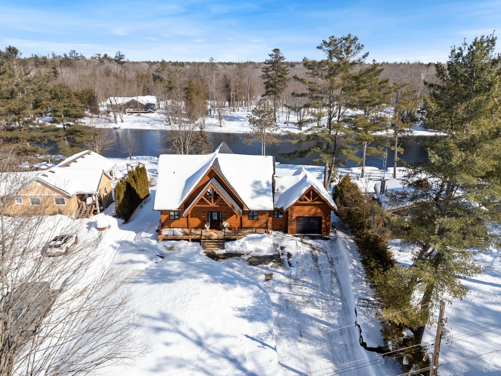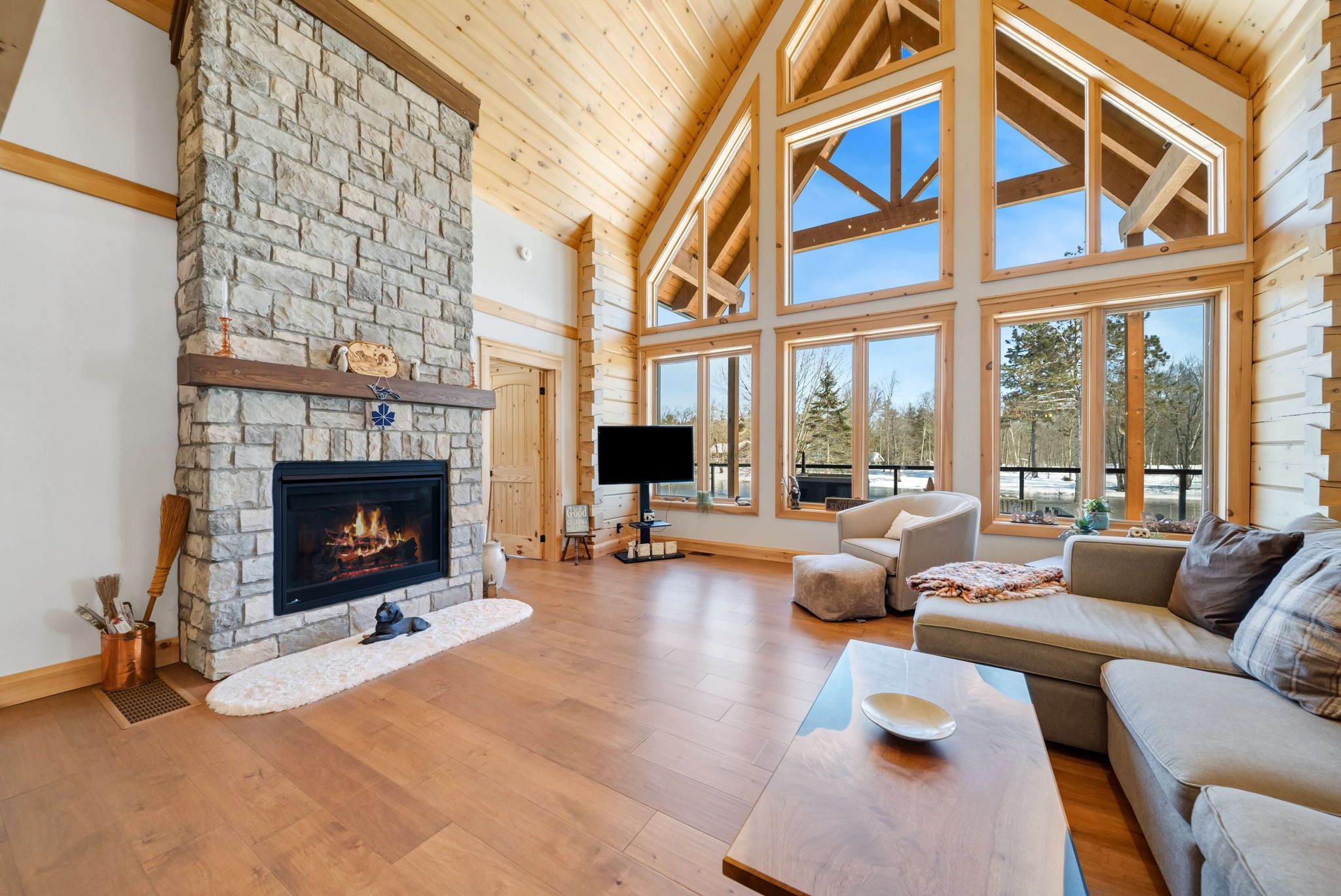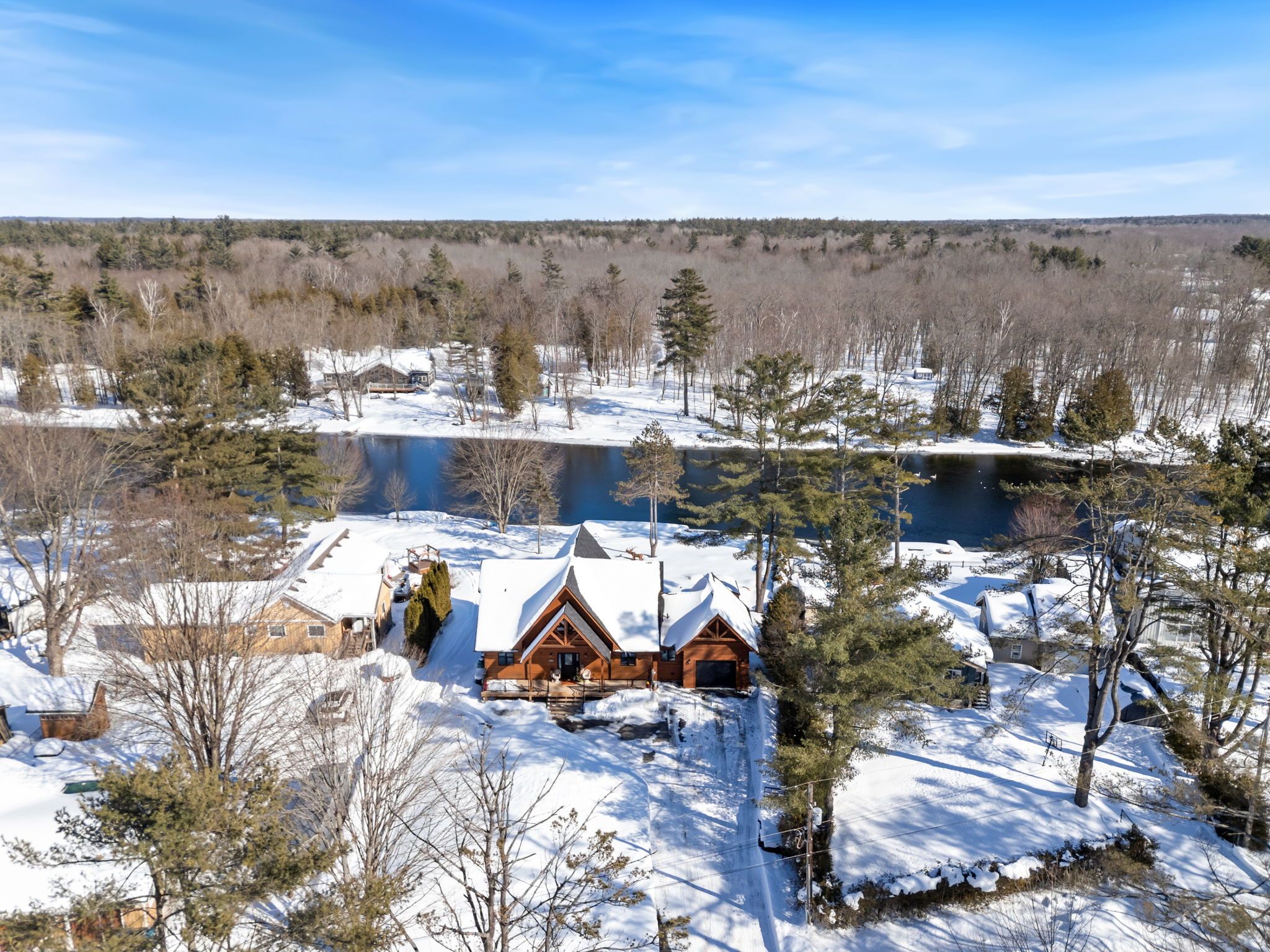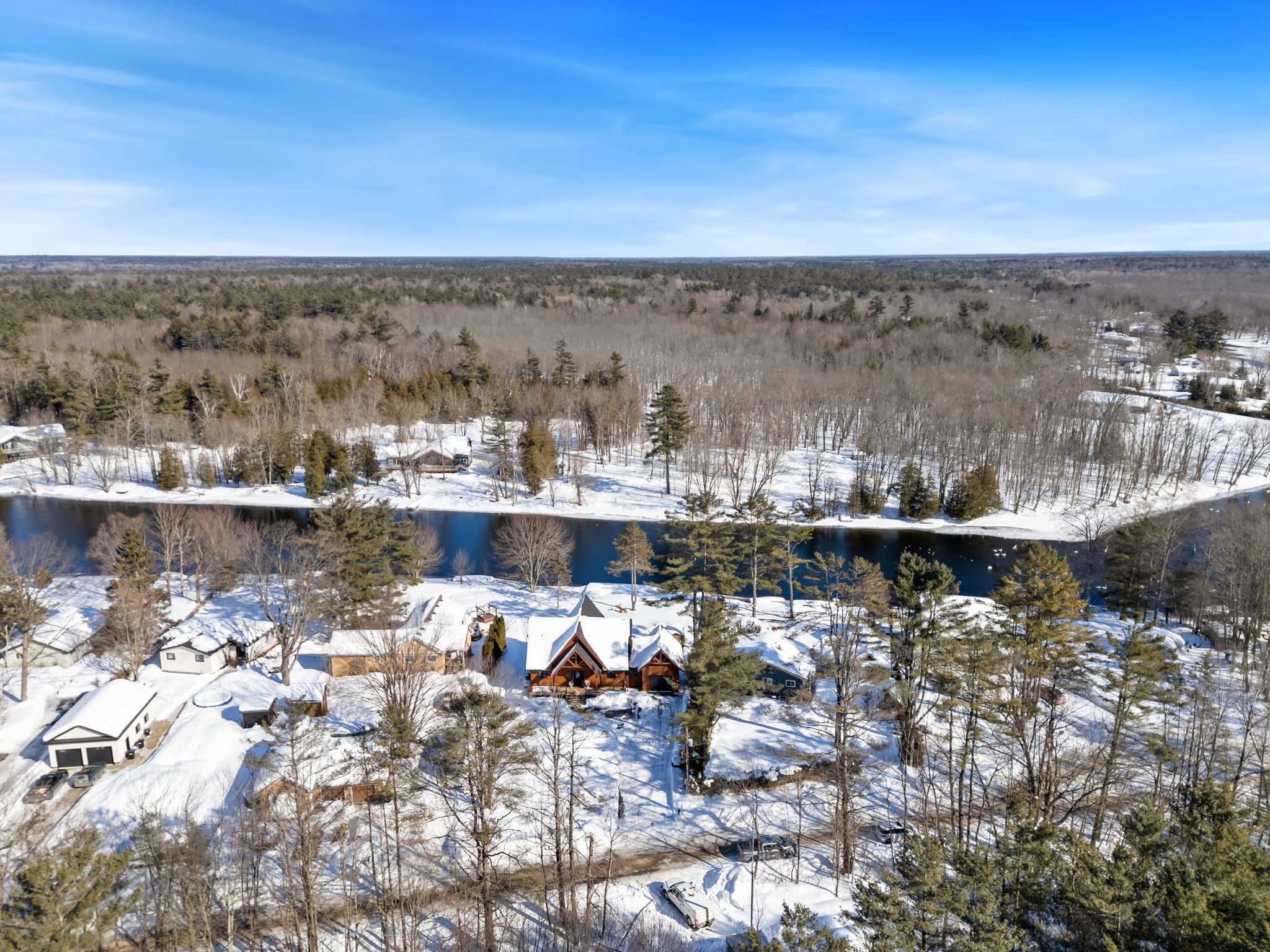 Set along 103 feet of open waterfront on mcleod drive in severn, this custom built solid log residence offers a rare blend of craftsmanship, scale, and natural setting. The moment you step inside, the architecture makes an impression. Soaring ceilings, an open concept living and kitchen area filled with natural light, and expansive windows frame beautiful river views from many of the principal rooms. It is a home designed not just for living, but for enjoying its surroundings. The kitchen and family room connect seamlessly, creating a comfortable space suited to both entertaining and quiet evenings at home. Patio doors open to a riverside porch where the outdoors becomes a natural extension of the living space. A main floor bedroom with a private ensuite offers excellent flexibility for guests or multi generational living. Above, the open loft style primary suite provides a peaceful retreat with large his & her custom walk in closets and a well appointed spa like ensuite. The loft design maintains a connection to the open living space below while still offering privacy. The fully finished walkout lower level adds even more living space with a large recreation room, two additional bedrooms, and a 3 piece bathroom, providing comfortable accommodation for family and guests. Step outside from the walkout and unwind in the hot tub, perfectly positioned to take in the river setting year round. With 103 feet of frontage on the severn river and a solid log home designed for lasting quality, this property offers an exceptional waterfront lifestyle 15 minutes from orillia and its amenities while still feeling comfortably removed from the pace of town.