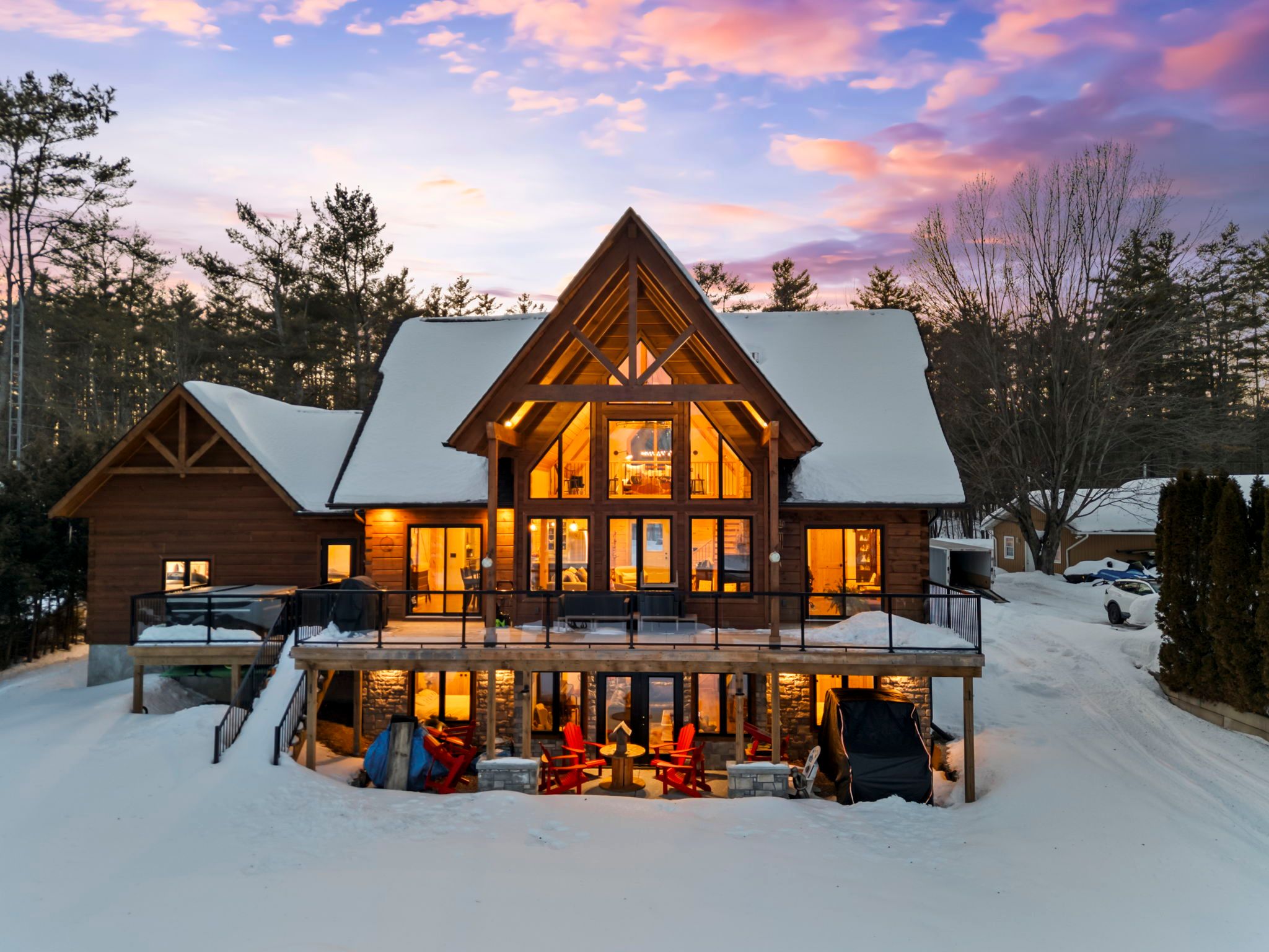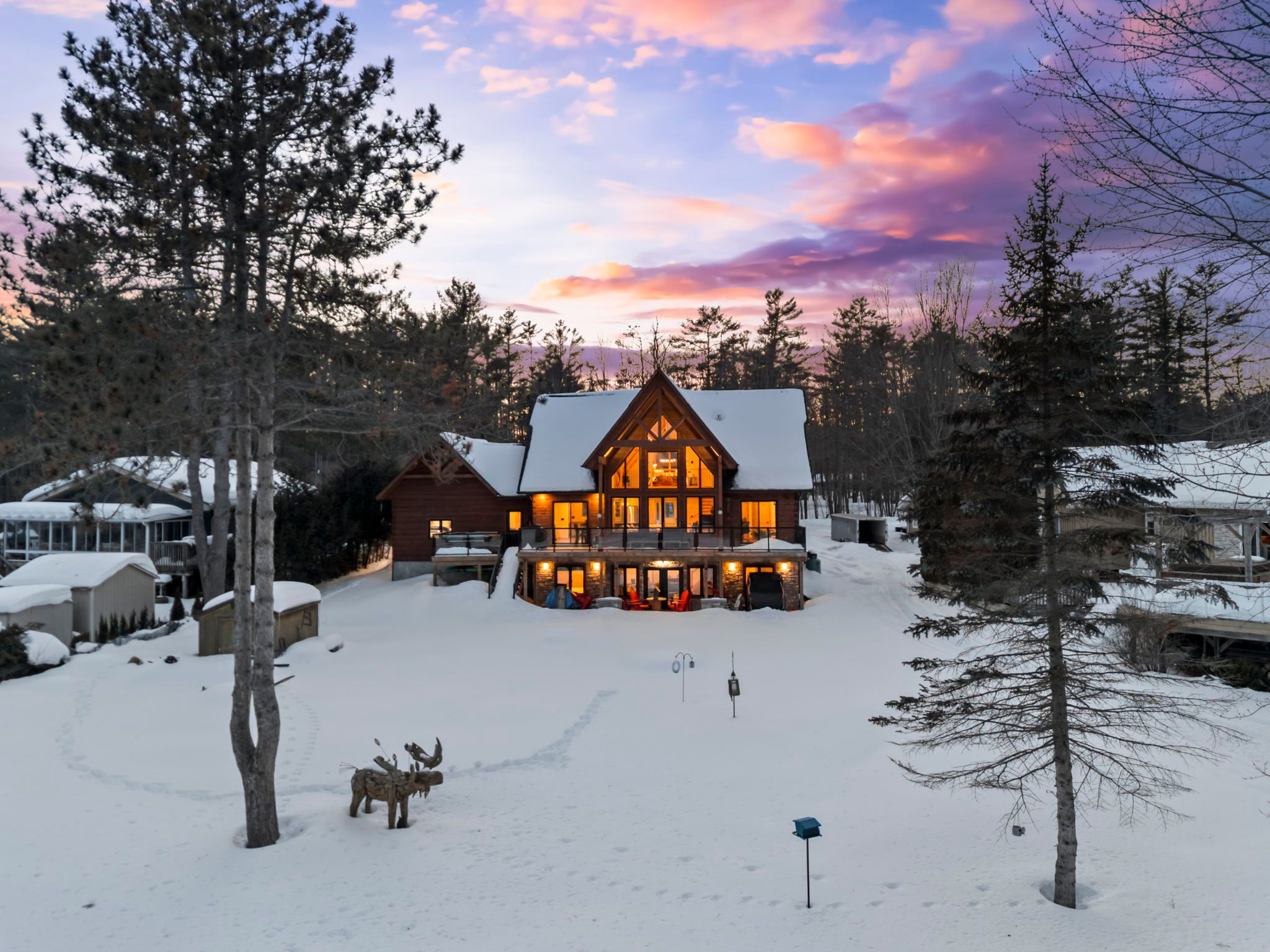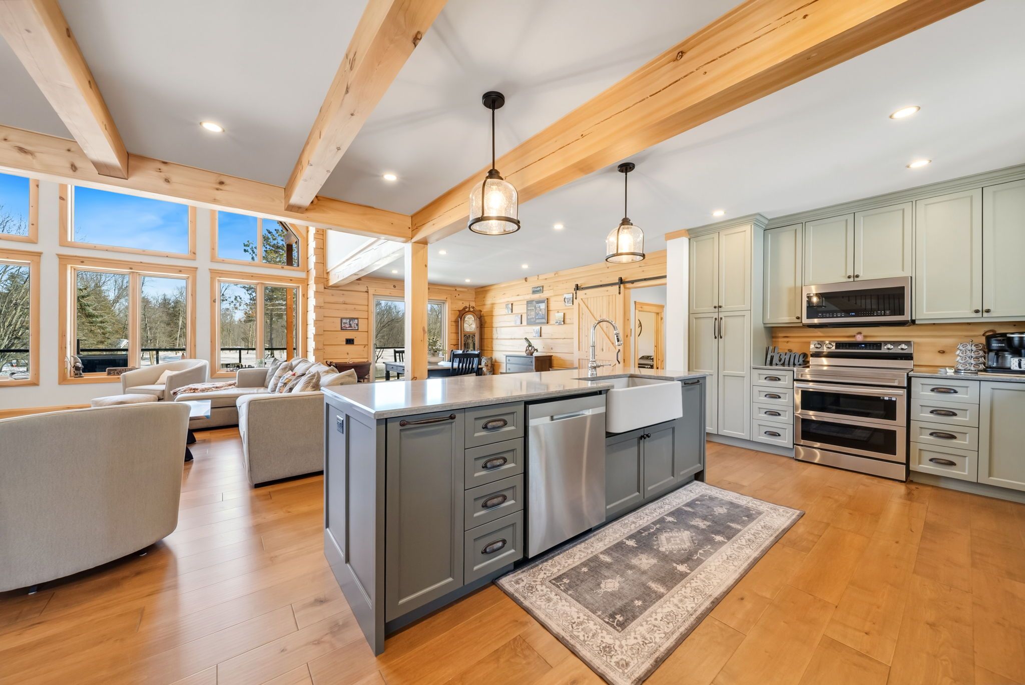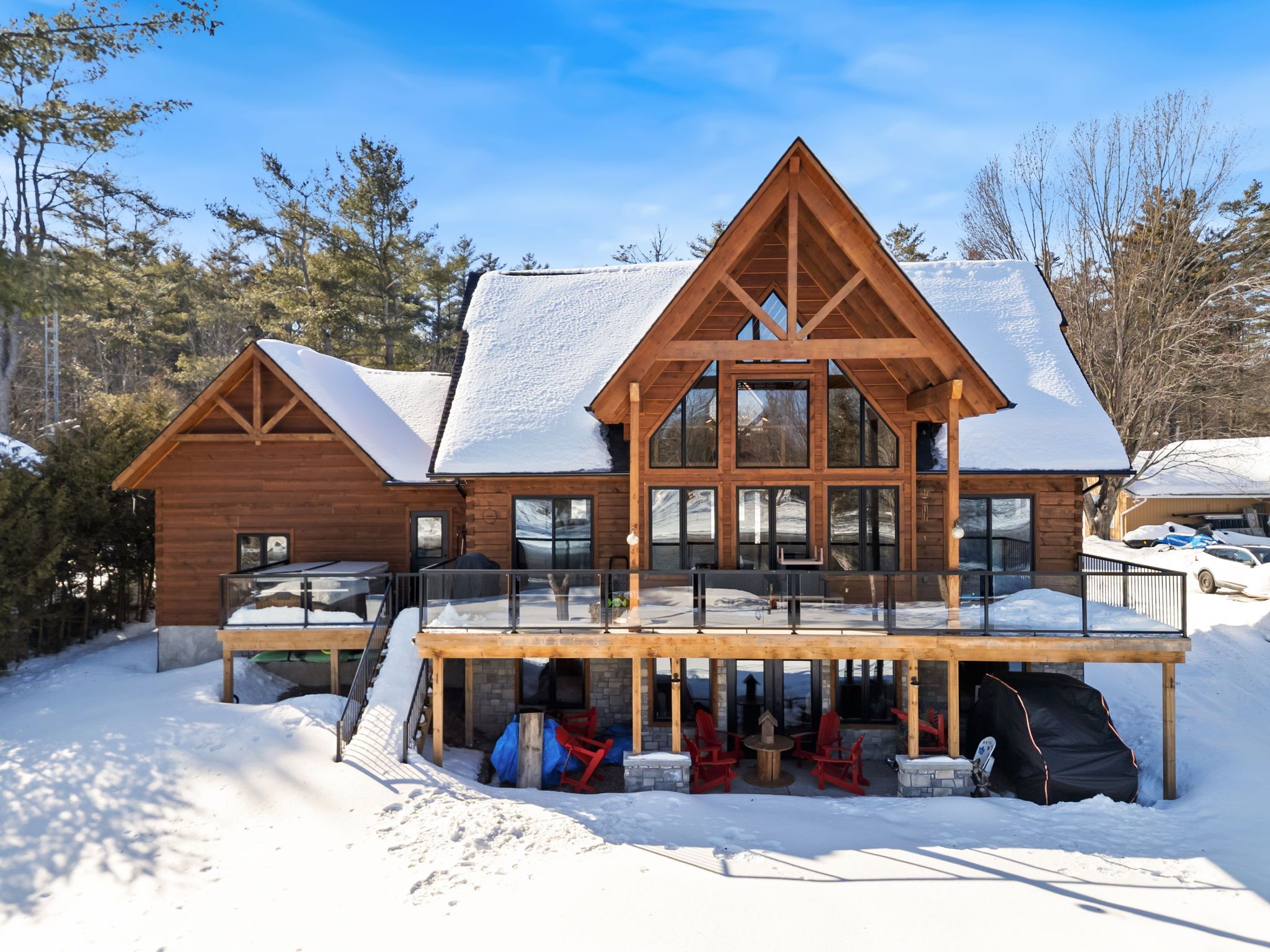 Set along 103 feet of open waterfront on mcleod drive in severn, this custom built solid log residence offers a rare blend of craftsmanship, scale, and natural setting. The moment you step inside, the architecture makes an impression. Soaring ceilings, an open concept living and kitchen area filled with natural light, and expansive windows frame beautiful river views from many of the principal rooms. It is a home designed not just for living, but for enjoying its surroundings. The kitchen and family room connect seamlessly, creating a comfortable space suited to both entertaining and quiet evenings at home. Patio doors open to a riverside porch where the outdoors becomes a natural extension of the living space. A main floor bedroom with a private ensuite offers excellent flexibility for guests or multi generational living. Above, the open loft style primary suite provides a peaceful retreat with large his & her custom walk in closets and a well appointed spa like ensuite. The loft design maintains a connection to the open living space below while still offering privacy. The fully finished walkout lower level adds even more living space with a large recreation room, two additional bedrooms, and a 3 piece bathroom, providing comfortable accommodation for family and guests. Step outside from the walkout and unwind in the hot tub, perfectly positioned to take in the river setting year round. With 103 feet of frontage on the severn river and a solid log home designed for lasting quality, this property offers an exceptional waterfront lifestyle 15 minutes from orillia and its amenities while still feeling comfortably removed from the pace of town.