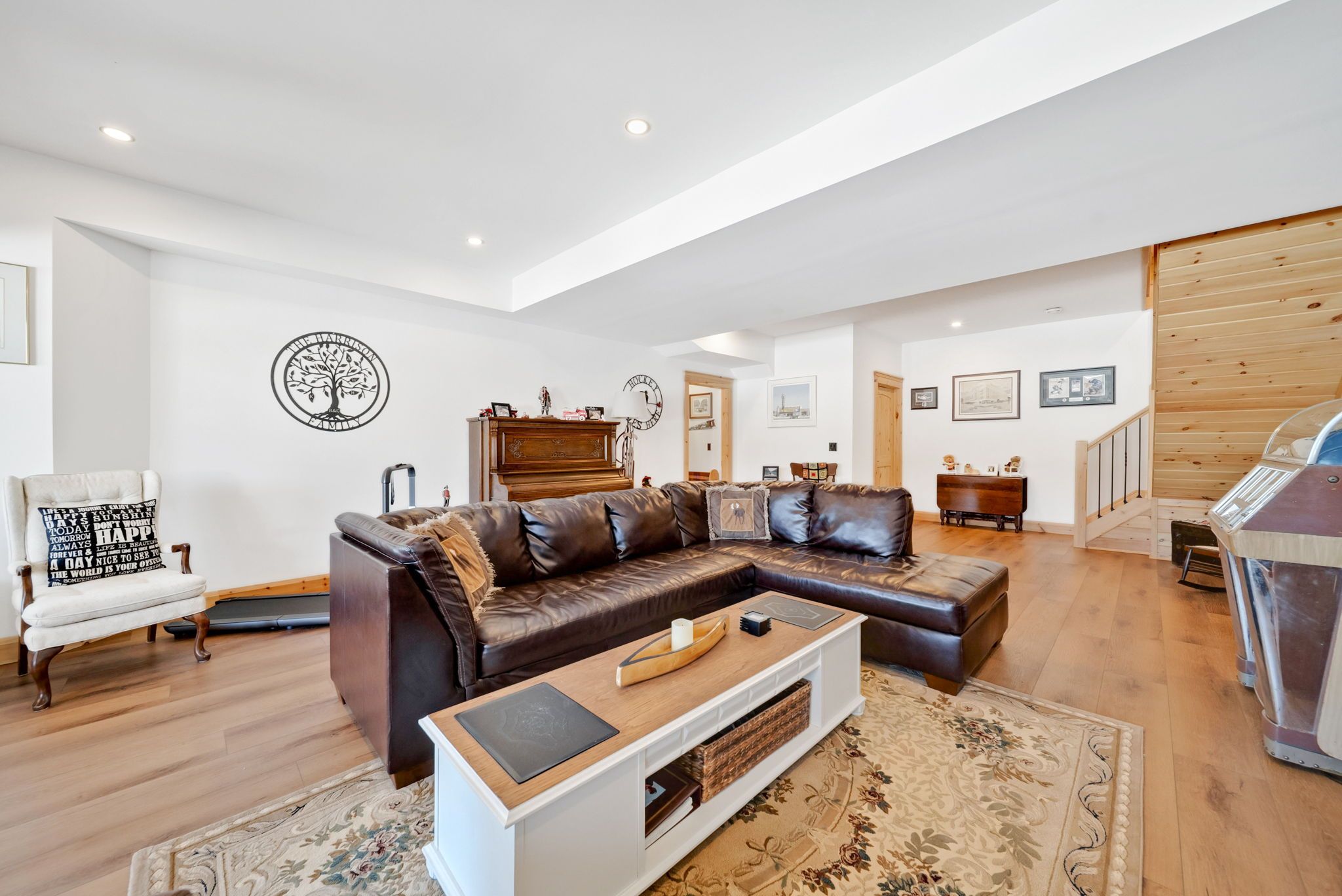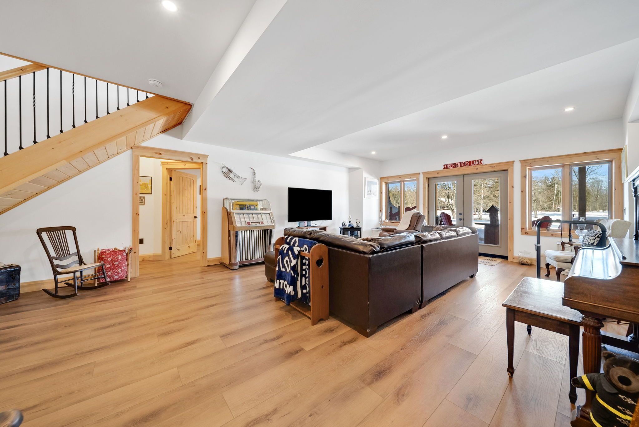 • Finished walkout lower level with recreation room and hot tub access.