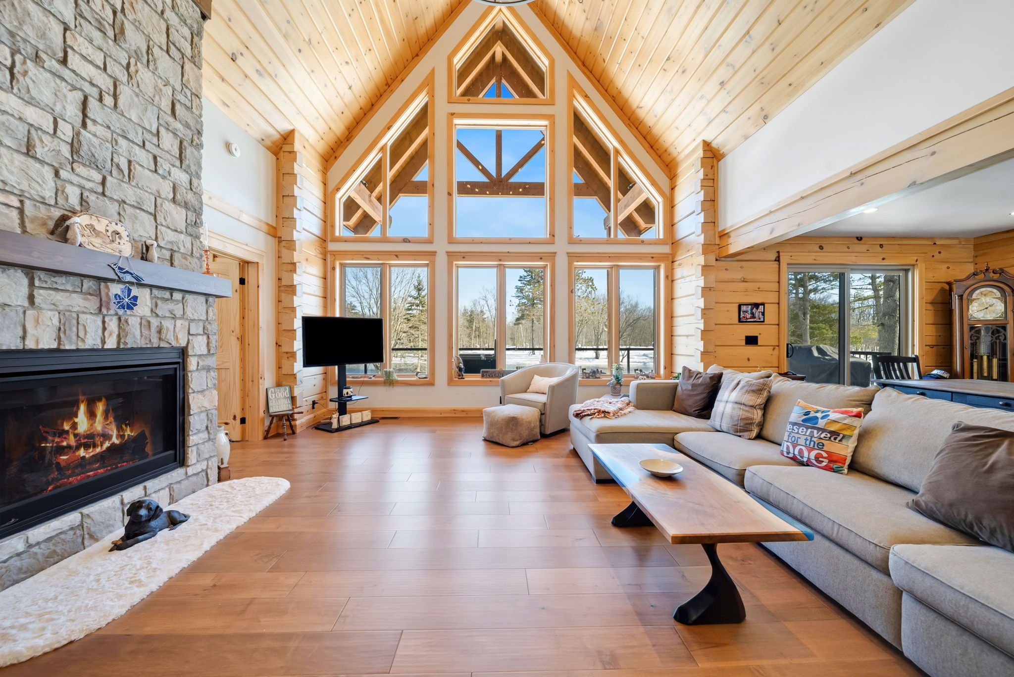 • Custom built log home with 103 feet of waterfront on Severn River.