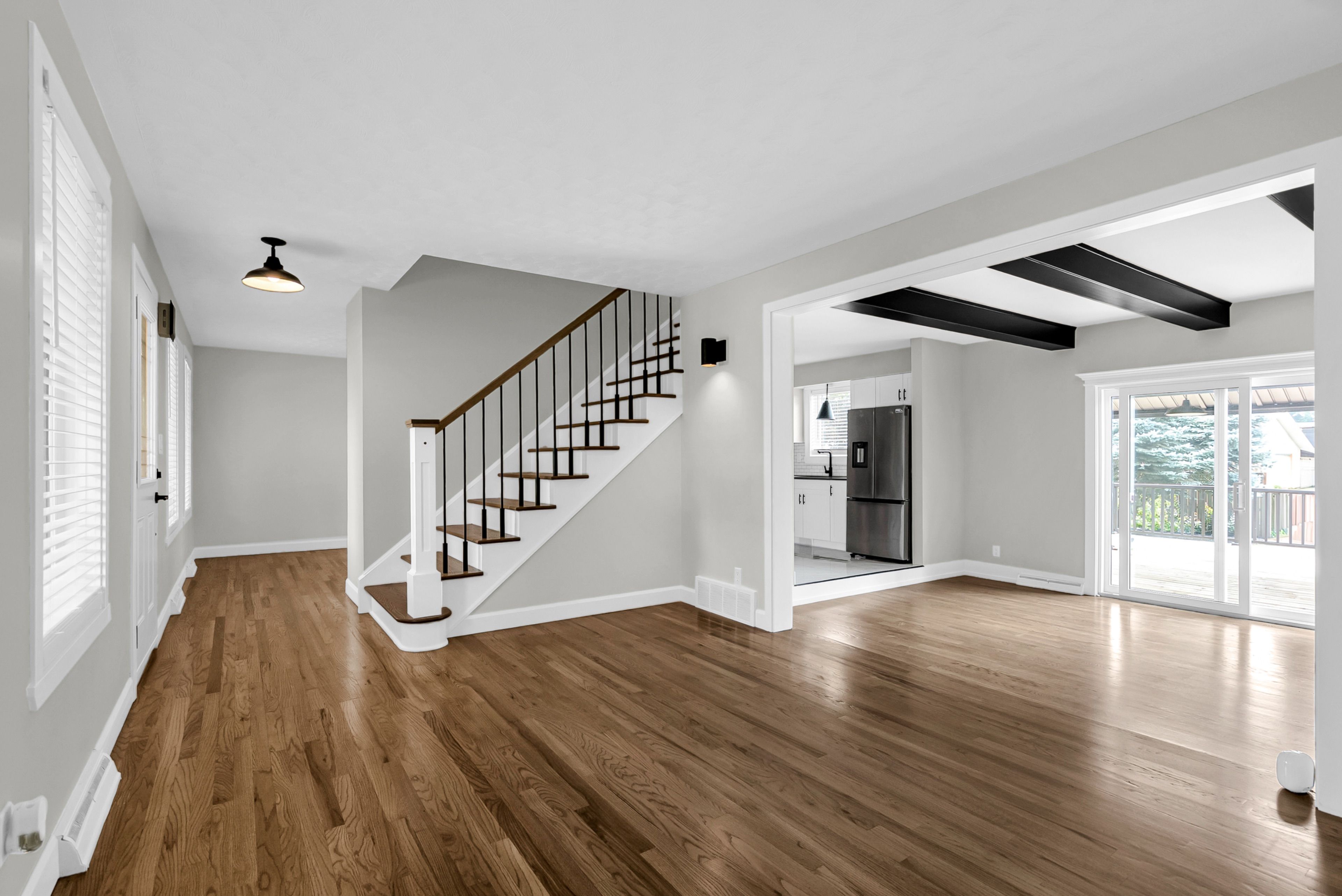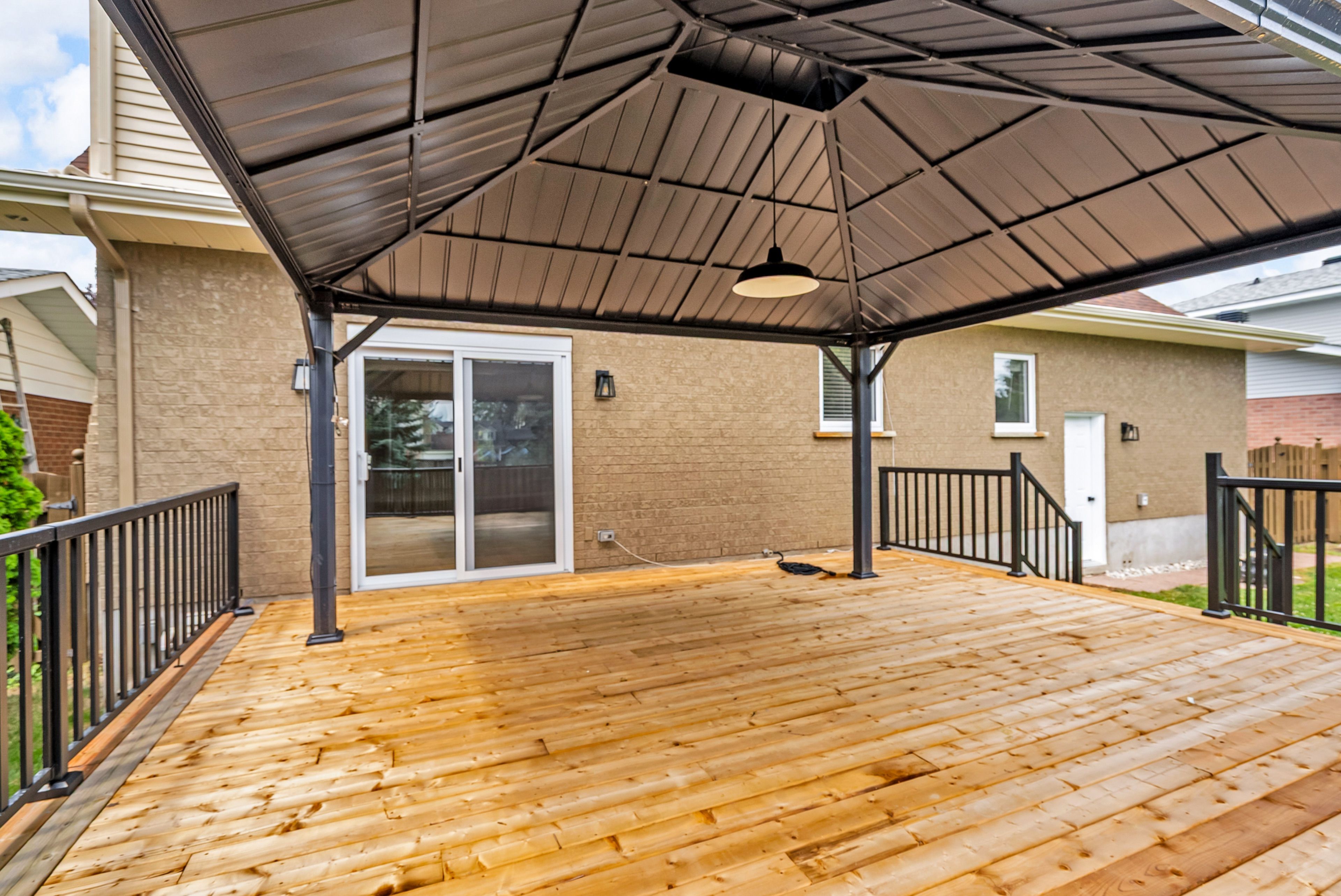 Welcome to this beautifully renovated home in the highly sought-after sunrise acres neighbourhood. Perfectly designed for family living, this stylish and functional property features three bedrooms on the upper level and a fully updated bathroom complete with double sinks, a tub/shower combo, and convenient upstairs laundry. On the main floor, you'll find a spacious living room with a cozy natural gas fireplace, a separate dining area, and a brand-new two-piece bathroom. The renovated kitchen is a true showstopper, showcasing white shaker cabinetry, quartz countertops, a subway tile backsplash, pendant lighting, and stainless steel appliances, including a wi-fi-enabled fridge, induction stove, microwave, built-in dishwasher, and high-efficiency washer and dryer. The attached garage is epoxy-finished and equipped with a bar fridge, workbench, interior home access, and direct entry to the fully fenced backyard-a perfect, safe space for kids and pets. Step outside to enjoy the brand-new deck with modern railings, a powered gazebo, and freshly painted fencing, ideal for family barbecues or quiet evenings outdoors. Additional updates and features include a nest 3rd gen thermostat with zone heating potential, new tankless hot water tank, new air exchanger, generator hook-up, central vacuum, led lighting, re-stained flooring, new doors and garage door, and nearly all new windows (excluding basement). The ductwork has been professionally cleaned, and the unfinished basement offers a blank canvas for your future plans. Located in a quiet, family-friendly neighbourhood, this move-in ready home is available for quick possession-everything you need to settle in and make it your own. 24-hour irrevocable on all offers. Some photos have been virtually staged.