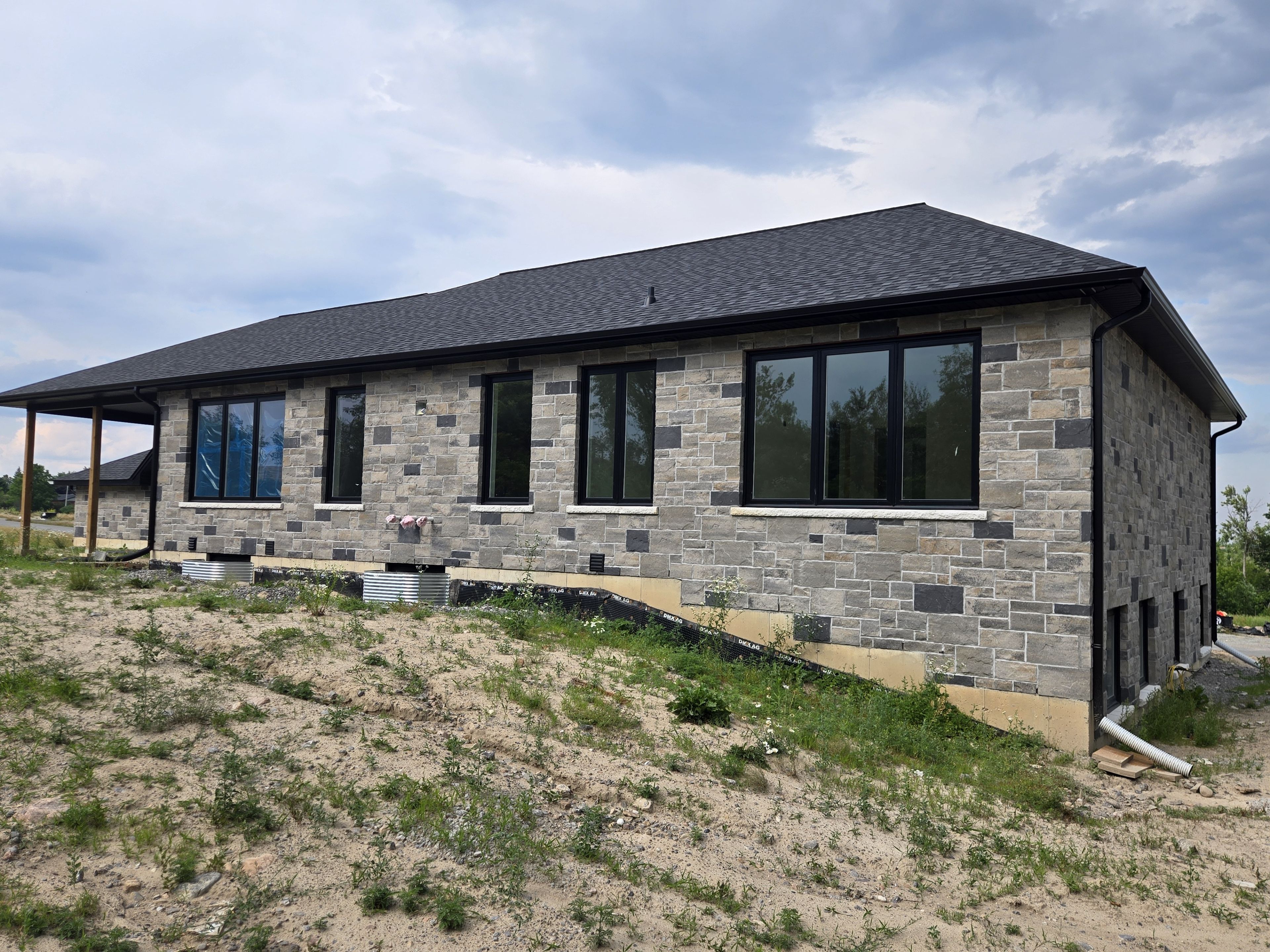 Currently under construction- custom built executive stone bungalow by davenport homes in the rolling hills of cavan. Beautifully designed all stone bungalow on a 3/4 acre lot on a rolling hill over looking the valley to the south-east. This elevated open concept offers modern living and entertaining with a large over sized kitchen/dining/living area, extra bright with large windows and patio door. Enjoy the 18'x14' covered patio off the kitchen all year long with it's privacy over looking the fields behind. Attention to detail and finishing shines through with such features as a coffered ceiling, tray ceiling, stone fireplace, and solid surface counter tops are some of the many quality finishings throughout the entire home. This spacious home will easily suit a growing family or retirees. The over sized three car garage will accommodate three vehicles and much storage. This home is currently under construction, purchase now and design your own gourmet kitchen. One of only 19 homes to be built in this community, offering an exclusive area close to the west end of peterborough and easy access to hwy 115. Choose from the remaining 18 lots and have your custom home designed. Builder welcomes buyers floor plans.