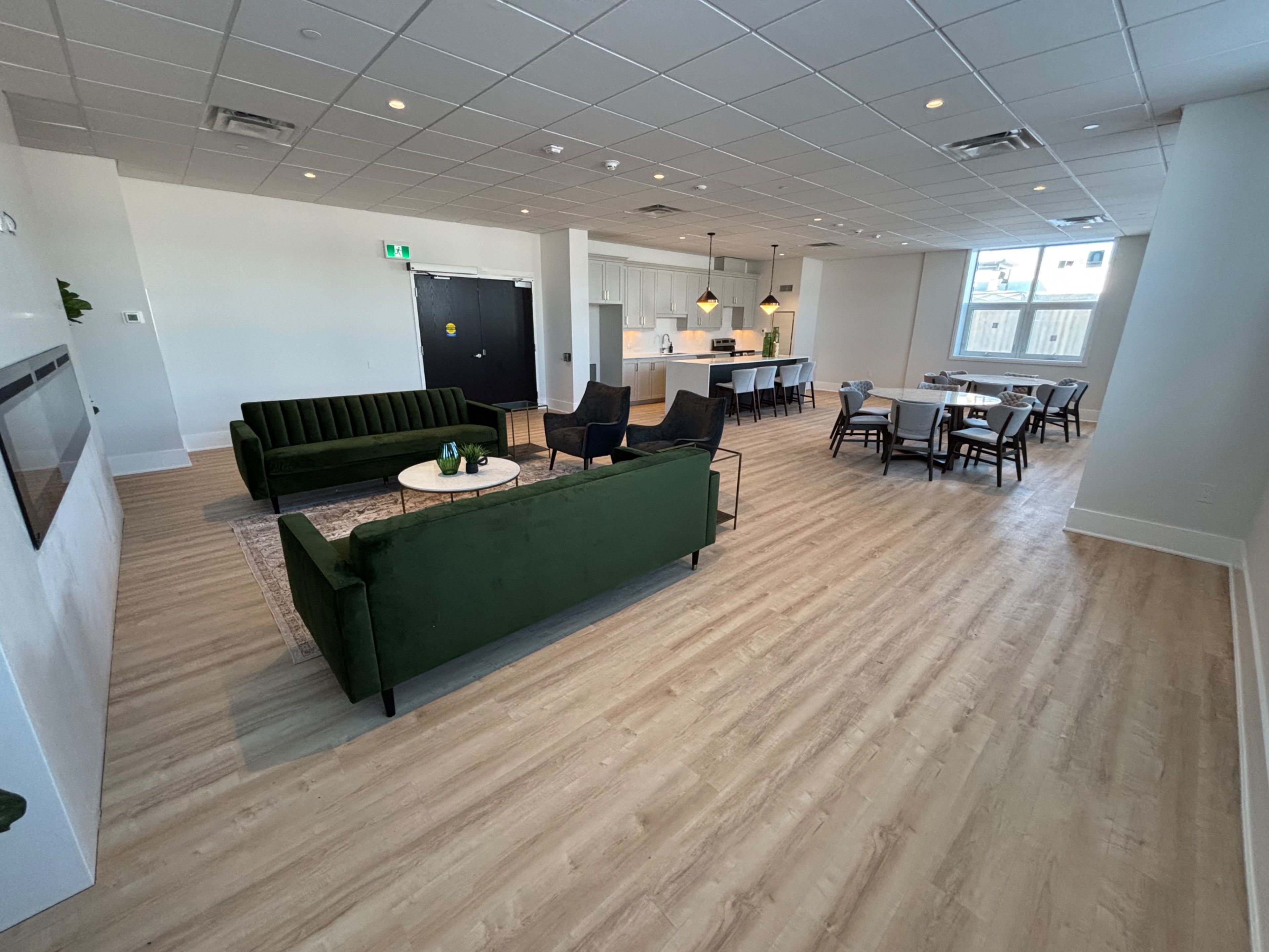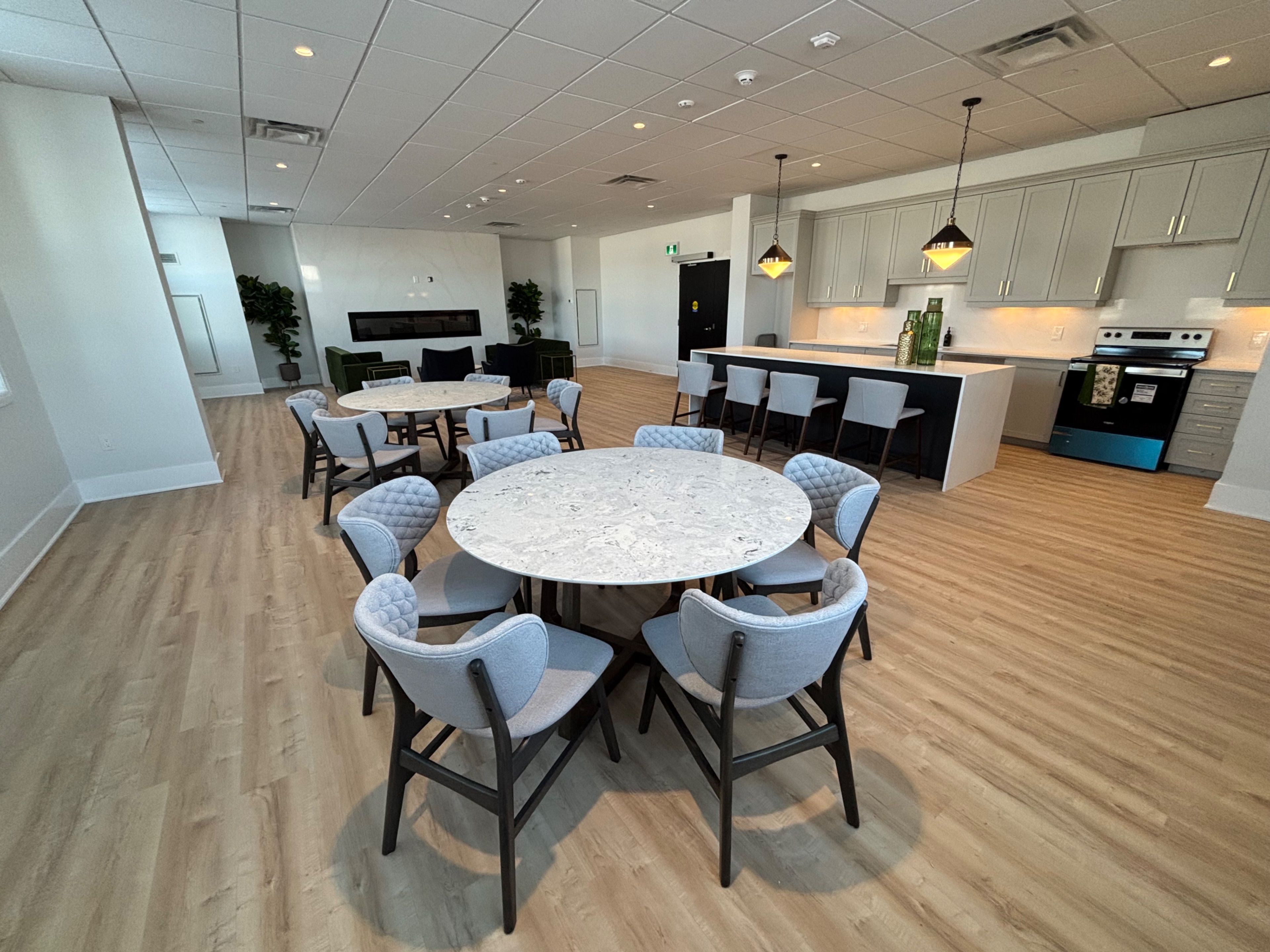 • Premium amenities include fitness center, party room, and rooftop terrace.