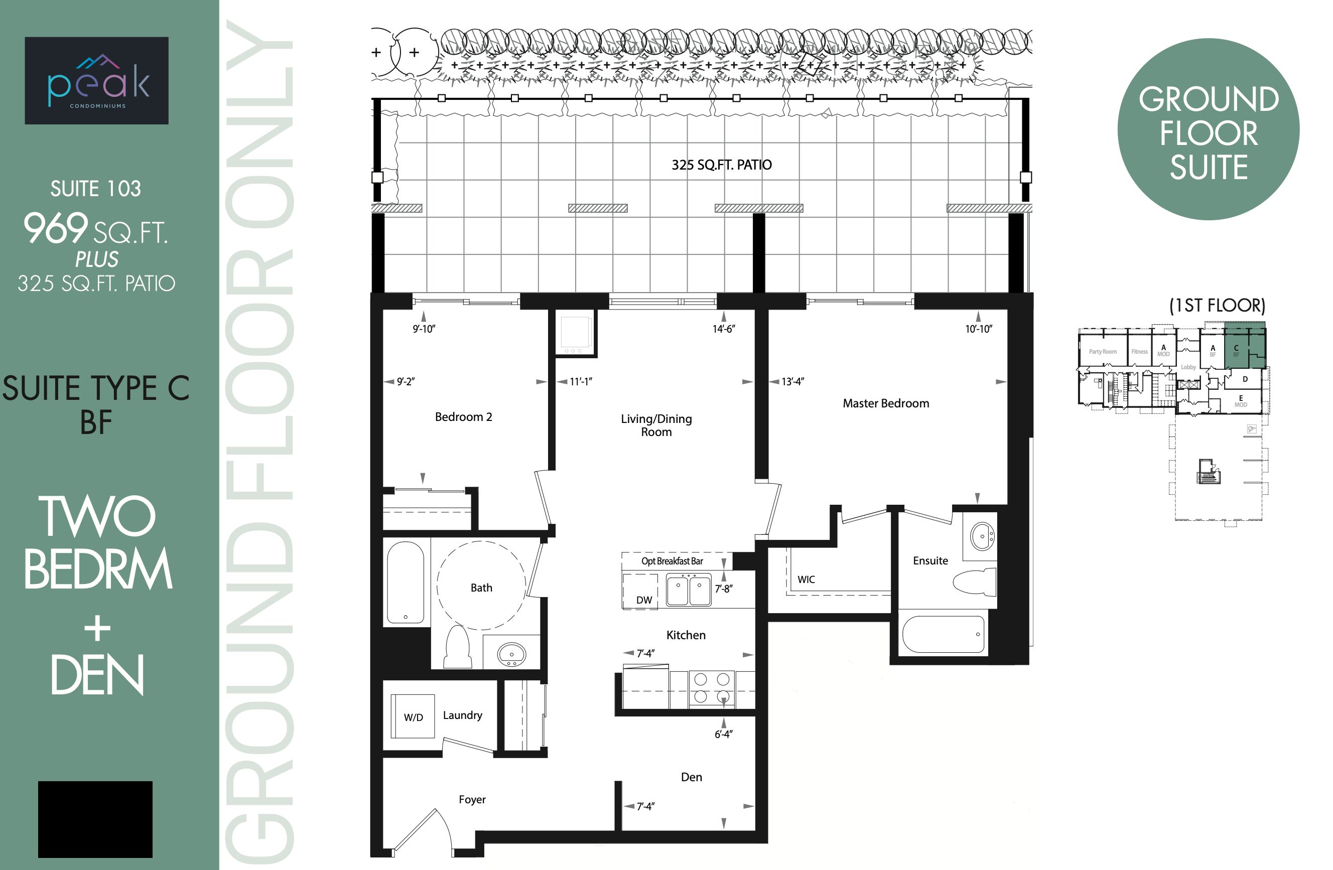 • Spacious 2-bedroom + den suite with open concept living and 10-ft ceilings.