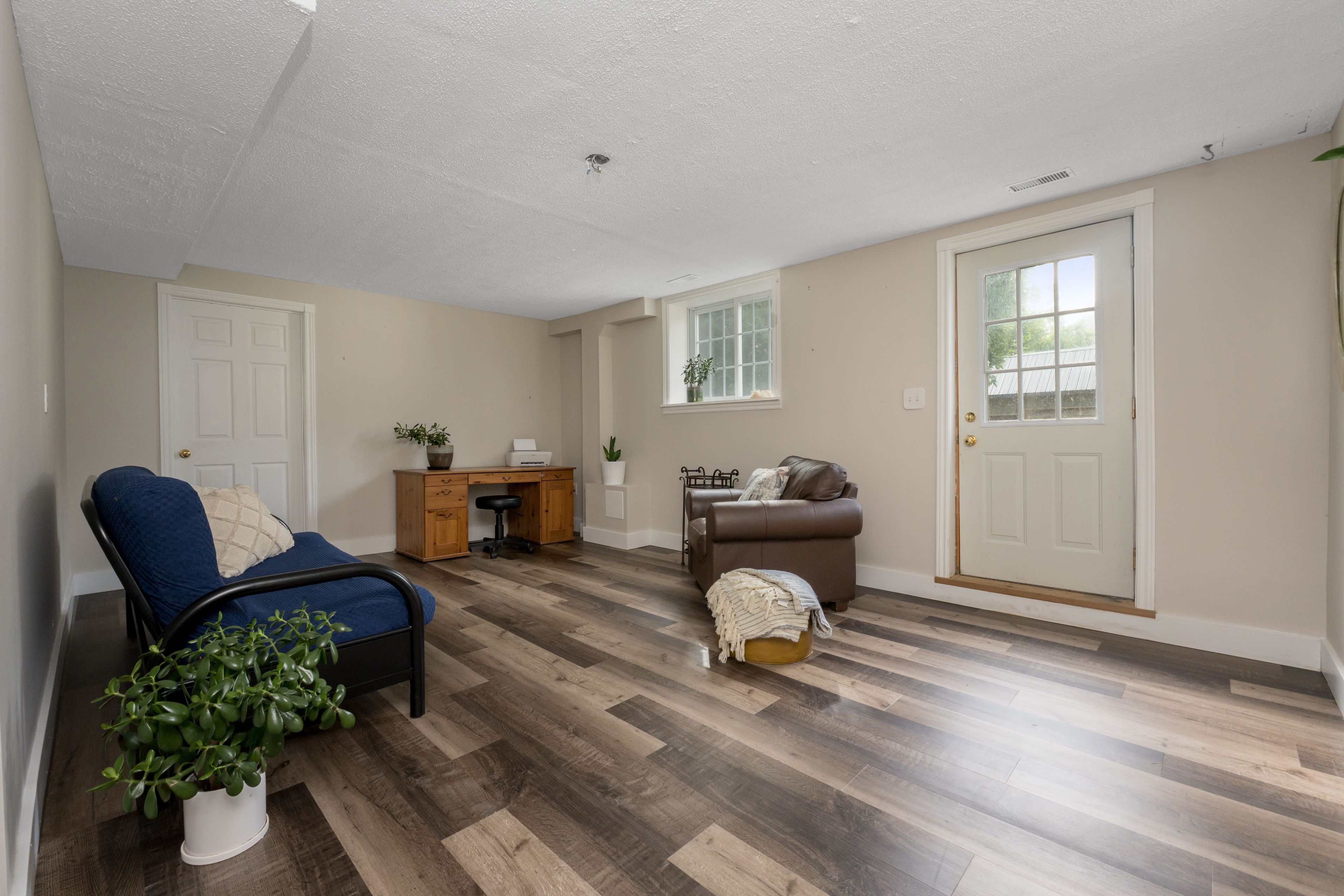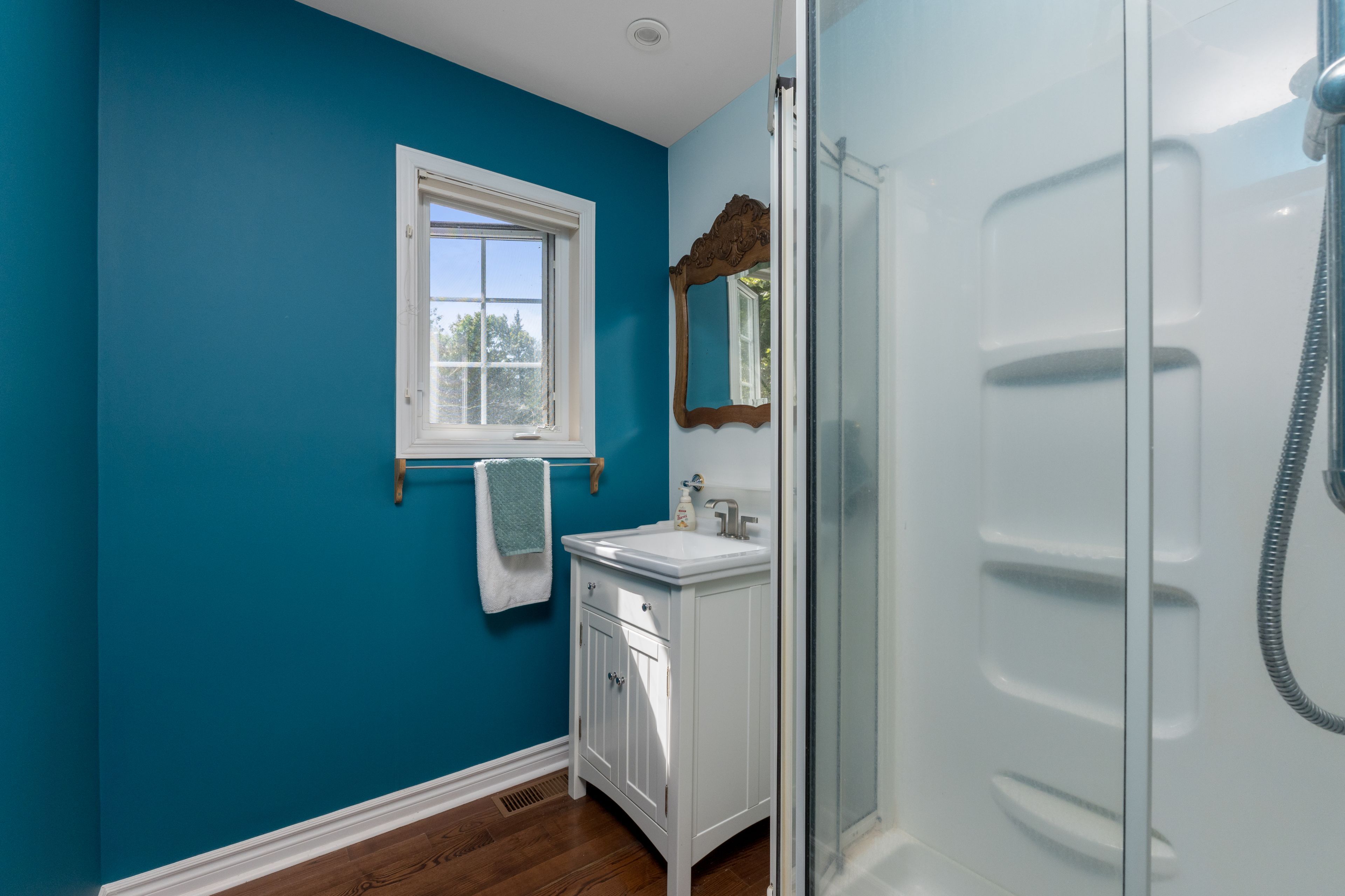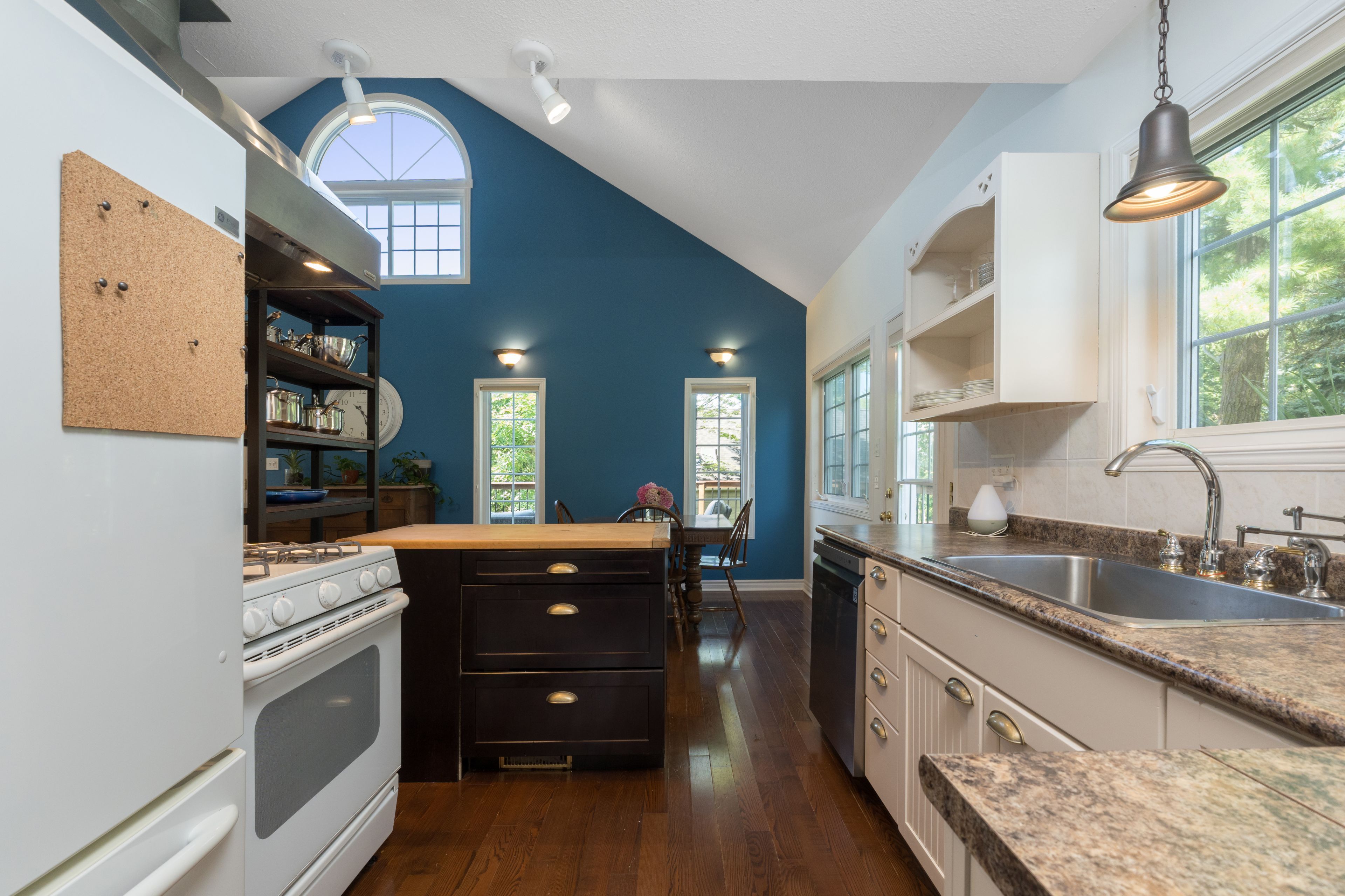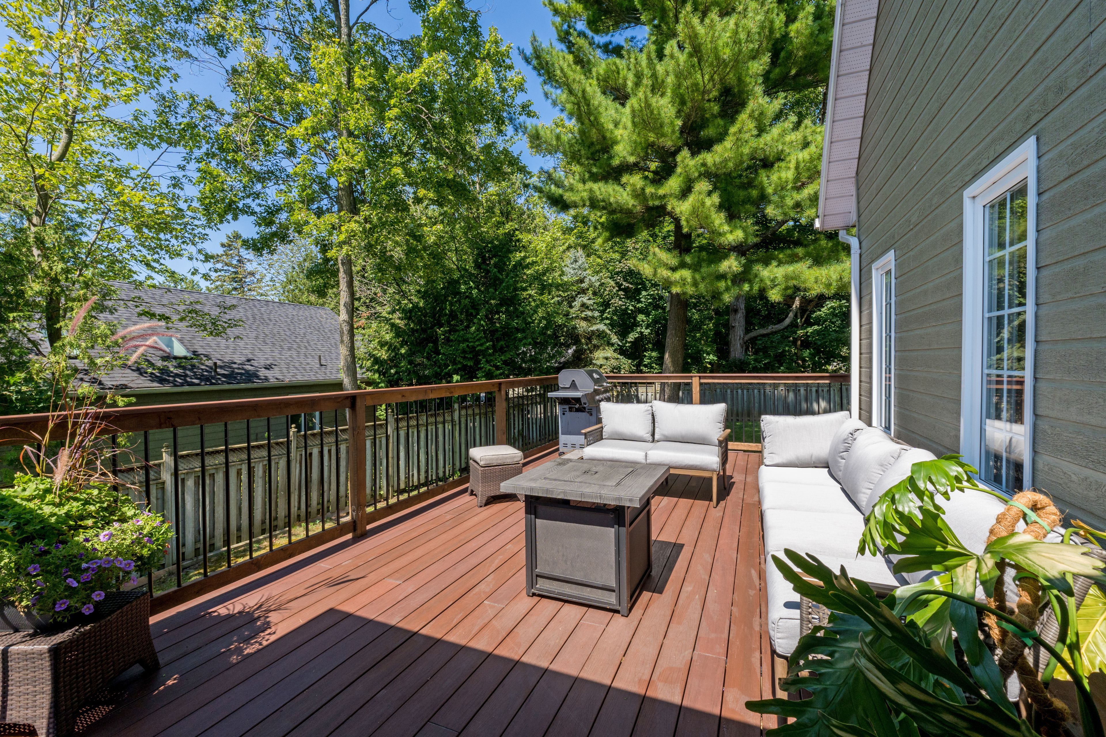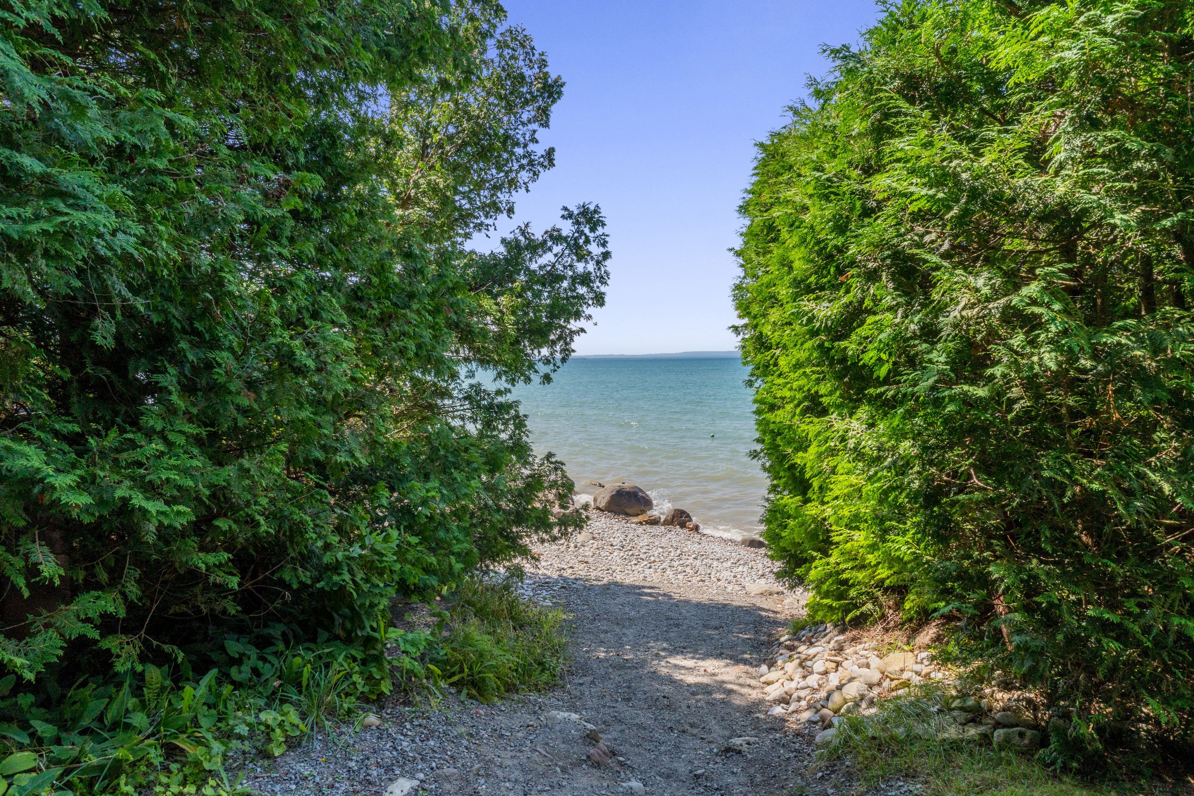 Discover the perfect blend of modern comfort and laid-back coastal living in this thoughtfully designed 3-bedroom home, showcasing tranquil lake views and standout curb appeal. Whether you're seeking a year-round residence or a weekend escape, this home is crafted for effortless living, entertaining, and fully embracing the beachside lifestyle. The open-concept main floor impresses with soaring cathedral ceilings, rich hardwood floors, and expansive windows that flood the space with natural light. A welcoming front sitting area creates an inviting first impression, while the beautifully appointed kitchen-anchored by a custom live-edge dining table-flows seamlessly into a private side yard, ideal for summer lounging or alfresco dining. French doors lead to a generous composite deck featuring a hard-top gazebo and built-in gas fireplace, offering a stylish setting for year-round gatherings. Upstairs, a bright loft-style primary retreat delivers spa-inspired comfort with its private ensuite and sweeping lake views. The lower level, complete with its own entrance and walk-out patio, provides versatile living space including an oversized recreation room, a third bedroom or home office, and a spacious laundry and storage area. Just steps from the sandy shores of woodland beach and edmore beach, this exceptional property also offers ample private parking, a generac whole-home generator, high-speed internet, and convenient garbage pickup-everything you need for easy, carefree coastal living.