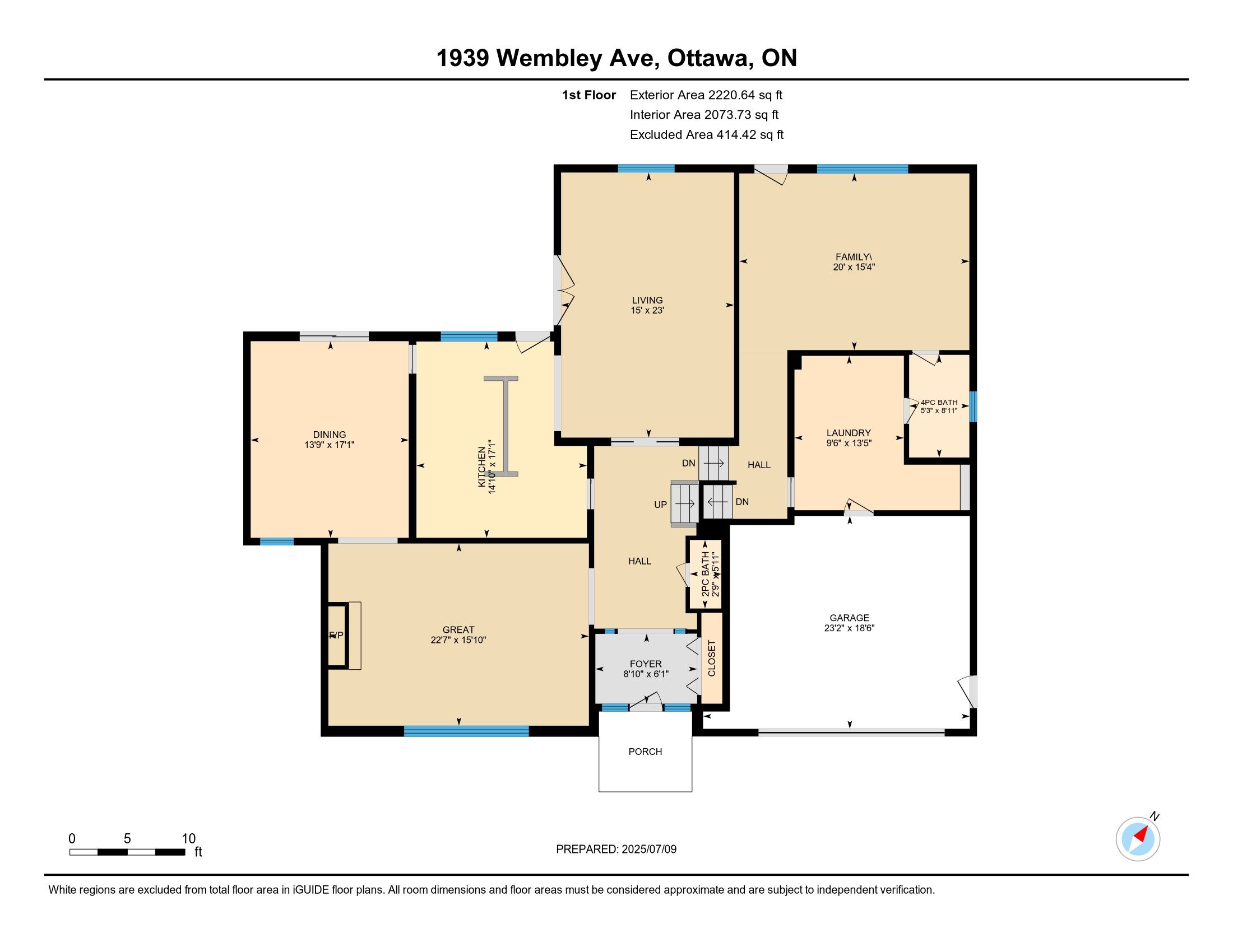 Welcome to 1939 wembley ave., a truly exceptional family home in the heart of mckellar park. Situated in a quiet cul-de-sac, this expansive 5-bedroom, 4-bathroom side-split offers over 3,500 square feet of luxury living space above grade, with room to grow, gather, and entertain. Set on a large, fenced, family-friendly lot, this home is designed for comfort and style. The layout is both generous and functional, featuring two spacious family rooms on the ground level, ideal for casual living, kids' zones, or hosting guests. At the heart of the home is a brand new chef's kitchen, perfectly positioned between an elegant formal living room, a bright, welcoming dining room, and a spacious family room, a natural hub for entertaining and daily family life. Upstairs, you'll find four generously sized bedrooms, including a large primary suite and a beautiful, new 5-piece family bathroom. The fifth bedroom is located in the partially finished basement, offering excellent flexibility for a guest room, office, or teen retreat. Additional features include a main floor laundry, a two-car attached garage with inside access, and a layout that flows seamlessly across all levels. Set on a quiet street, yet close to top schools, parks, and the best of west-end ottawa, this is a rare opportunity to own a one-of-a-kind home in a truly sought-after neighbourhood. Come see what makes this property so special-you won't want to leave.