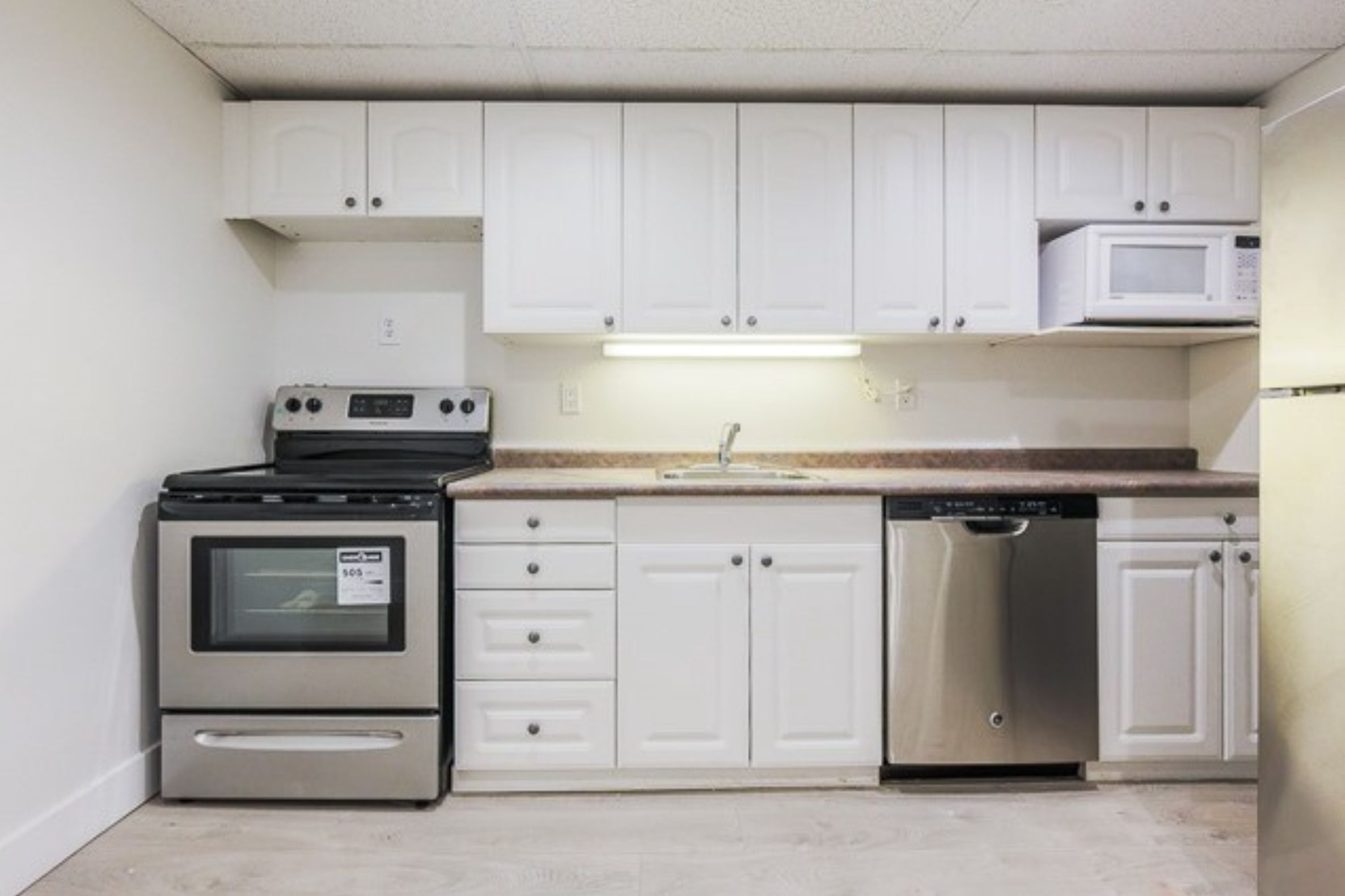 • Large kitchen featuring stainless steel appliances and ample storage.
