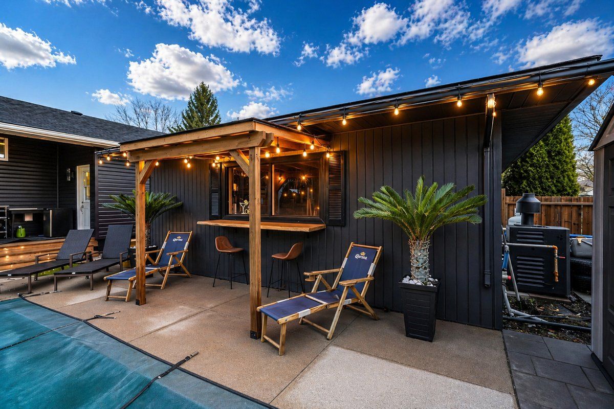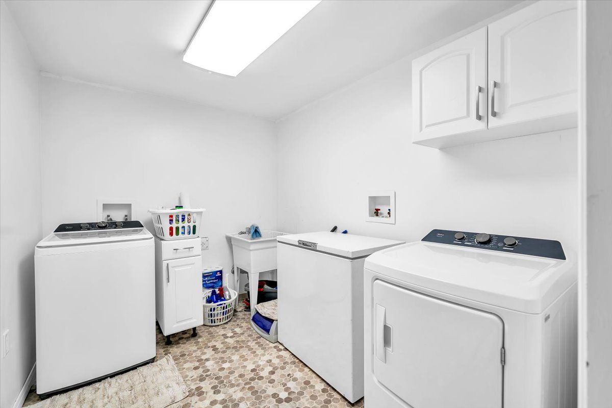 • Finished basement with custom bar, great for entertaining.