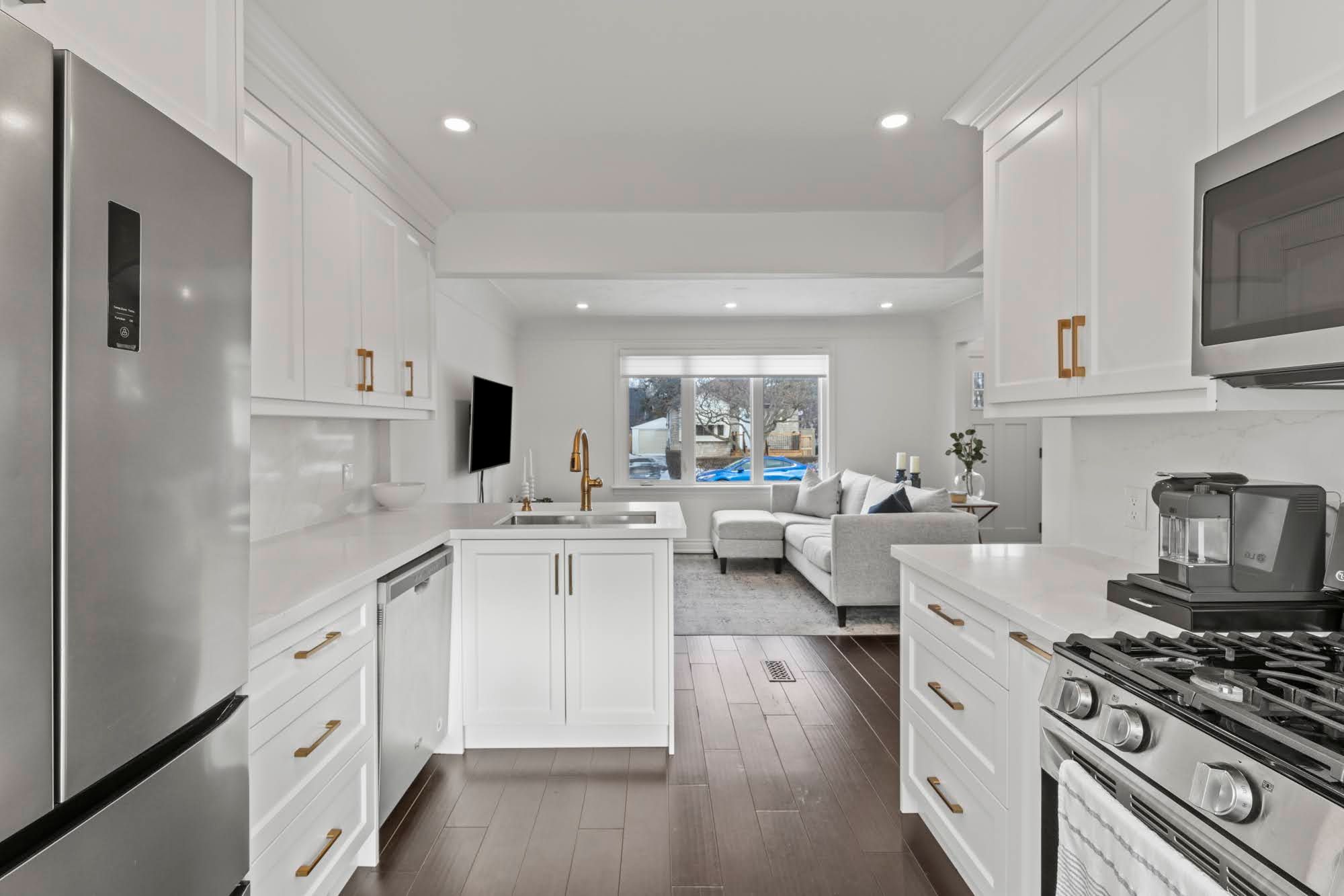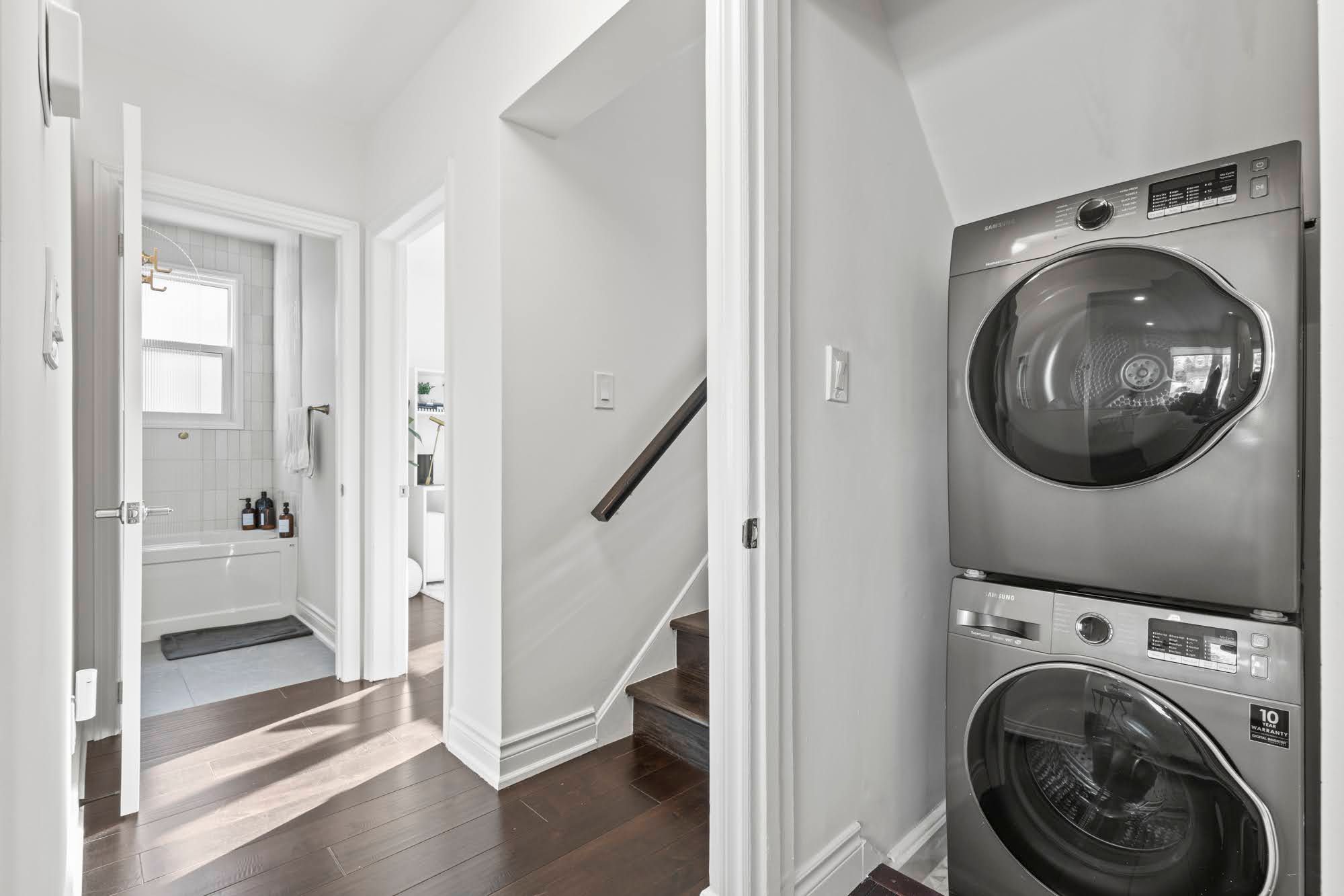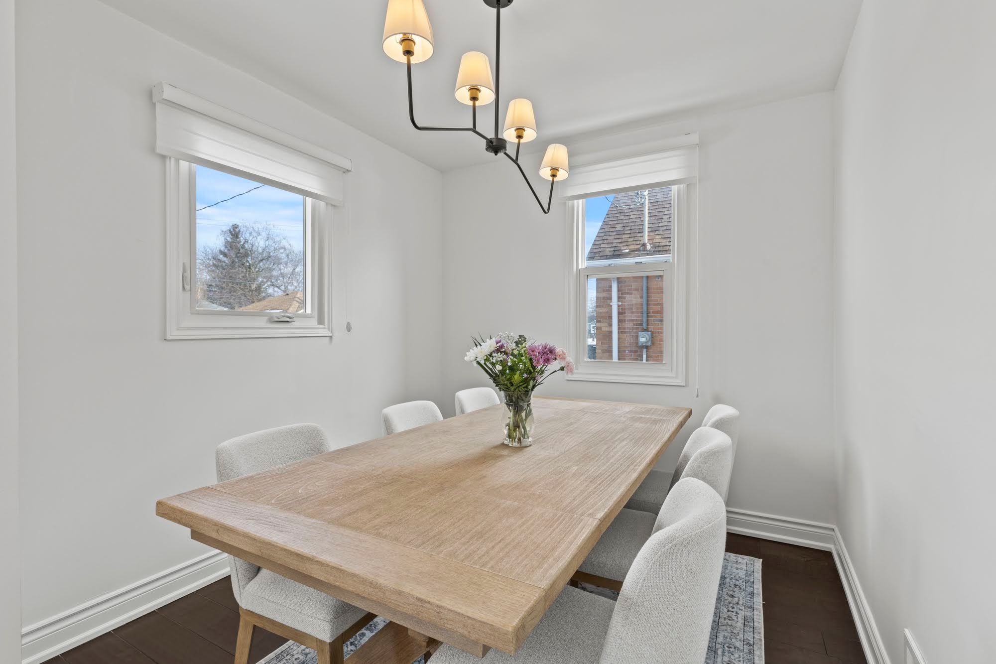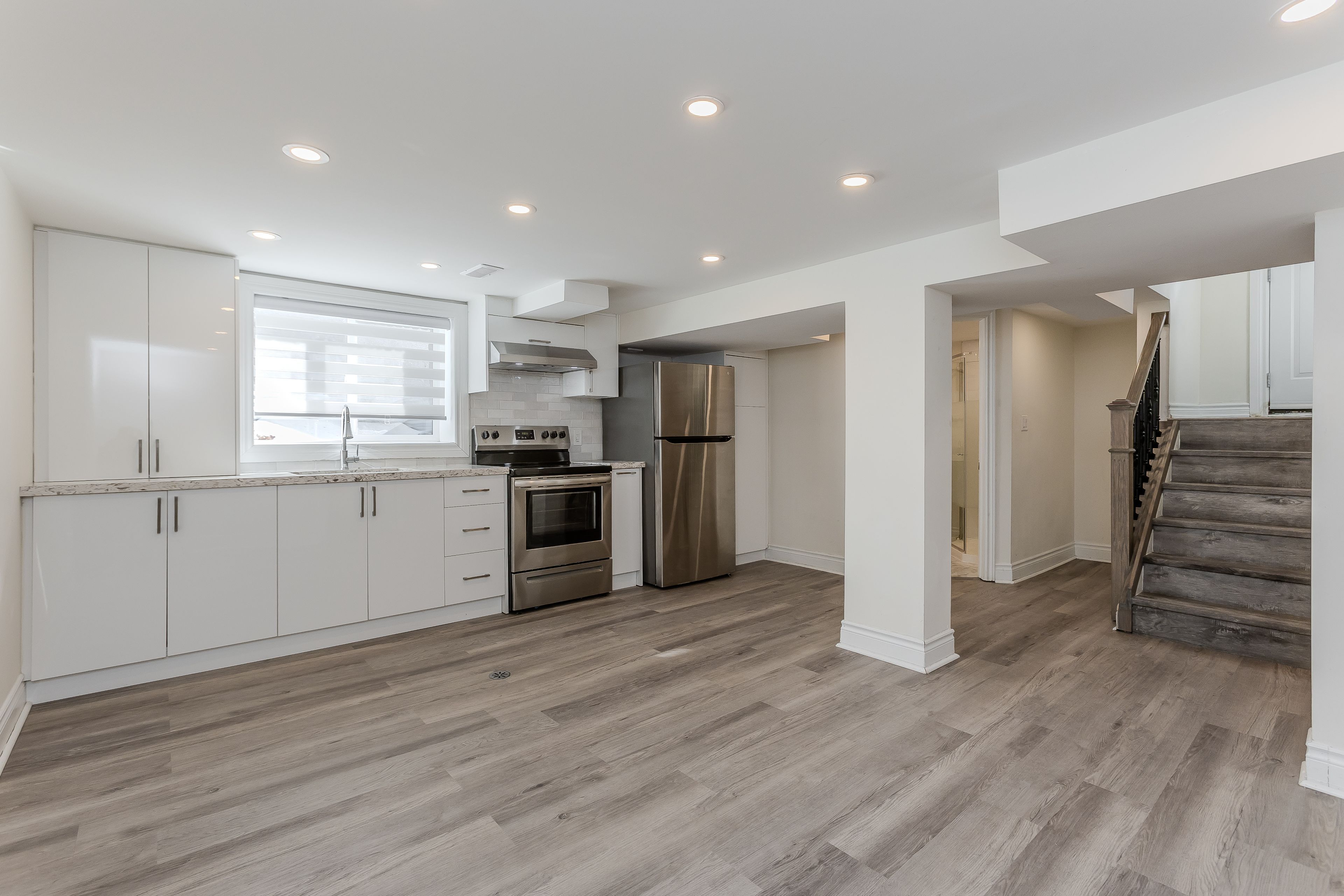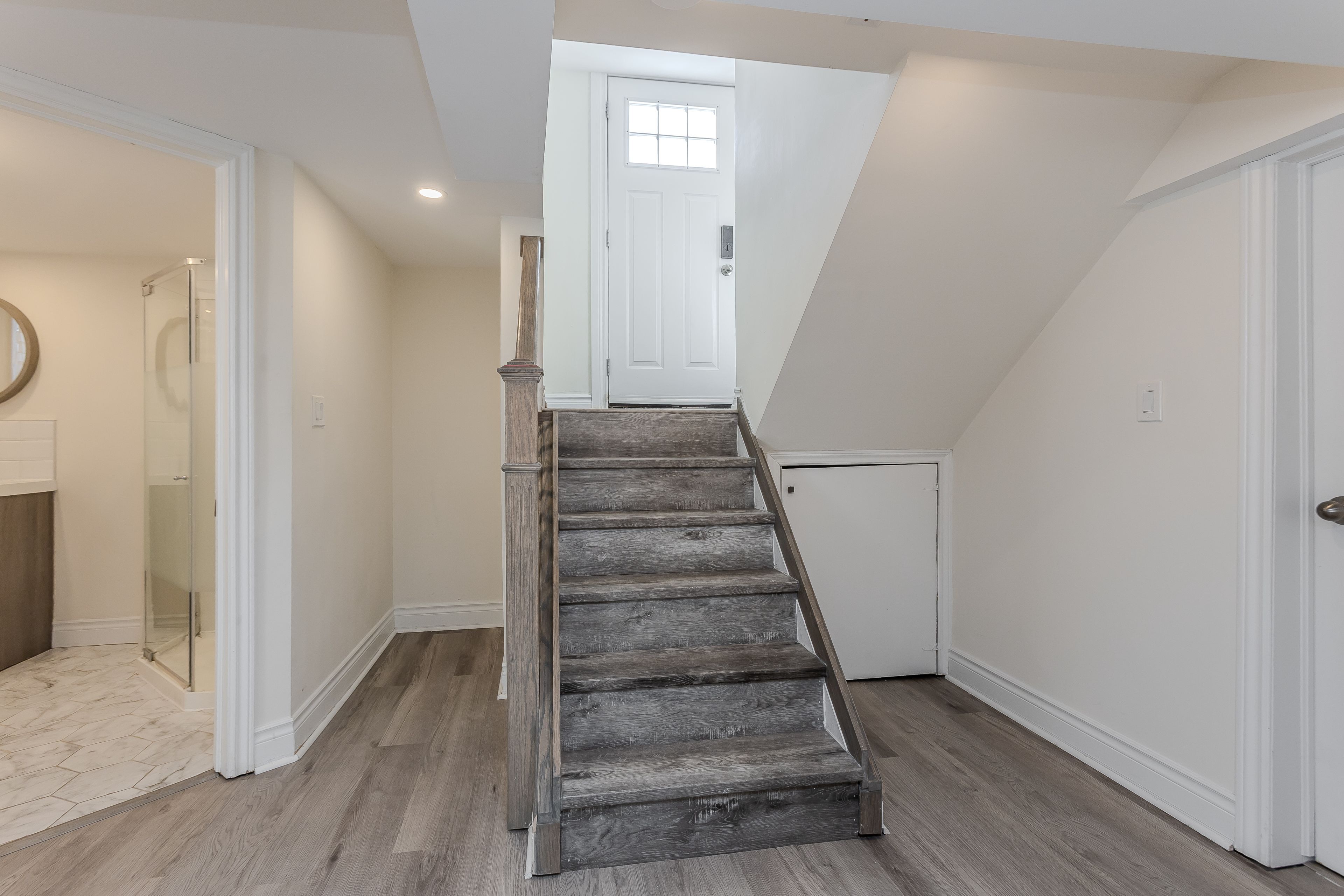 Beautifully renovated and turnkey self contained 2 residential unit home with ground level separate entrance to both units. Legal permitted basement offers exceptional flexibility for investors and growing families alike. Whether you're looking to generate rental income, or multi-generational living, this property delivers. Ideally located within steps to the hospital, escarpment and rail trails, and close to everyday amenities with easy hwy access, it offers 1742sf of living space with thoughtful upgrades throughout. The exterior has been finished with new sod and landscaping, exterior potlights, and a newer front door. Inside, soft-white paint, silhouette blinds, and upgraded lighting add a bright, modern feel throughout the home. The main and second floors feature hardwood throughout with an open-concept layout. Enjoy a spacious living room w/ large window, formal dining area, and a beautifully updated chef's kitchen complete with quartz countertops & backsplash, custom cabinetry, premium ss appliances, updated faucet, and walkout to the back deck. The renovated bathroom showcases a custom vanity, fluted glass shower, new hardware, and stylish tilework. Two generous bedrooms offer custom built-in closets, and a third bedroom is currently being used as an office. The legalized lower unit, (2022), is modern, and thoughtfully designed. It features a separate entrance, luxury vinyl plank flooring, open living space, and a well-appointed kitchen with granite countertops, stainless steel appliances, tile backsplash, and large egress windows that fills the space with natural light. A spacious bedroom and a sleek 3-piece bathroom with hex tile flooring and glass walk-in shower complete the suite. The fully fenced backyard is expansive and private, featuring a wood deck, gazebo, shed, and plenty of green space for kids, pets, or outdoor entertaining. A fantastic opportunity offering strong income potential, modern upgrades, and flexible living in a convenient location.