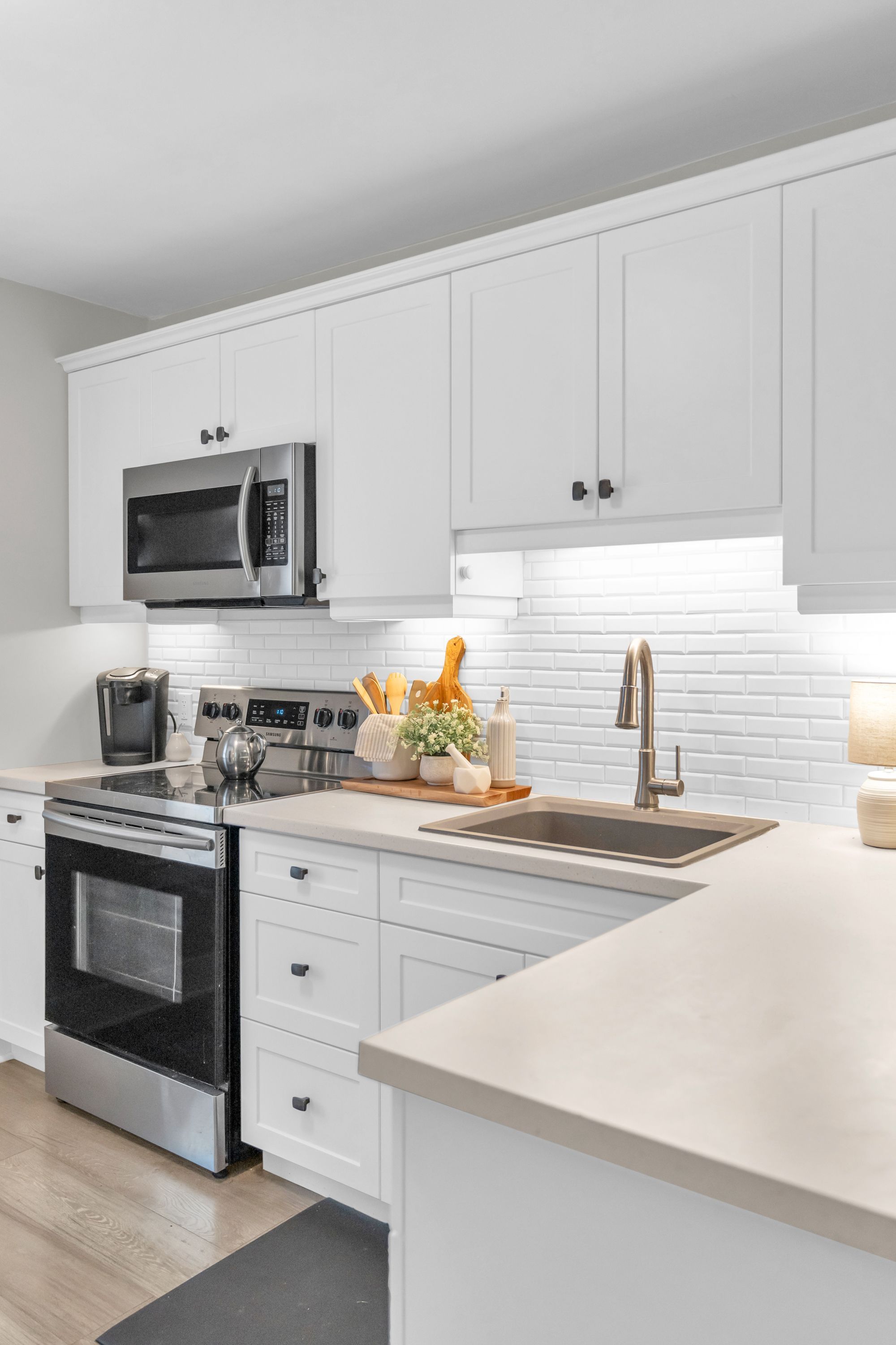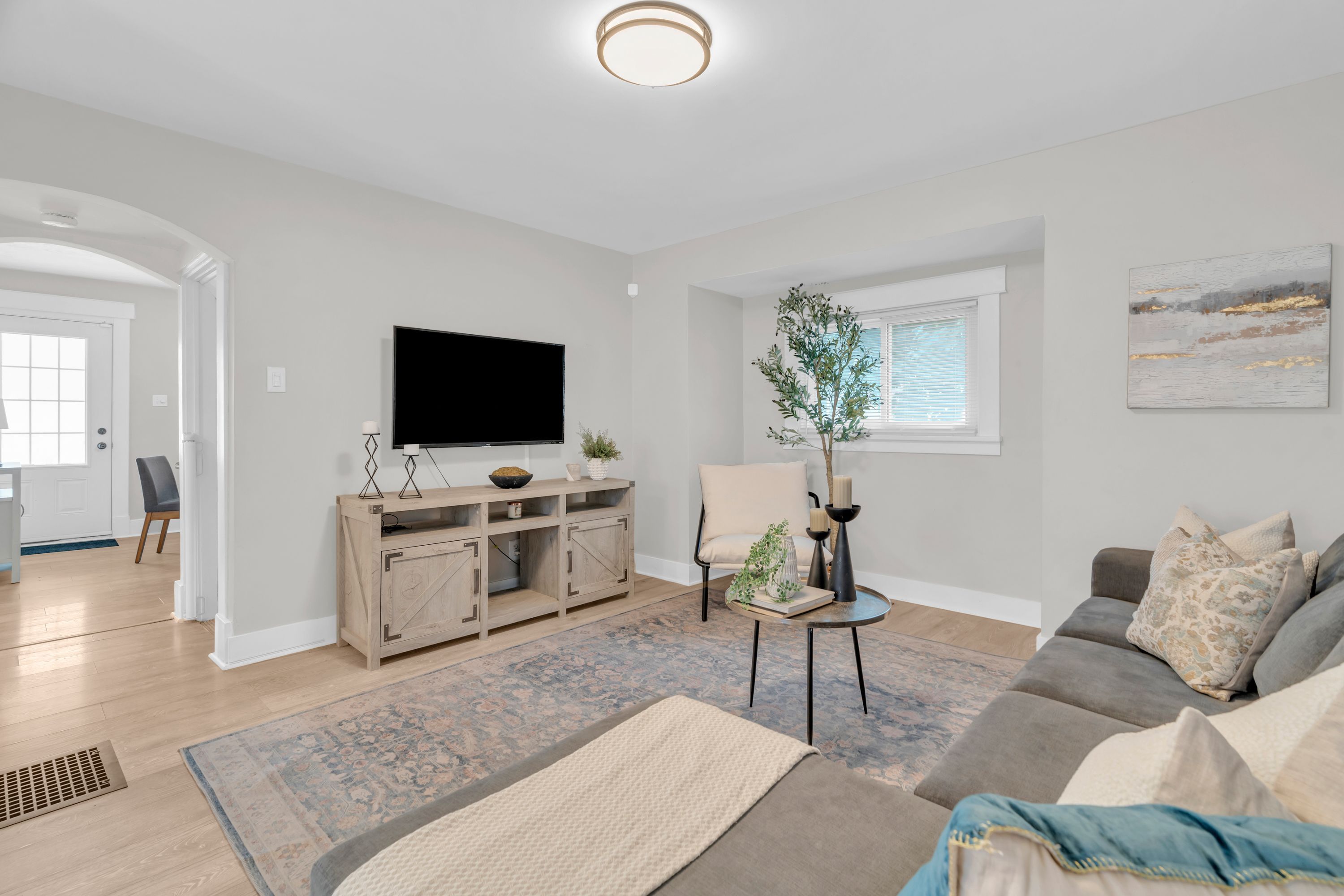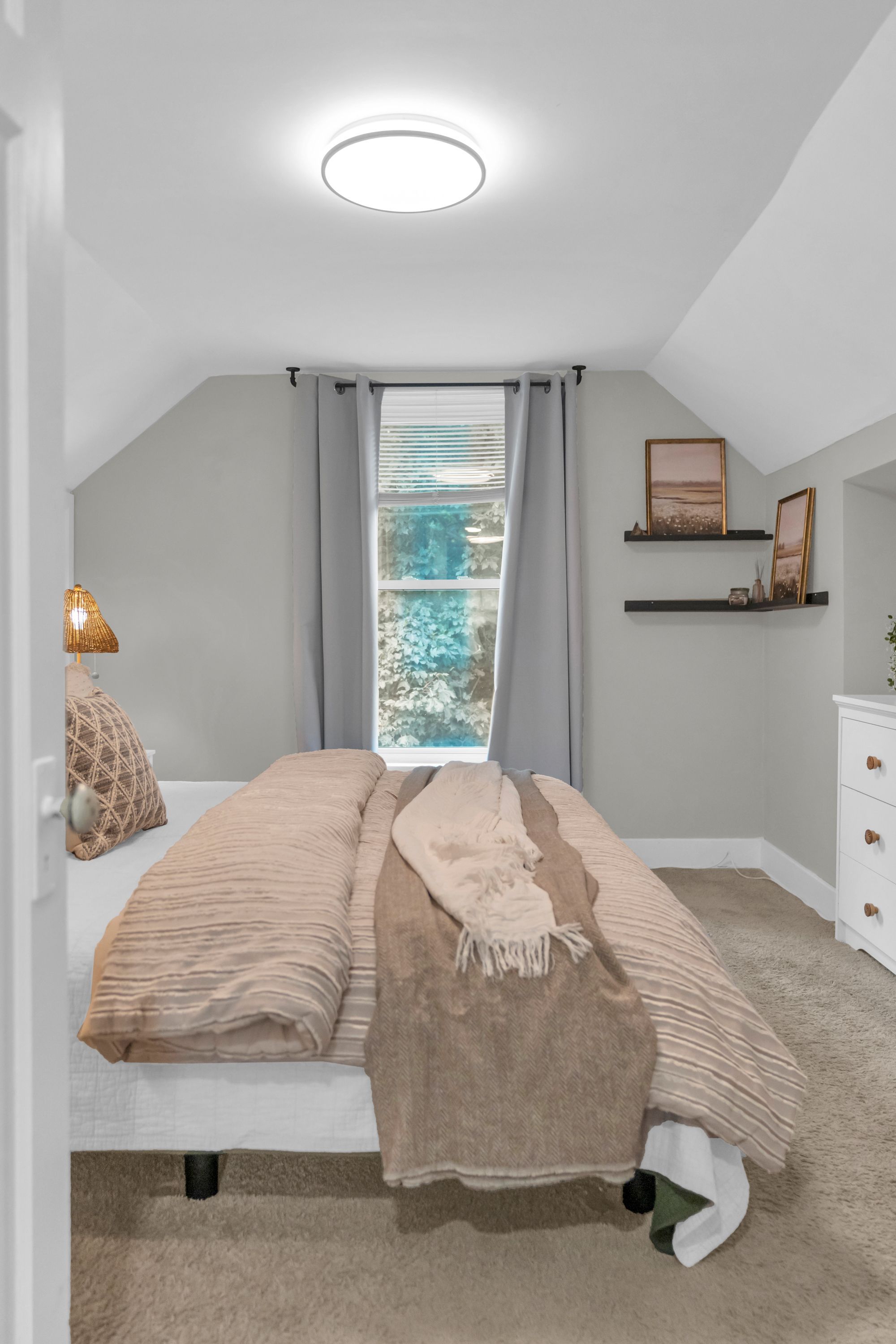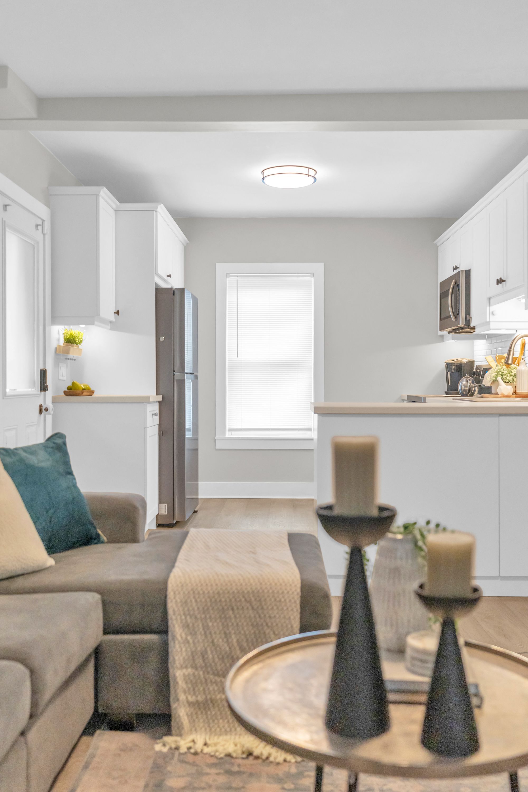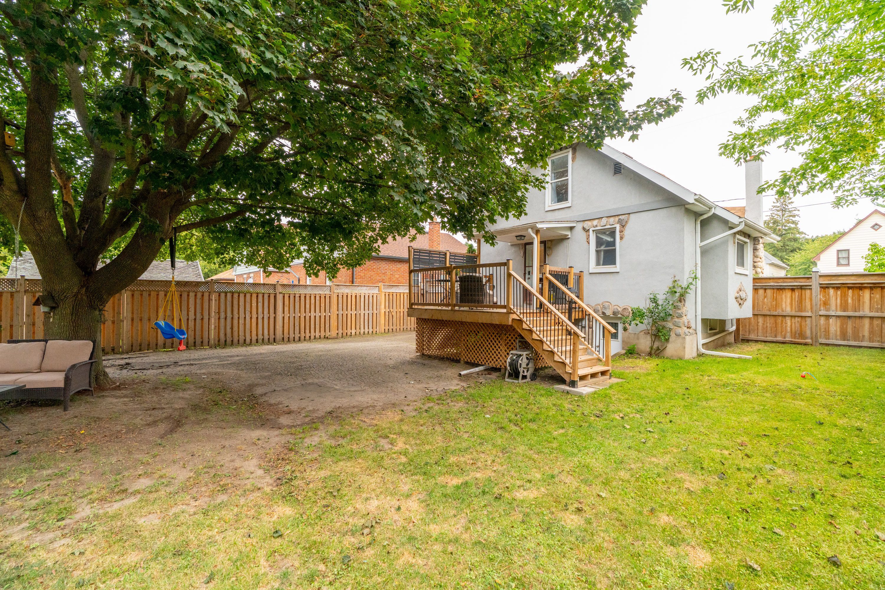 This beautifully updated cottage-style home in desirable east galt seamlessly blends timeless character with contemporary finishes. The inviting exterior showcases modern stucco paired with expertly crafted stonework, setting the tone for what awaits inside. Step onto the spacious covered front porch and enter a home where every detail has been thoughtfully updated. The stunning fireplace in the front room echoes the home's exterior, featuring a unique stucco and stone façade with a vintage electric log insert-adding both warmth and charm. This versatile space can serve as a formal dining area or a cozy sitting room. Elegant arched doorways and new laminate flooring lead to an open-concept living room and an updated kitchen complete with white cabinetry, stainless appliances, ample storage, under-cabinet lighting, a built-in fridge, beveled subway tile backsplash, and a silgranit sink. Just off the kitchen, a new rear deck provides ideal space for outdoor dining and entertaining. The main floor also includes a spacious bedroom with a large window and a stunning modern farmhouse bathroom featuring a wood-accented ceiling, subway tile tub surround with dark grout, and a sleek vanity with an integrated sink. Upstairs, you'll find two additional well-appointed bedrooms with stylish accent walls and ample storage. The basement-with a separate entrance-offers potential for an in-law suite, income property, or extended living space. Situated on a generous 132-foot deep lot, the property offers parking for 8+ vehicles, plus an oversized two-car garage/workshop with electrical-perfect for hobbyists or trades. The new fully fenced backyard includes a custom rolling gate, a new deck with privacy screens, and plenty of room for entertaining or play. Additional upgrades include newer windows, furnace, electrical, and plumbing-making this home truly move-in ready. Ideally located near parks, trails, schools, and major amenities, this is east galt living at its finest.