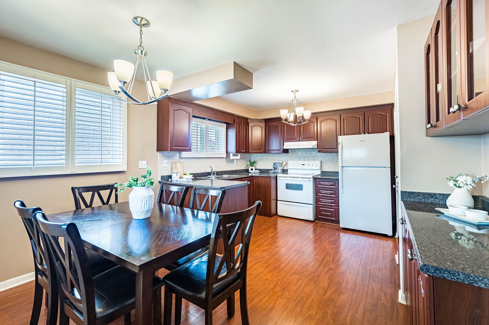 Beautifully maintained semi-detached raised bungalow offering exceptional versatility for families, investors, or multi-generational living. This bright and spacious home features 3 bedrooms, 2 bathrooms & two kitchens, making it ideal for in-law potential or income opportunities. Spacious living room with large window allowing for lots of natural sunlight! Separate dining room area! Fully finished basement offers additional living space with a separate side entrance, as well as convenient access from the garage, perfect for privacy and functionality. Located in a desirable neighborhood close to schools, parks, shopping, and transit, this home is a fantastic opportunity you won't want to miss!