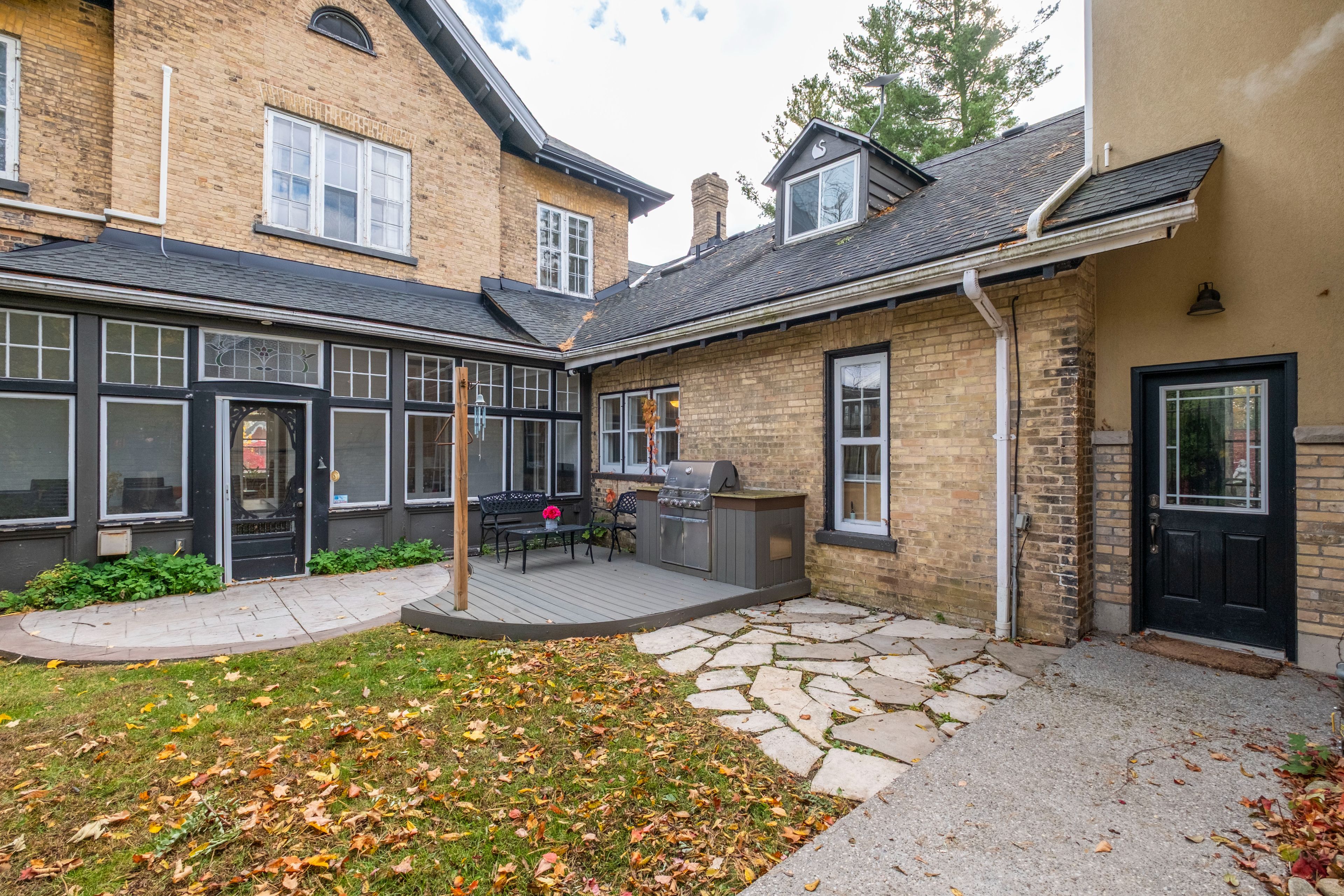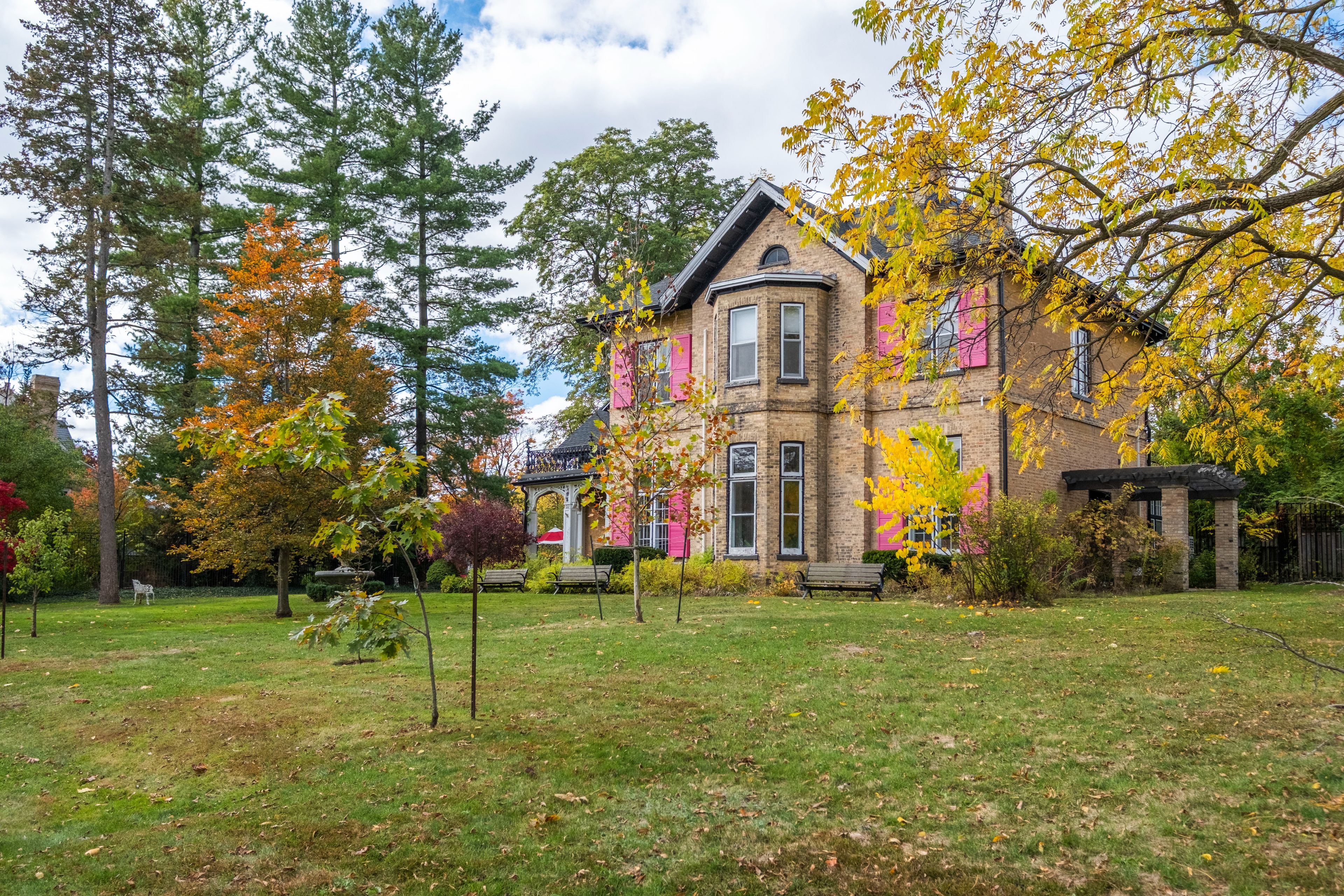 Perched gracefully above the grand river, the storied baird house (circa 1860s) stands among paris's most distinguished heritage residences. This italianate manor showcases the artistry of a bygone era-towering 12-foot ceilings, intricate plaster medallions, deep baseboards, and richly detailed woodwork-beautifully preserved and seamlessly paired with modern comfort. Sun-filled principal rooms open to manicured grounds shaded by century-old trees, offering privacy and tranquility just steps from the shops and cafés of downtown paris. Over 6,000 sqft above grade including a possible inlaw suite above the 4 bay garage. Heated floors and serviced by an elevator make this space flexible for a multitude of uses. Steeped in history yet tailored for contemporary living, 194 grand river street north embodies the elegance, authenticity, and character that define one of ontario's most celebrated small towns. One of the first homes in the world to have a telephone adds a special novelty that cannot be replicated. Designated as community corridor in the county of brant's most updated official plan allows for a variety of residential and commercial uses.